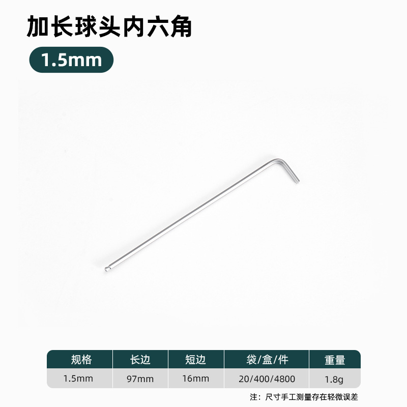 • 확장 볼 헤드 내부 육각형 1.5mm(포장하지 않은 상태에서 팩당 20개), 1g