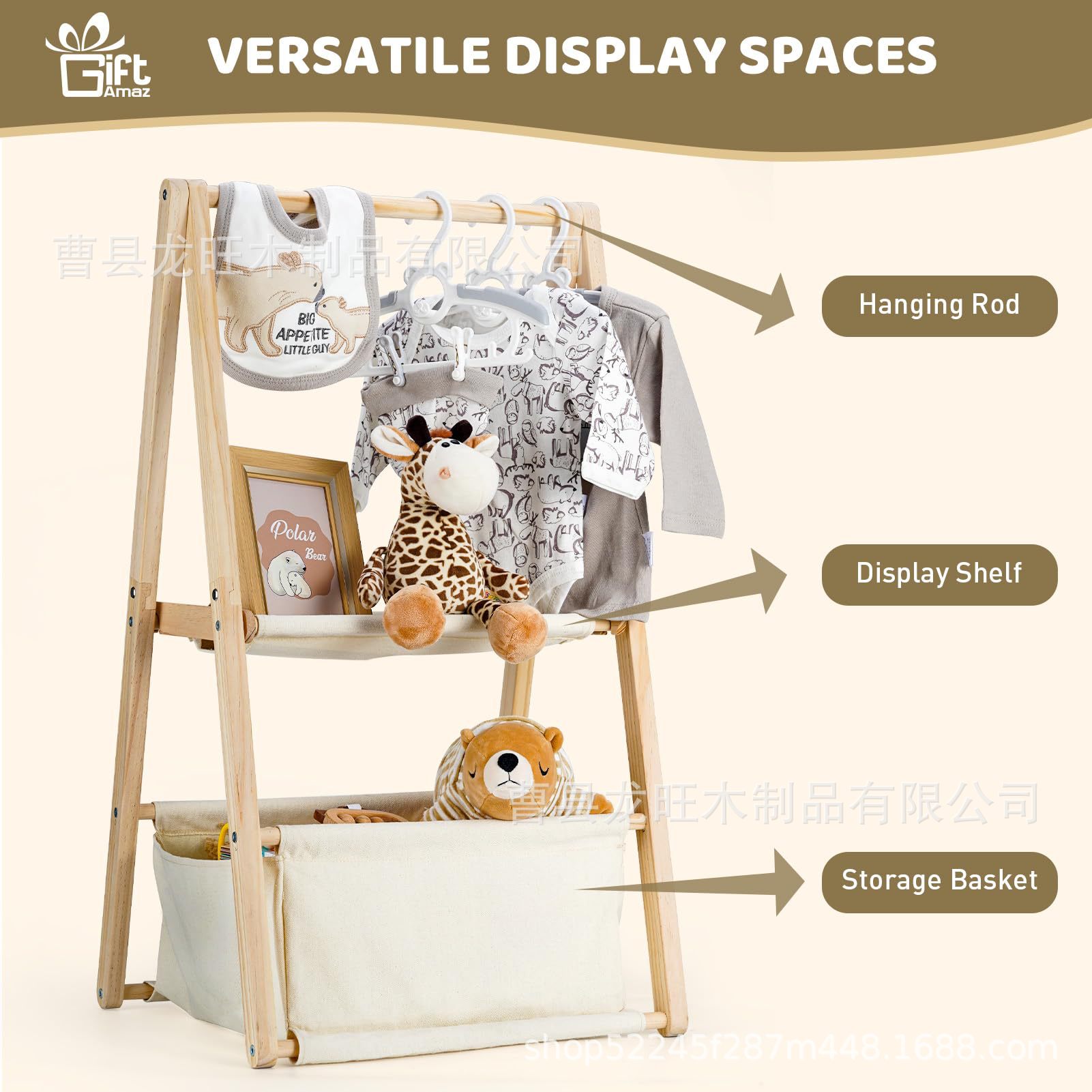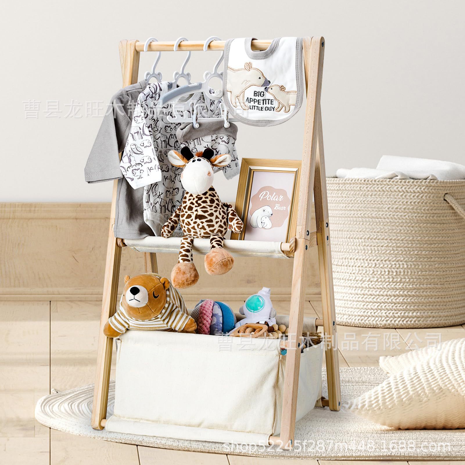 나무 수납 선반 다층 옷걸이 장난감 홀더 아기 옷 침실 거실 인형 바닥 옷과 모자 수납 선반