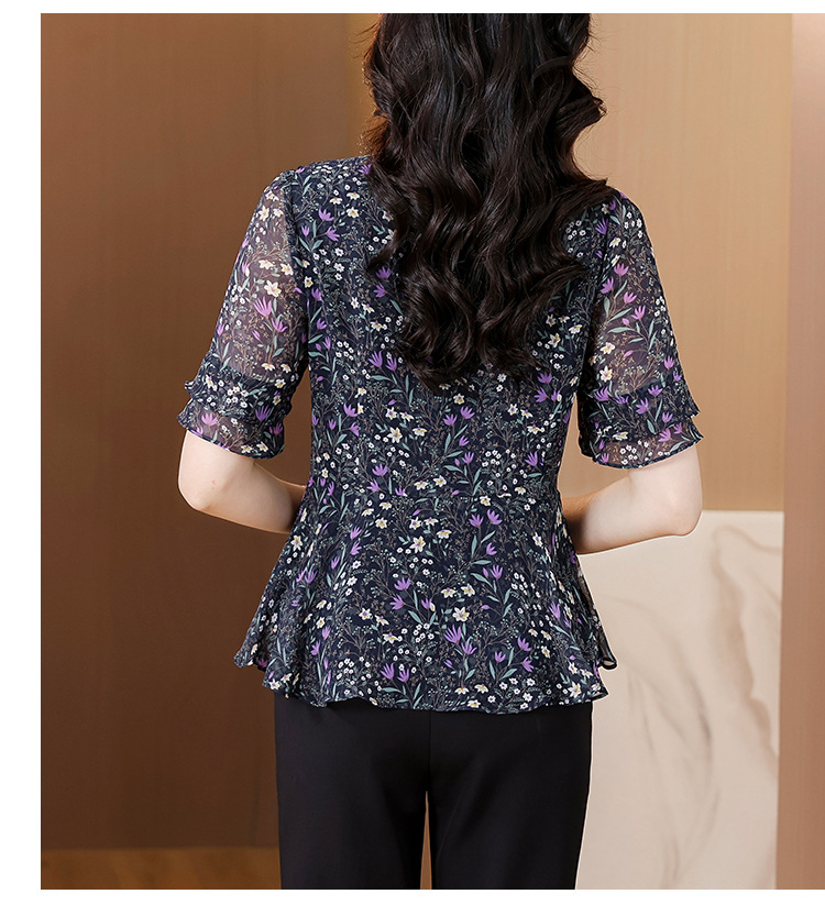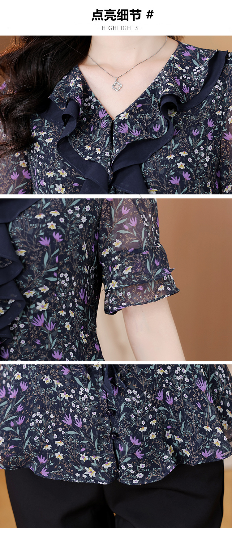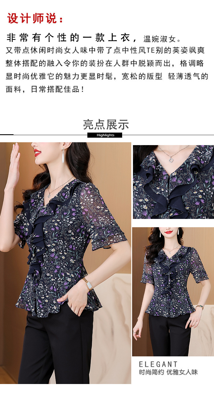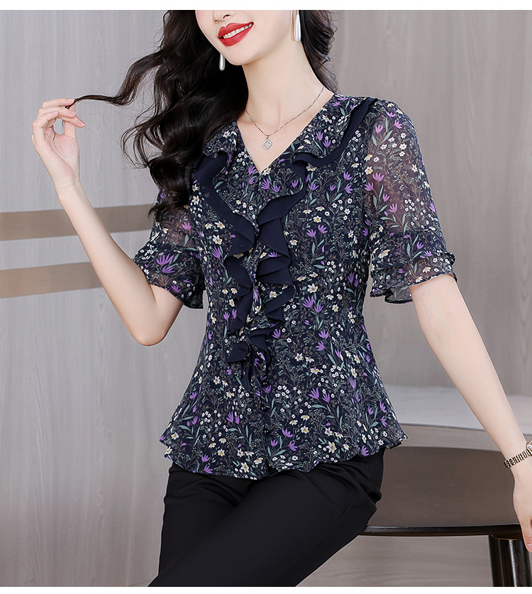 유럽 스테이션 2025 여름 프린트 쉬폰 셔츠 탑 여성용 러플 슬리밍 바디 커버 셔츠 시크 셔츠스토어 가기