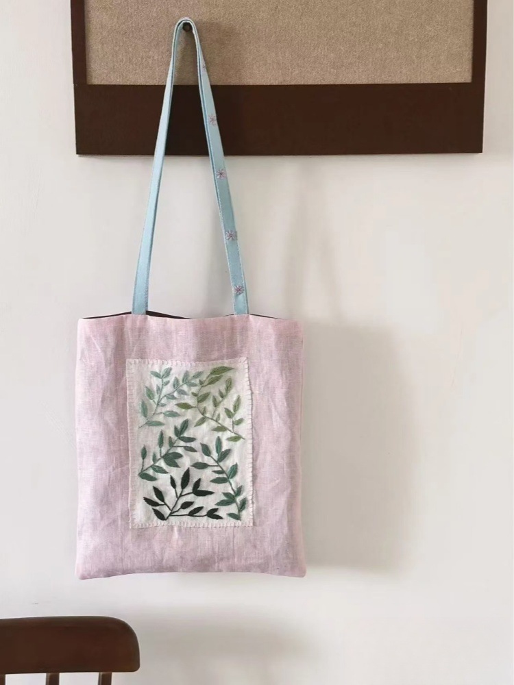 2025 새로운 틈새 디자인 꽃과 식물 자수 캔버스 숄더백 대용량 다용도 통근 겨드랑이 토트 백 여성용스토어 가기