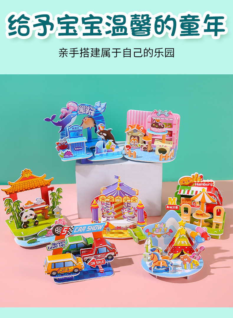 크리 에이 티브 어린이 3D 작은 집 퍼즐 모델 학생 DIY 종이 수제 퍼즐 3-6 세 장난감 선물스토어 가기