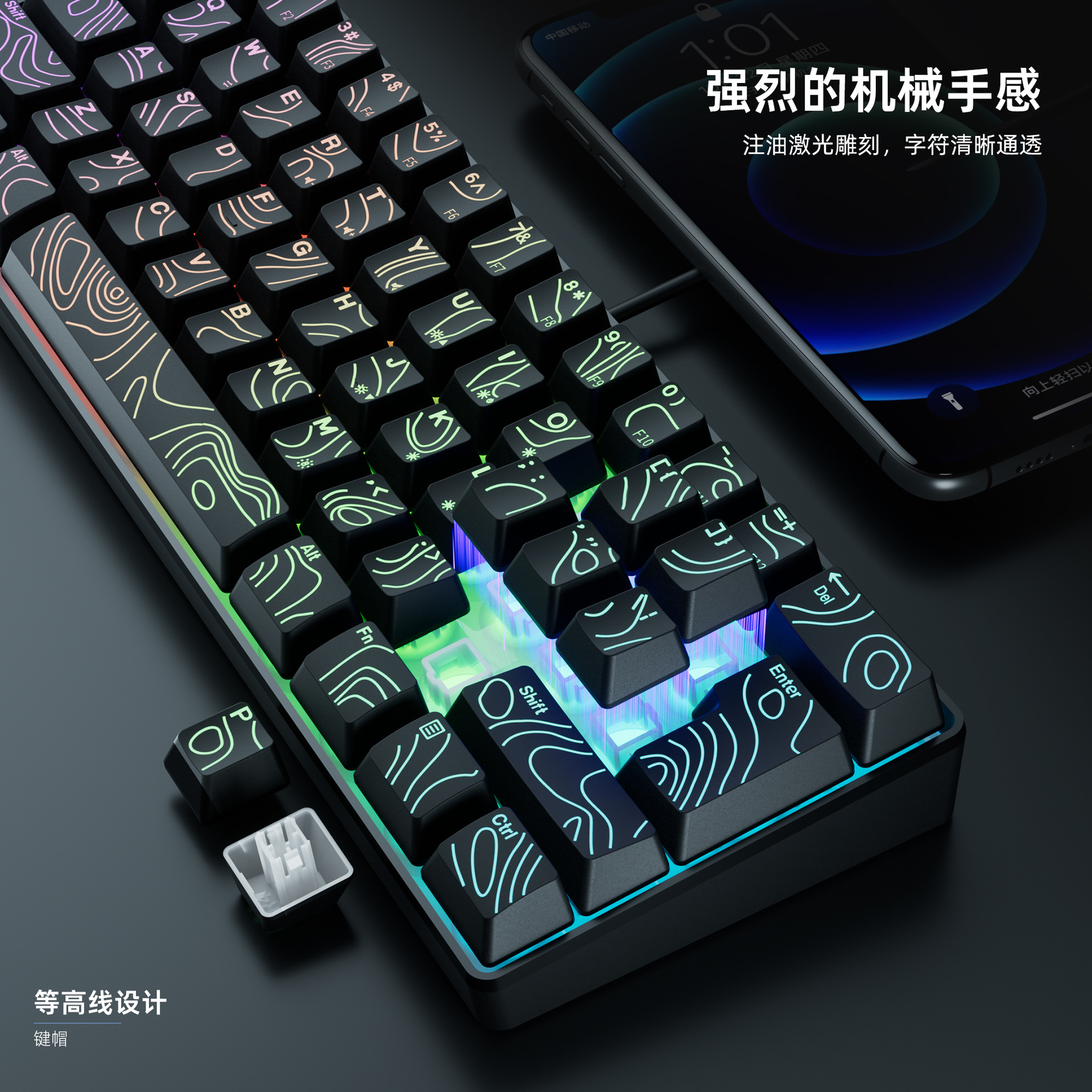 G61 등고선 키캡 반투명 키보드 RGB 발광 소형 멤브레인 키보드 데스크탑 컴퓨터 키보드 공장스토어 가기