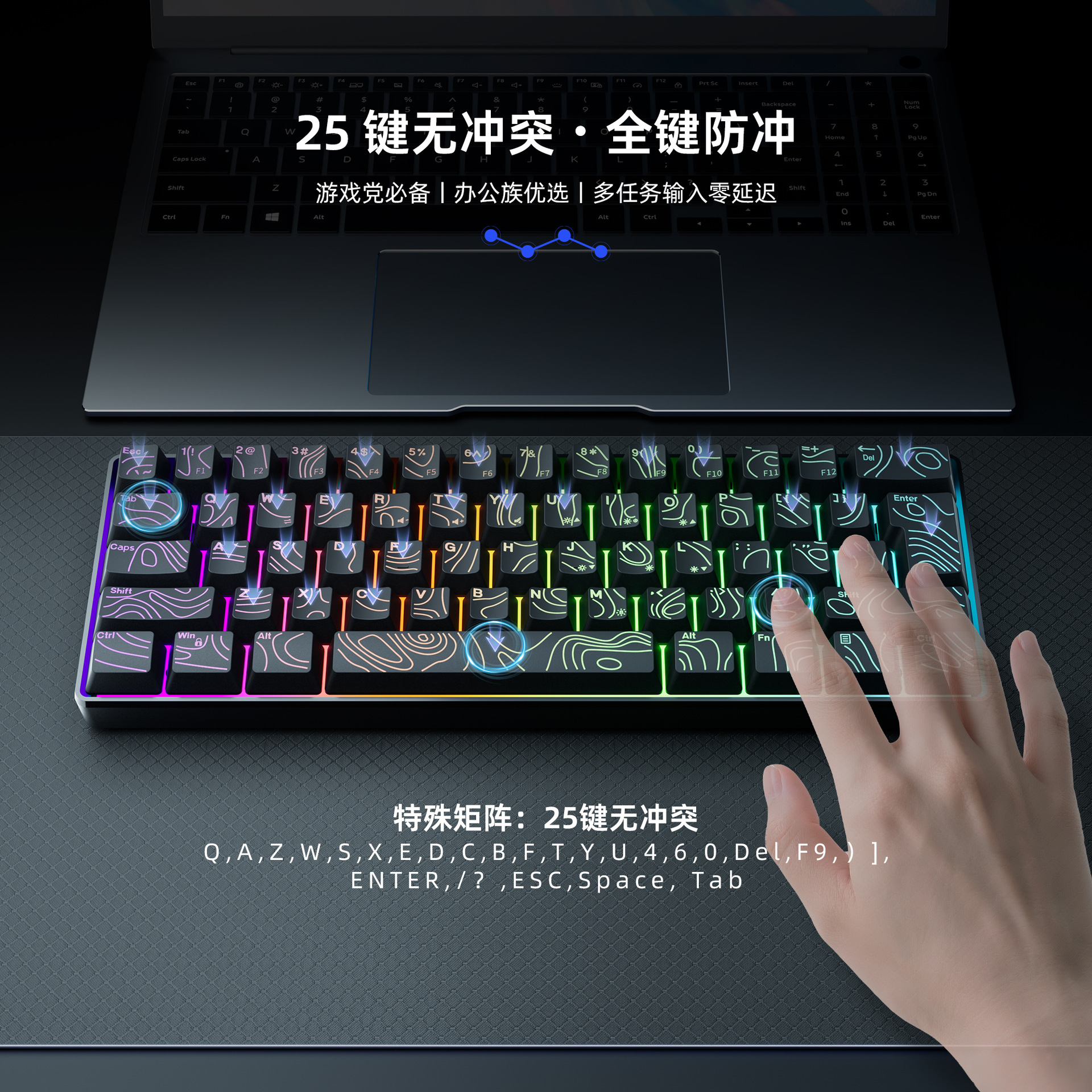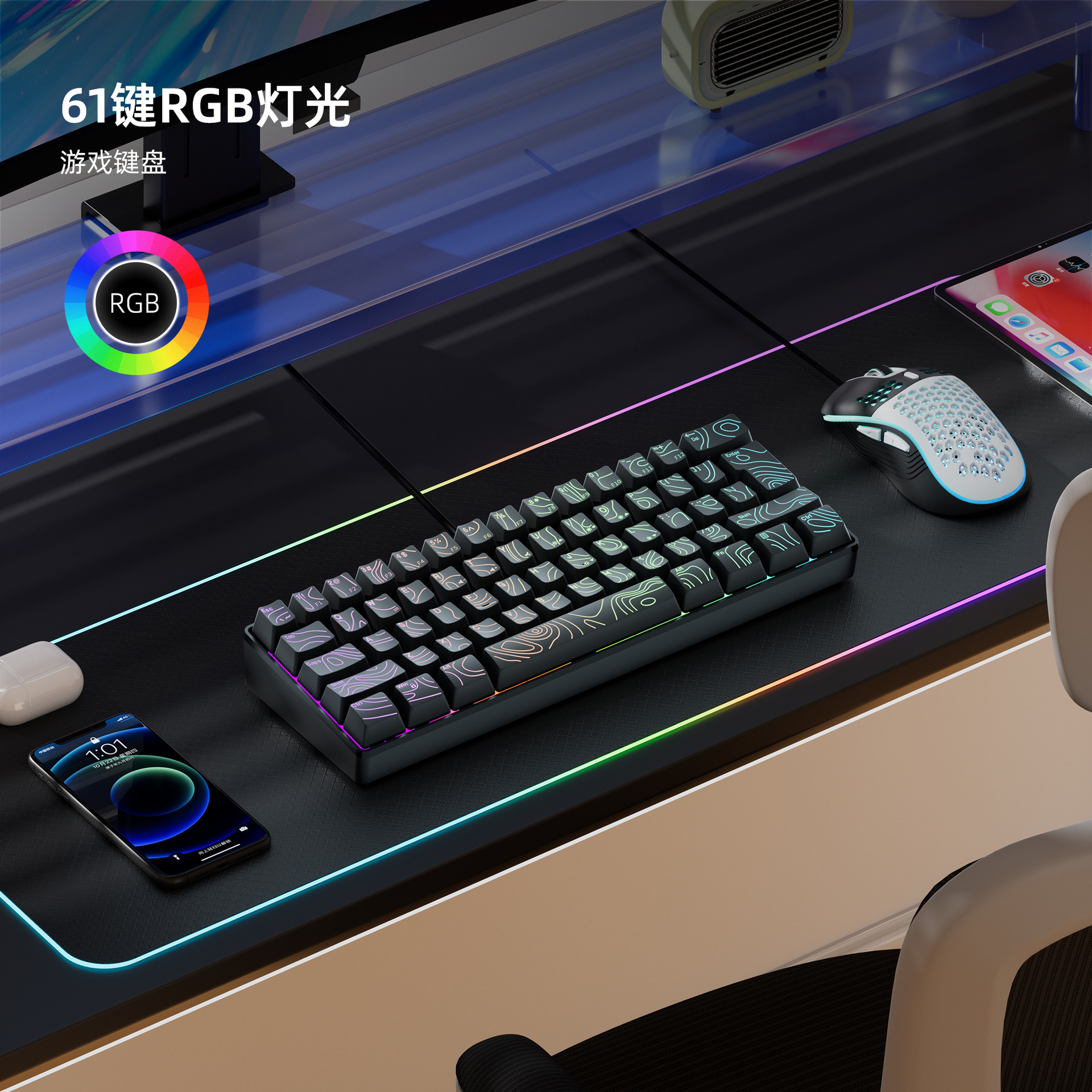 G61 등고선 키캡 반투명 키보드 RGB 발광 소형 멤브레인 키보드 데스크탑 컴퓨터 키보드 공장