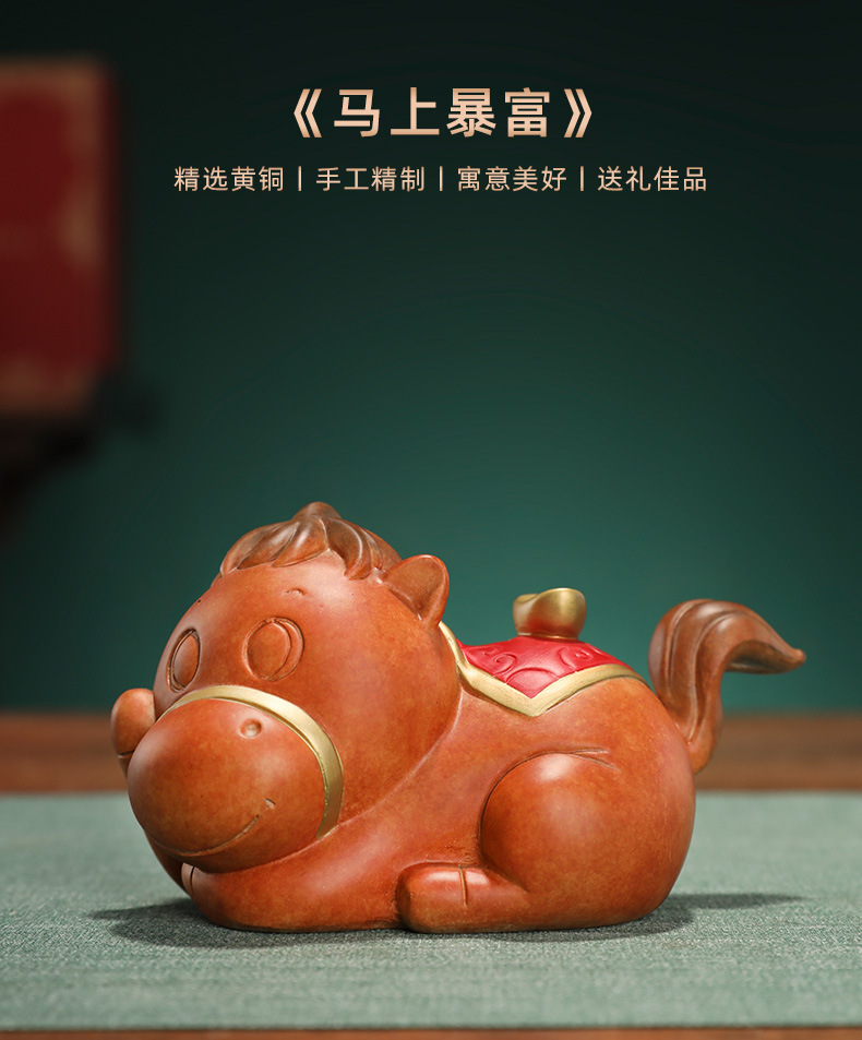 황동 공예 말 장식품, 부를 부르는 장식품, 거실, 서재, 와인 캐비닛 장식, 선물, 집들이, 개업 선물스토어 가기