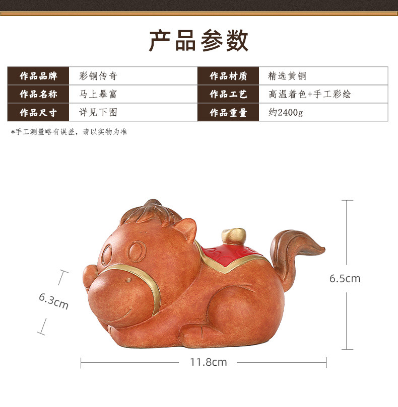 황동 공예 말 장식품, 부를 부르는 장식품, 거실, 서재, 와인 캐비닛 장식, 선물, 집들이, 개업 선물