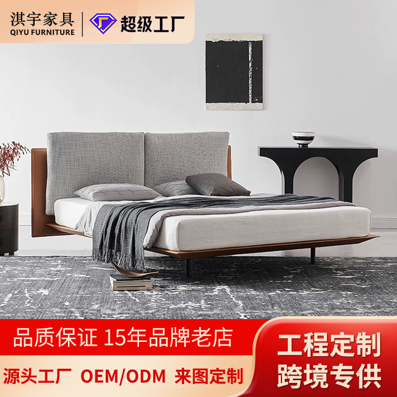 意式极简马鞍皮悬浮床高端定制阿斯顿马丁床现代卧室真皮双人床