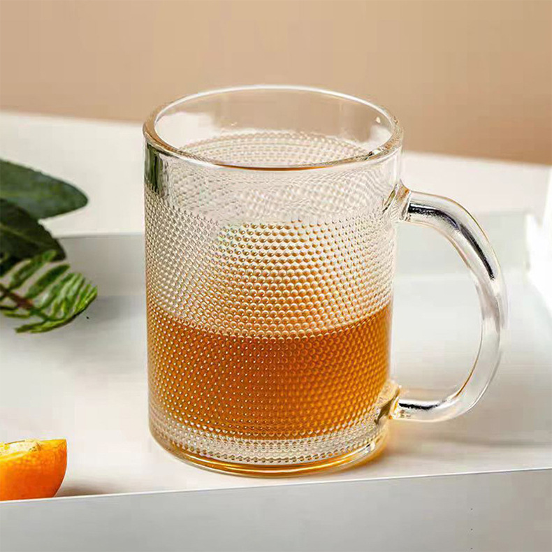 가정용 비드 도트 유리, 가벼운 고급 고급 음료 컵, 손잡이가 있는 고급스러운 주스 음료 컵, 상업용 커피 컵