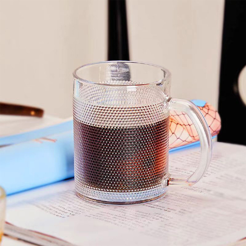 가정용 비드 도트 유리, 가벼운 고급 고급 음료 컵, 손잡이가 있는 고급스러운 주스 음료 컵, 상업용 커피 컵스토어 가기