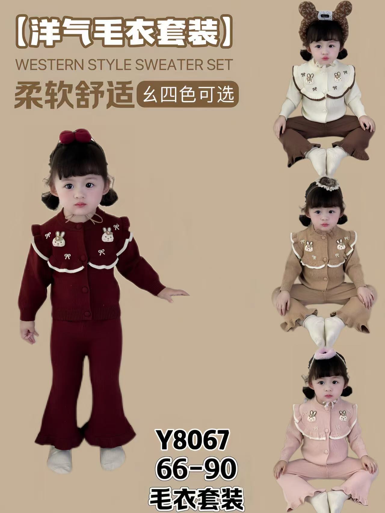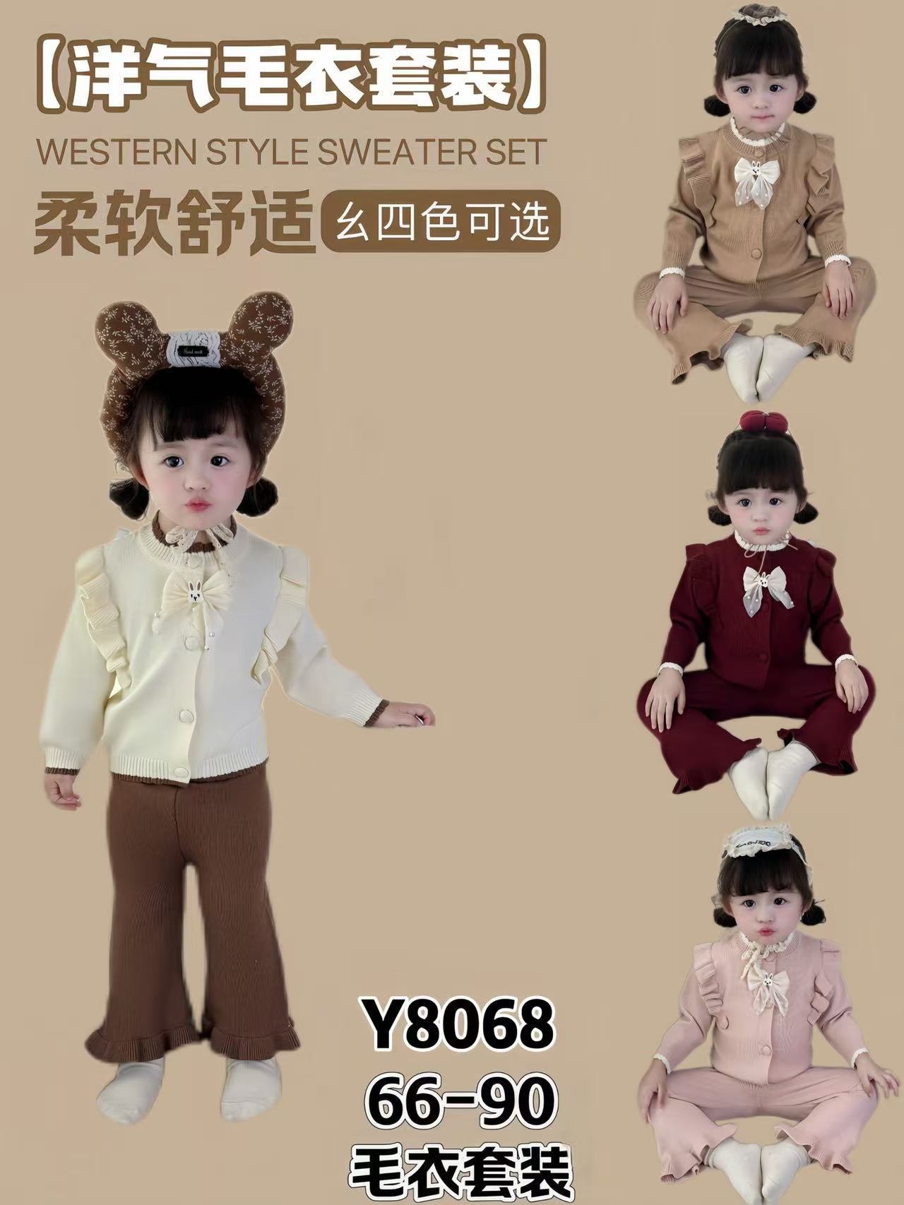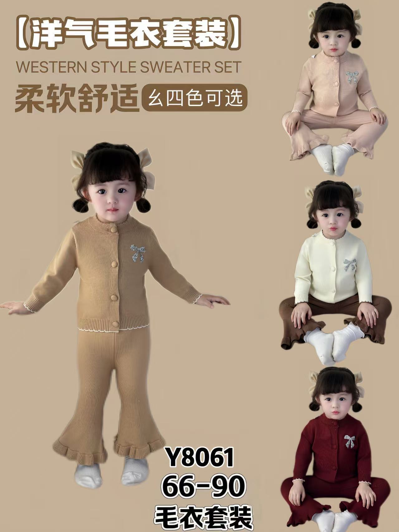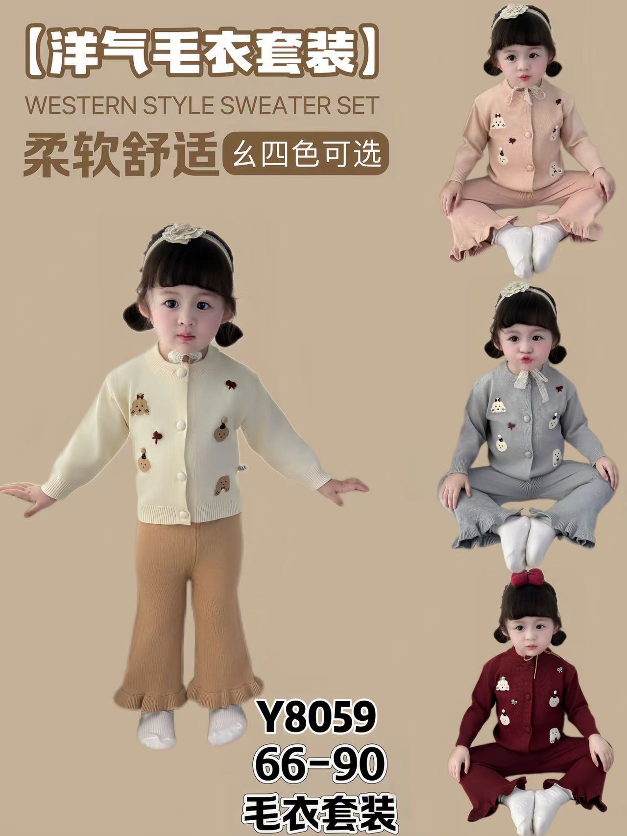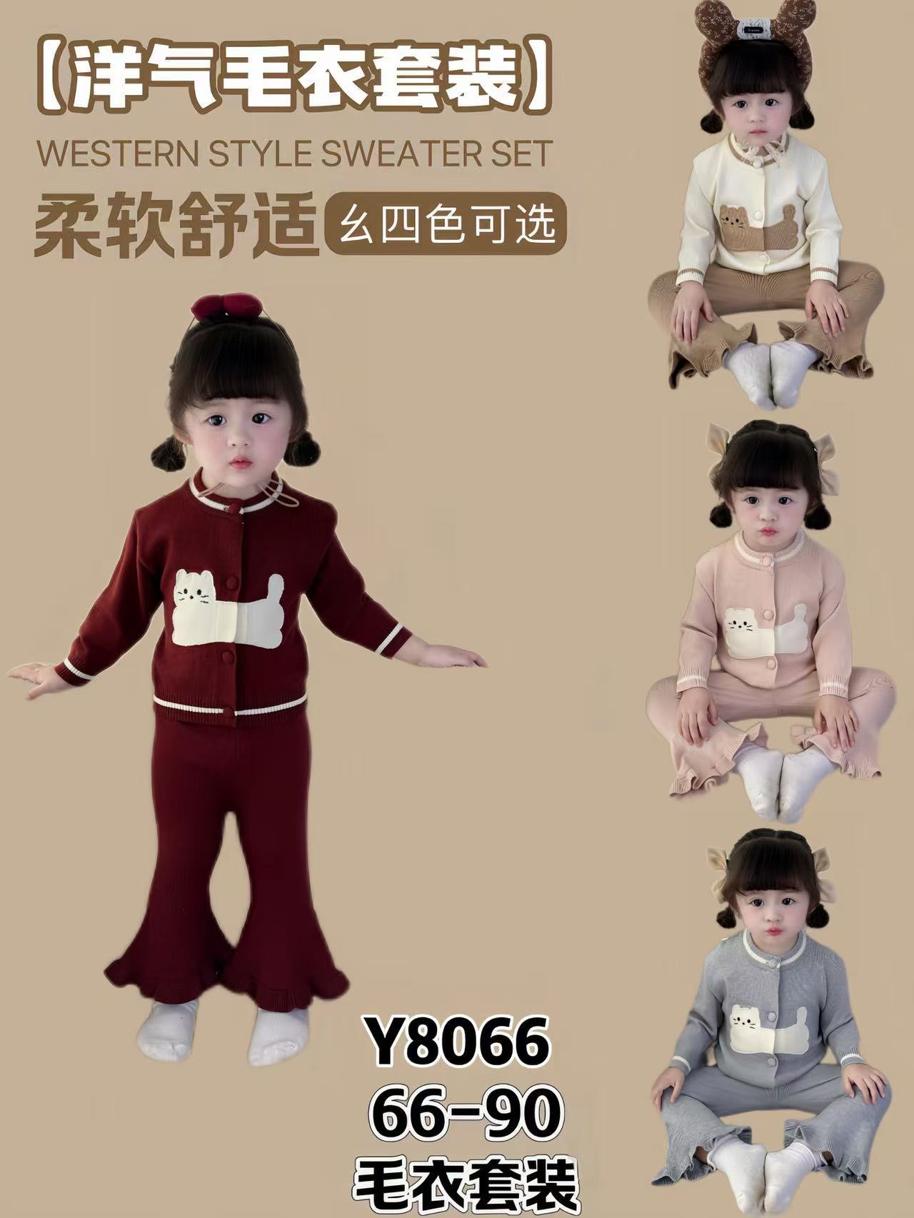 아기 소녀 아동 의류 귀여운 스웨터 정장 만화 강아지 스타일 싱글 브레스트 가을, 겨울 니트 플레어 바지스토어 가기