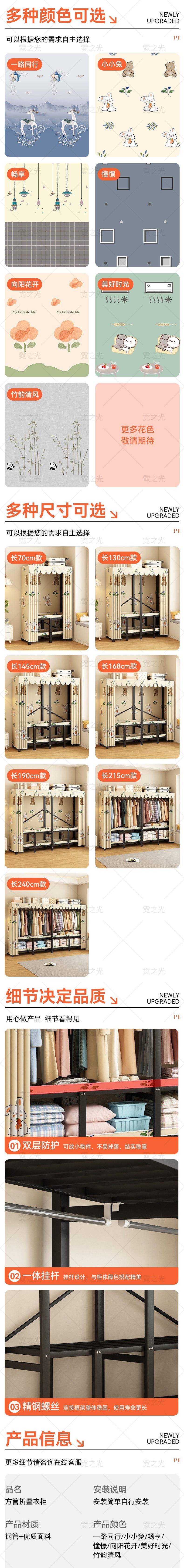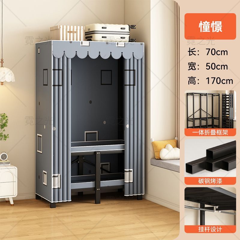 접이식 가정용 침실용 강철 프레임 옷장 설치, 두껍고 튼튼하며 내구성이 뛰어난 임대 주택 보관용 간단한 옷장