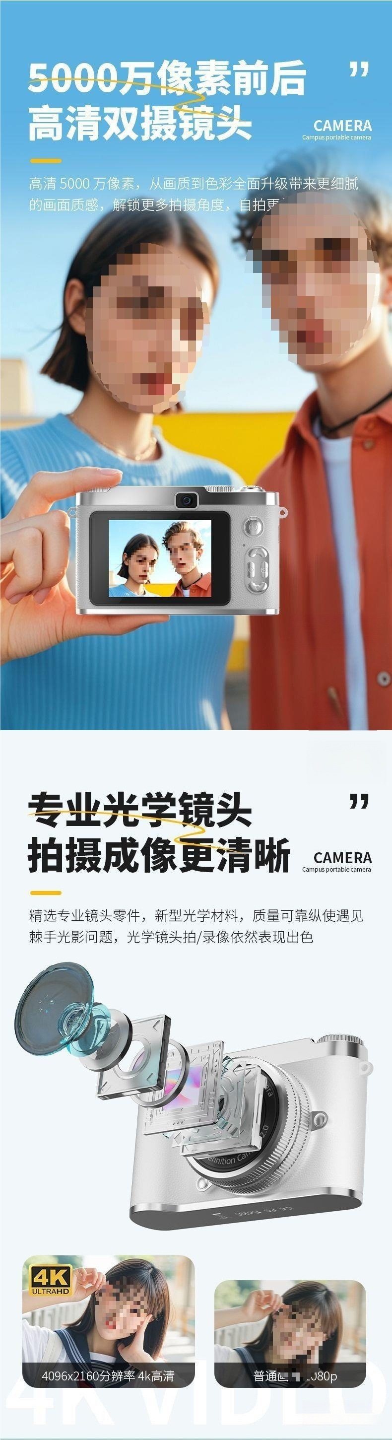 9600W 고화질 픽셀 카메라 고화질 인쇄 학생은 360시간 동안 배터리를 사용할 수 있는 캠퍼스 카메라 카드를 가지고 다닐 수 있습니다.스토어 가기
