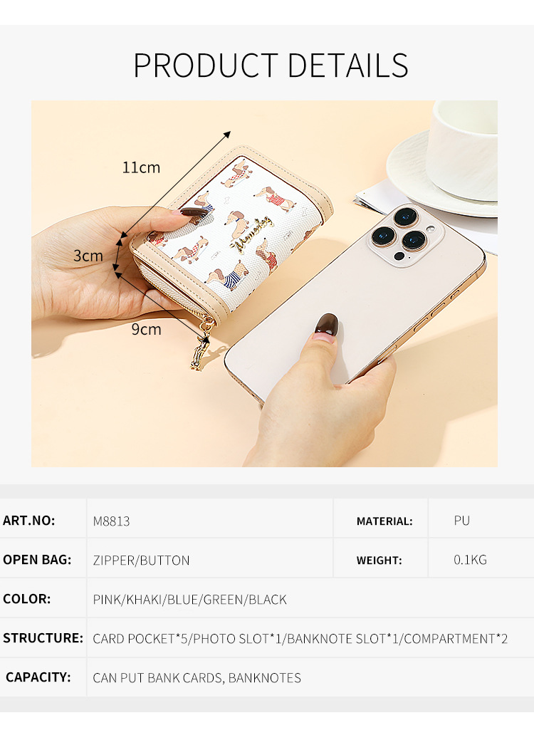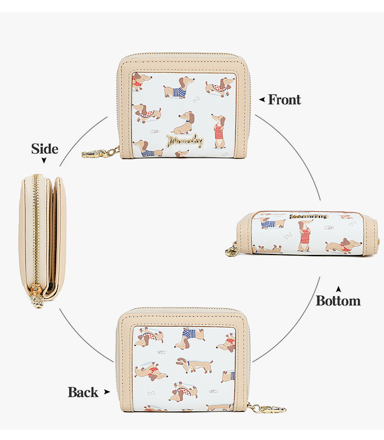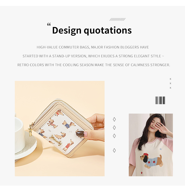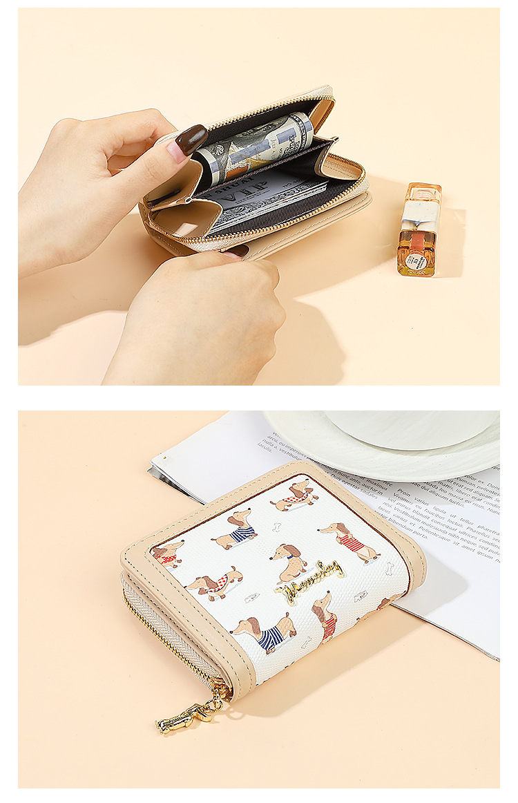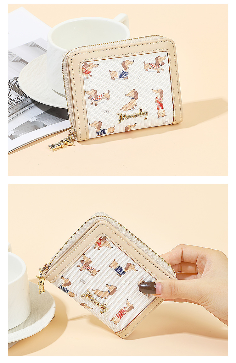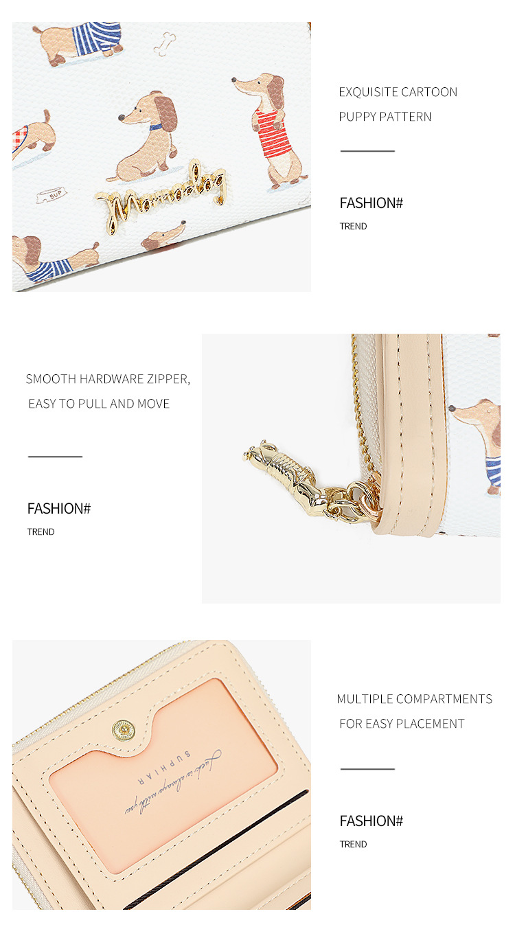 다기능 한국 스타일 심플 숏 지갑 카드홀더 일체형 신상 지퍼 강아지 만화 여성 지갑