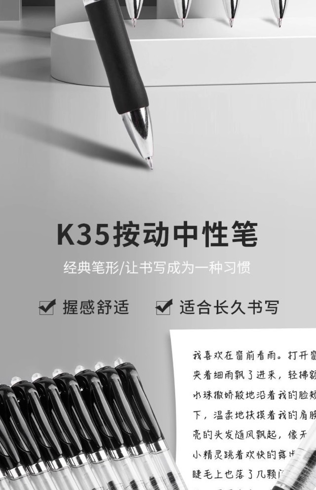 K35 누름식 젤 펜 학생용 연습문제 펜 검정 빨강 파랑 0.5mm 총알형 클래식 사무용 문화 서명펜스토어 가기