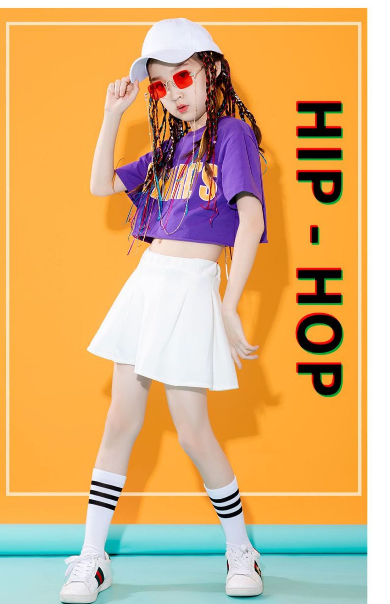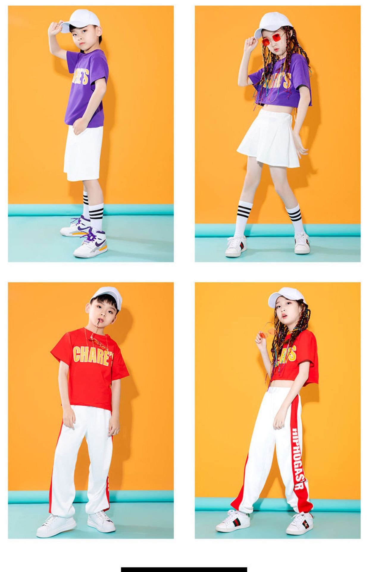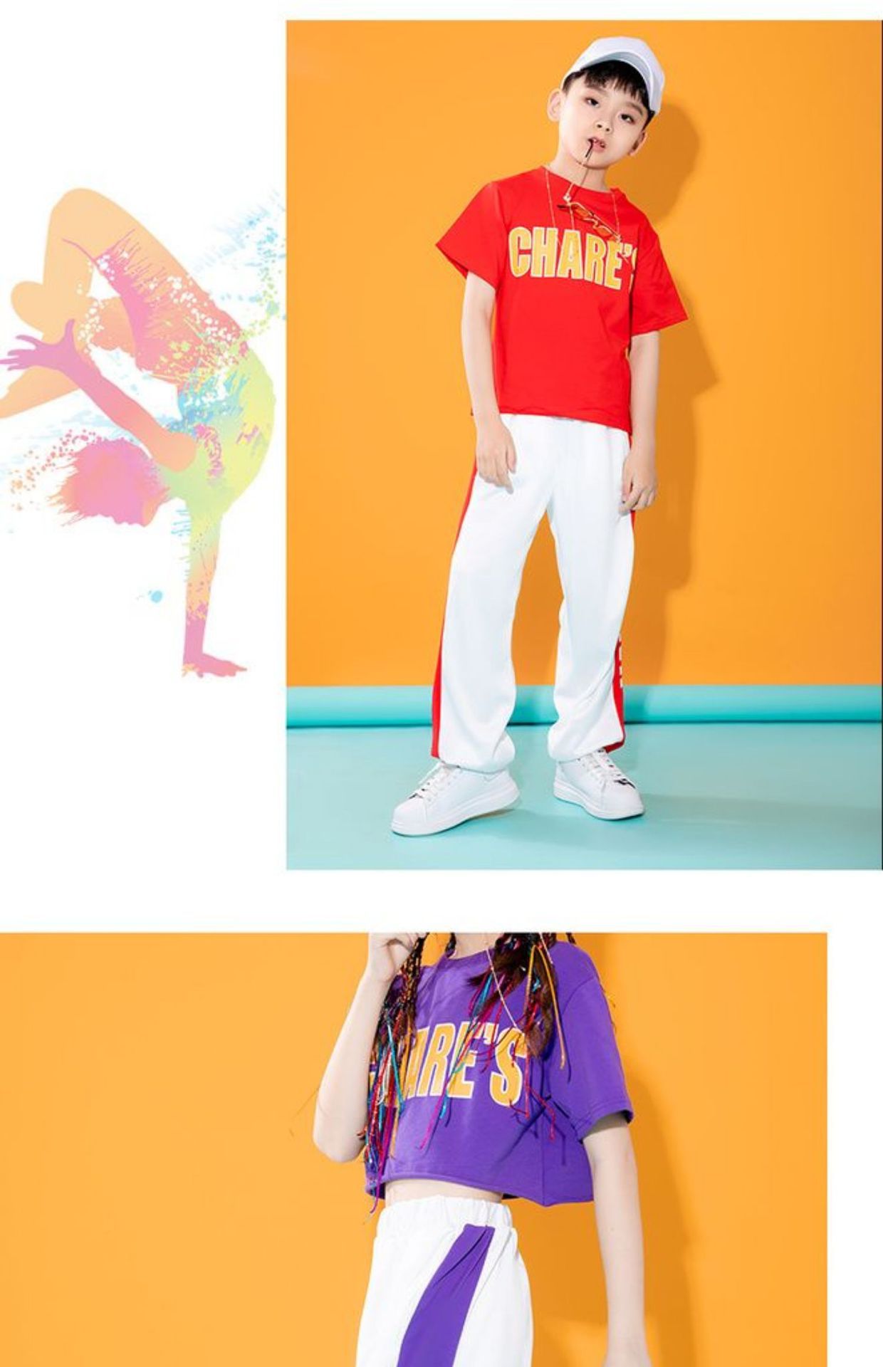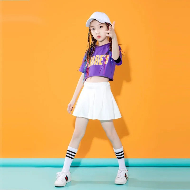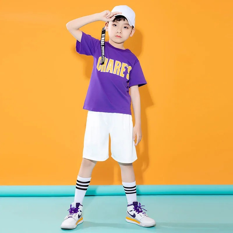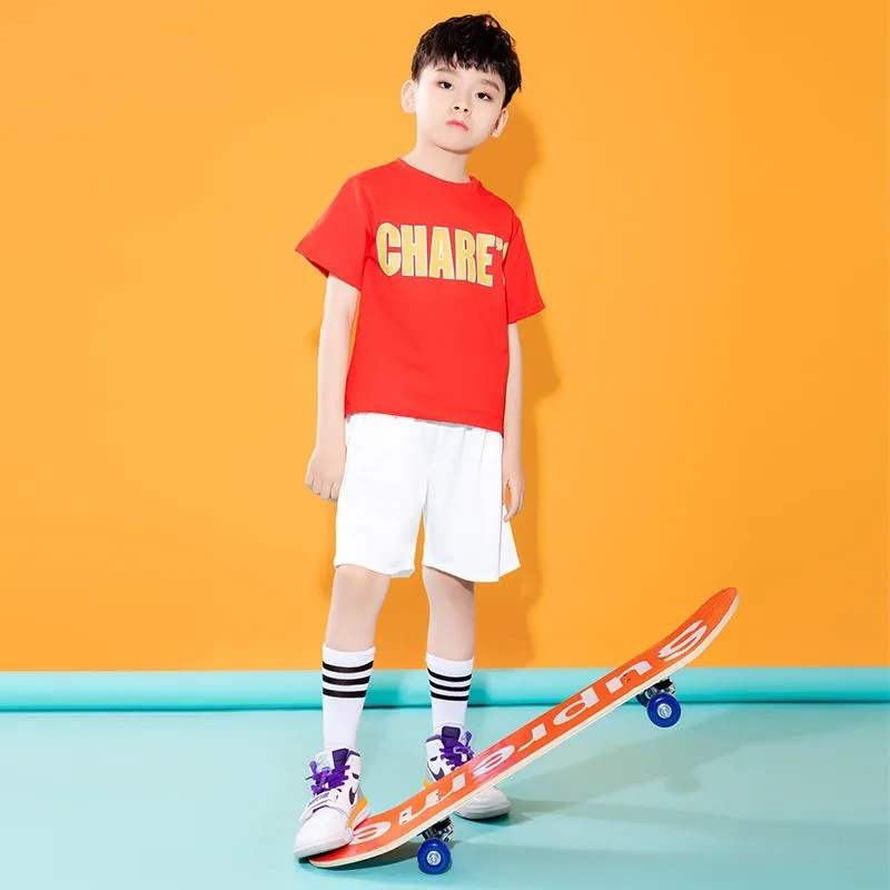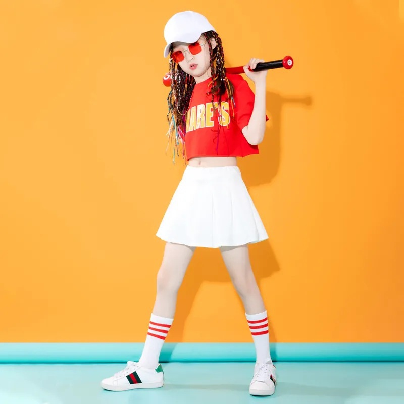 어린이를위한 새로운 스타일 치어 리더 공연 의상 소년과 소녀 스포츠 게임 여름 재즈 댄스 보디 빌딩 공연 의상