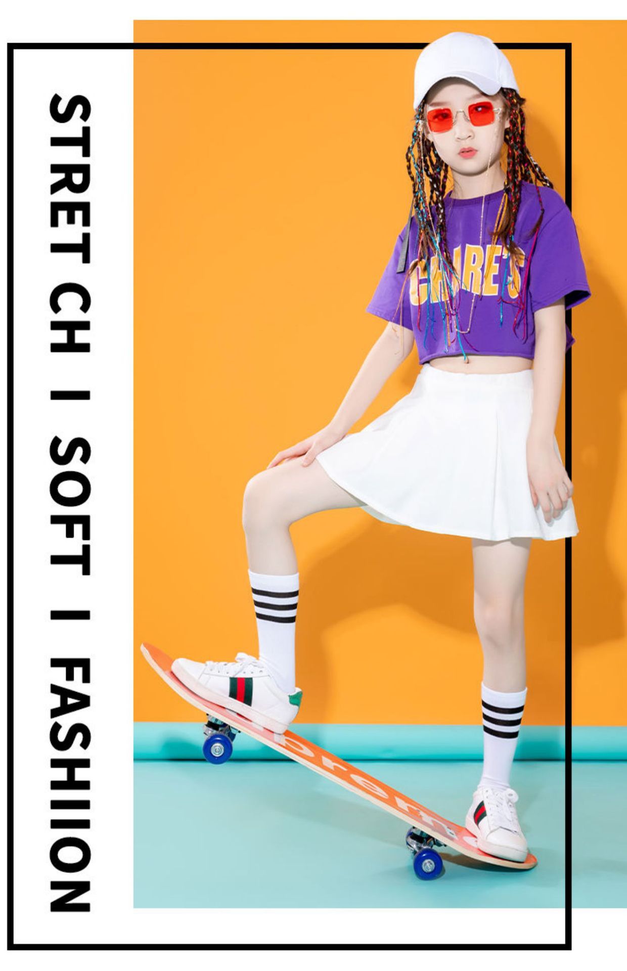 • CH 보라색 탑 + 흰색 스커트