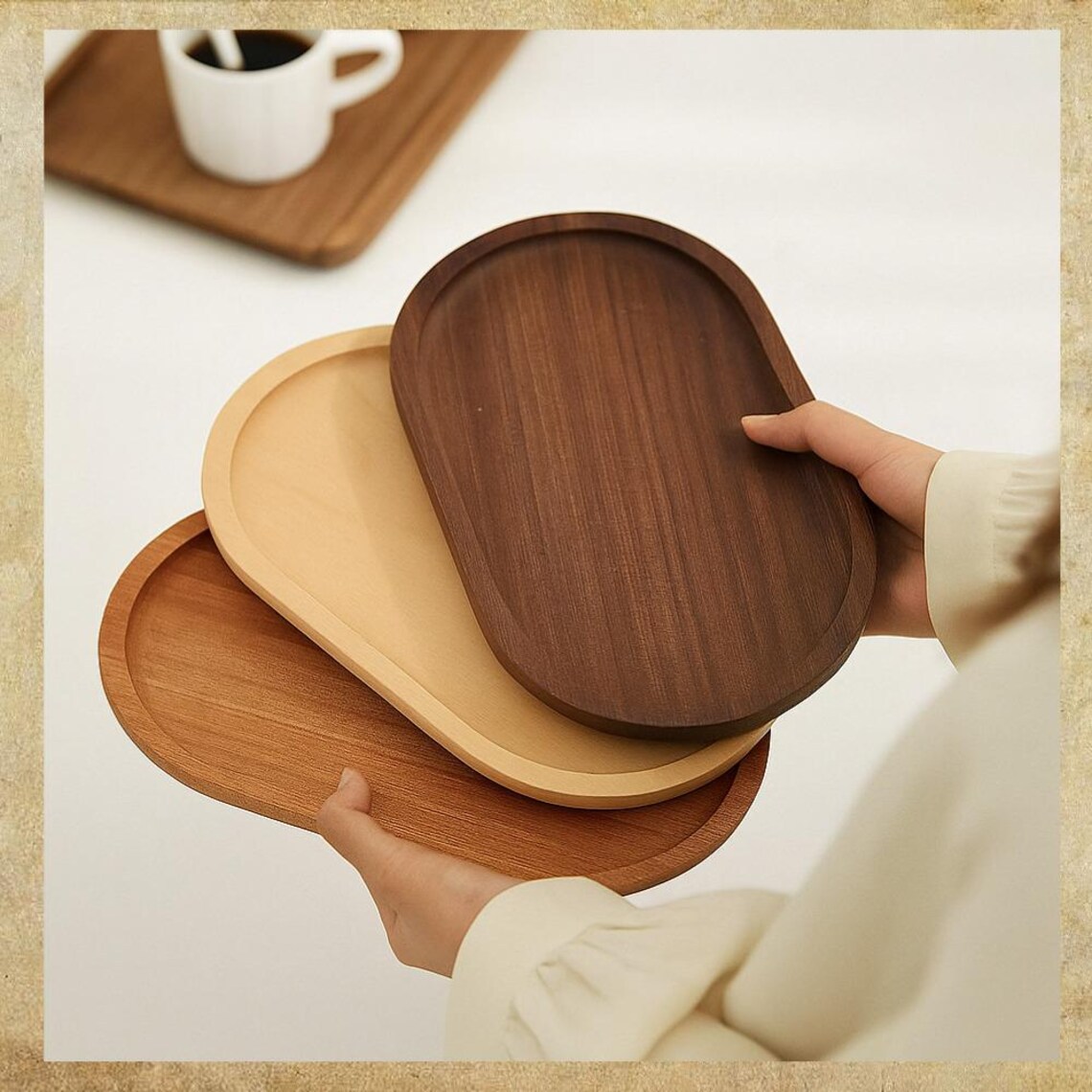 일본 유럽과 미국 과일 접시 스낵 접시 단단한 나무 사각형 라운드 애프터눈 티 커피 트레이 맞춤형 대외 무역 수출 공급