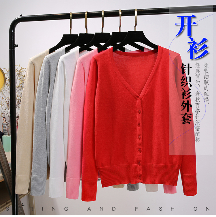 봄, 가을 여성용 니트 가디건, 짧고 얇은 한국식 루즈하고 활용도가 높은 초봄 아우터, 긴팔 스웨터 재킷