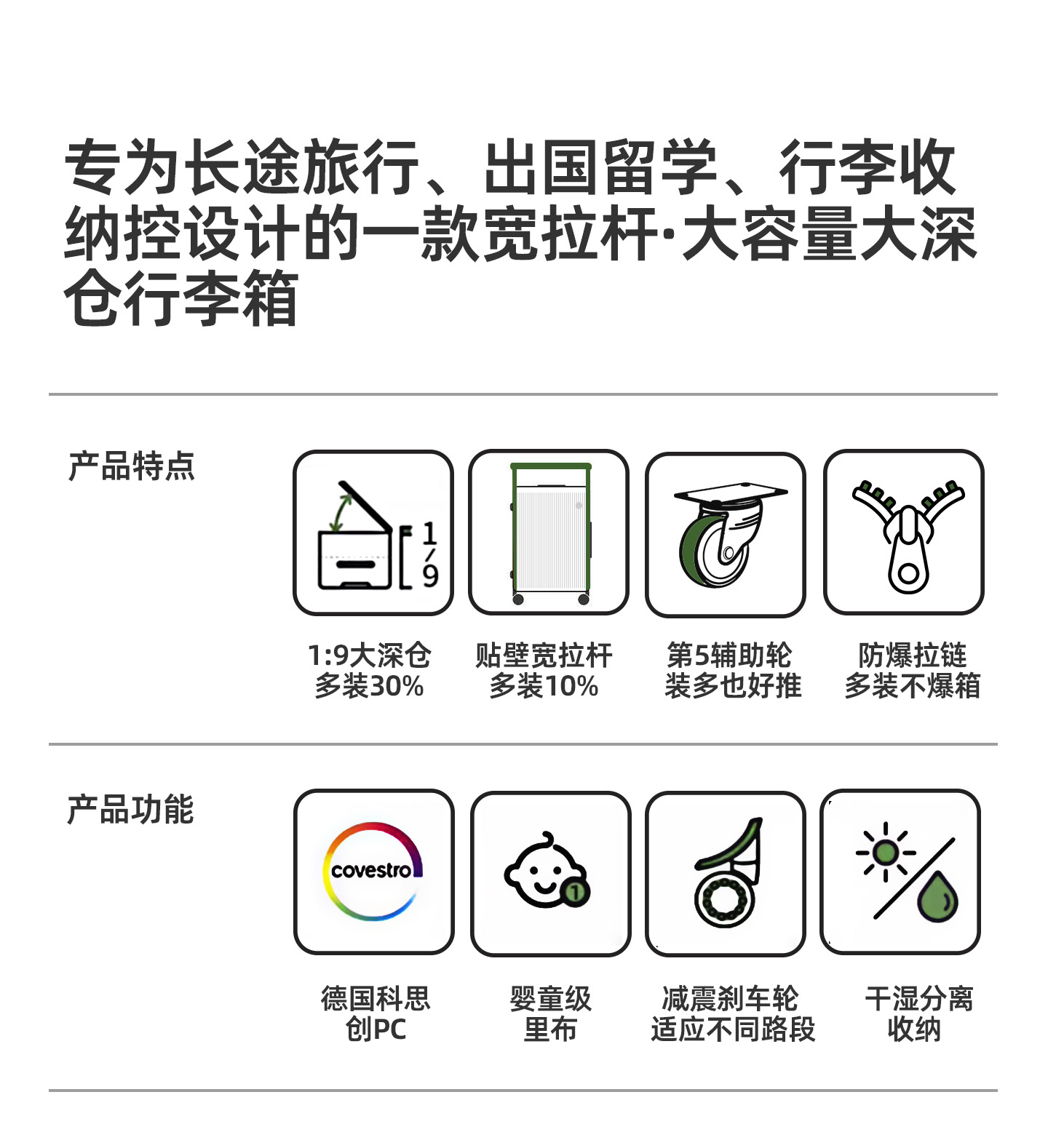 • 30inch [충격흡수 브레이크 휠 + 이중 방폭 지퍼 + 5륜 무소음]