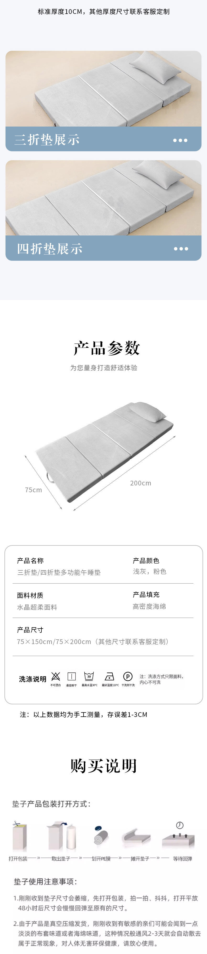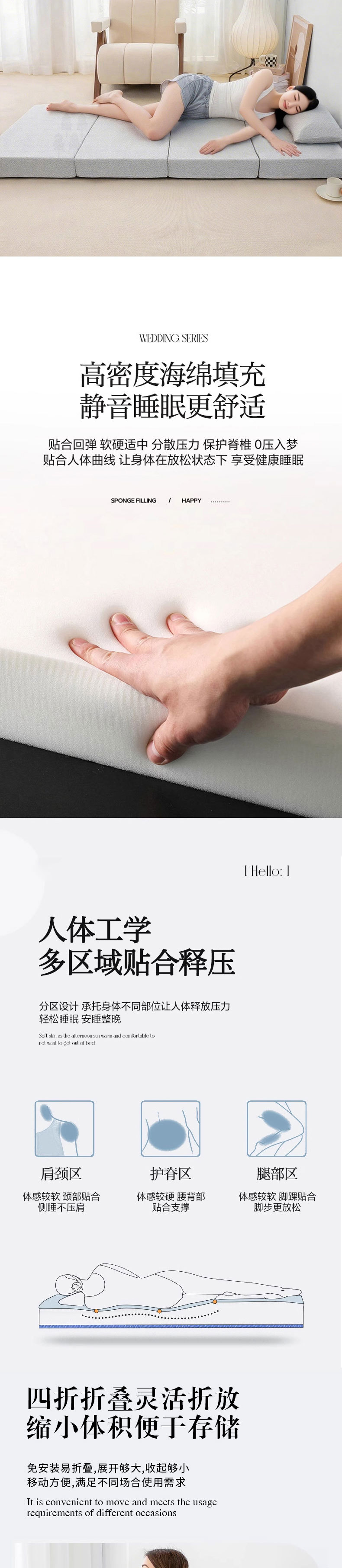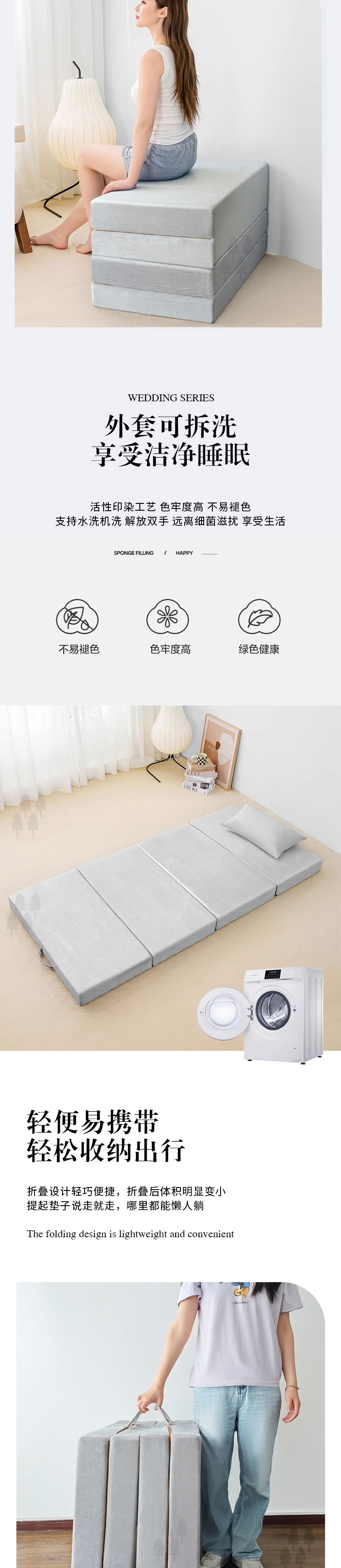 두꺼운 10cm 접이식 매트리스 학생 사무실 바닥 매트 두꺼운 스펀지 매트 탈부착 가능 낮잠 매트