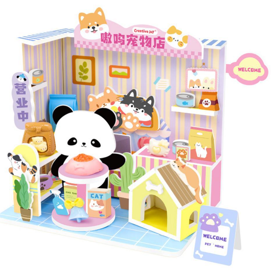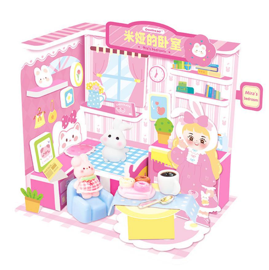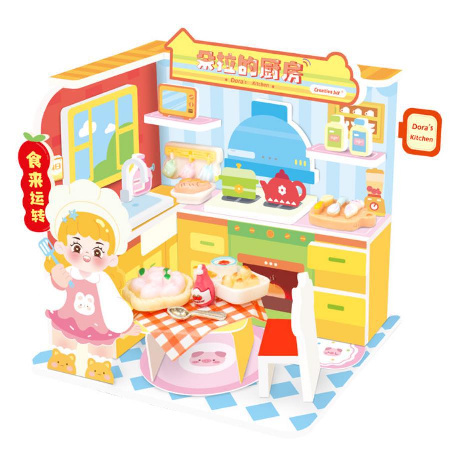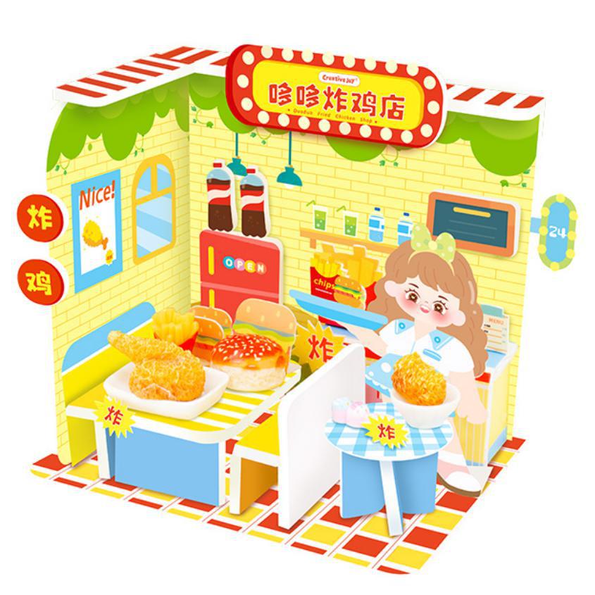 소녀 DIY 수제 미니 빌딩 미니어처 장면 캐빈 빵 디저트 편의점 놀이 집 교육 장난감