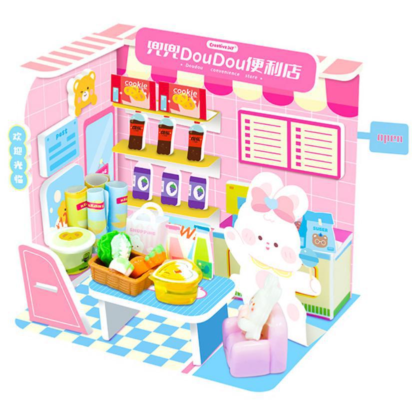 소녀 DIY 수제 미니 빌딩 미니어처 장면 캐빈 빵 디저트 편의점 놀이 집 교육 장난감스토어 가기