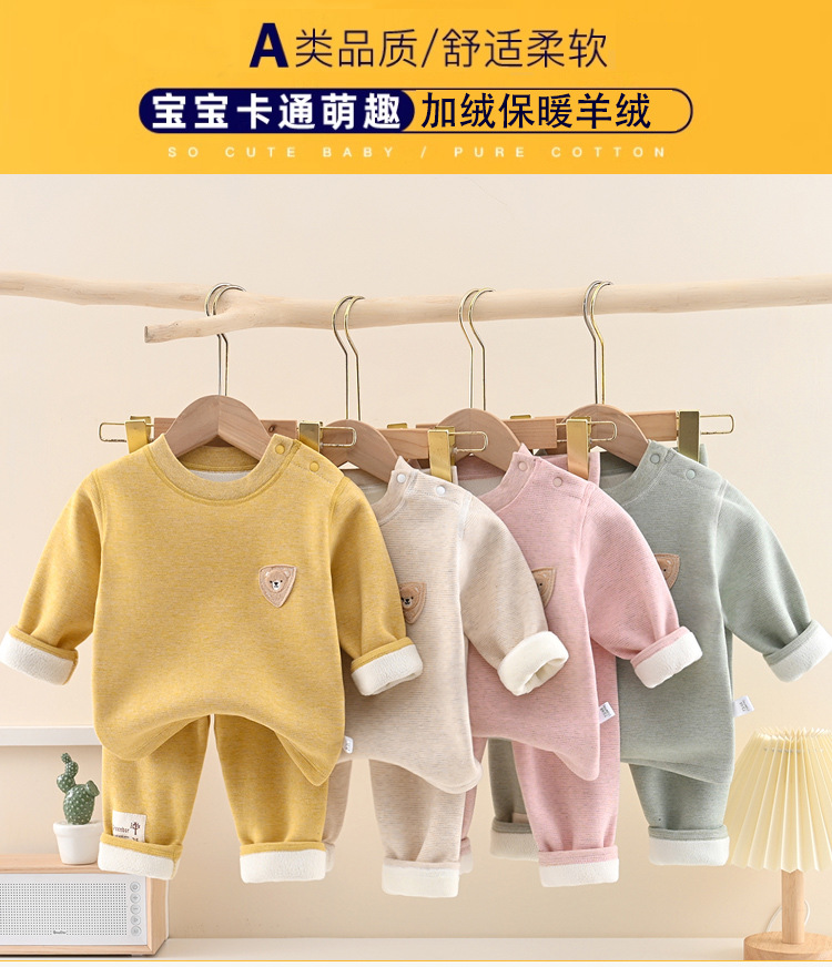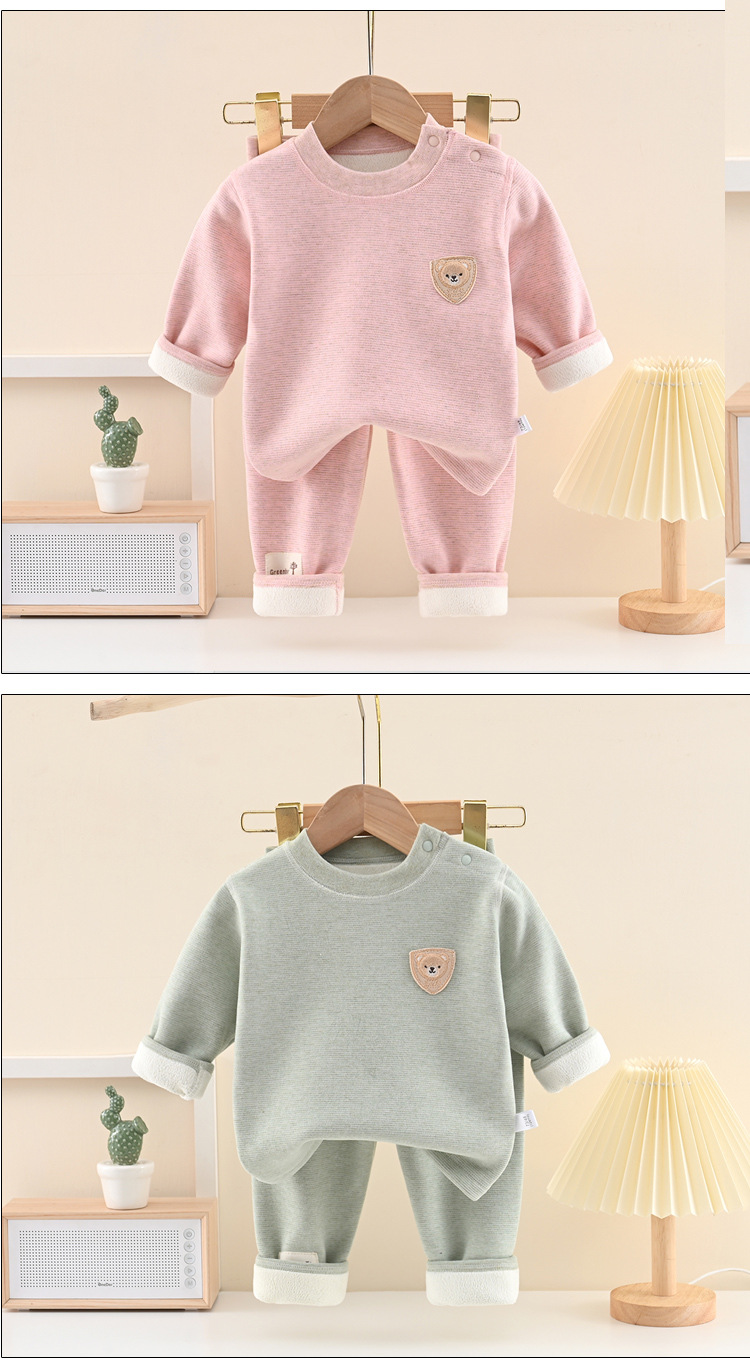 아동용 양털 속옷 세트, 새로운 가을 겨울 긴팔 가을 옷과 긴 바지, 중소형 소년 소녀를 위한 두껍고 따뜻한 가정복스토어 가기