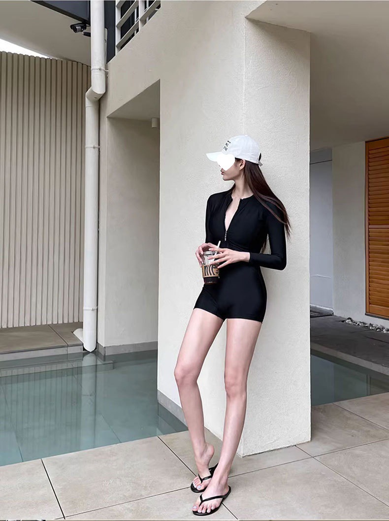 일본과 한국의 새로운 잠수복 원피스 복서 긴팔 수영복 여성용 속건성 섹시한 서핑 지퍼 해파리 스노클링 슈트