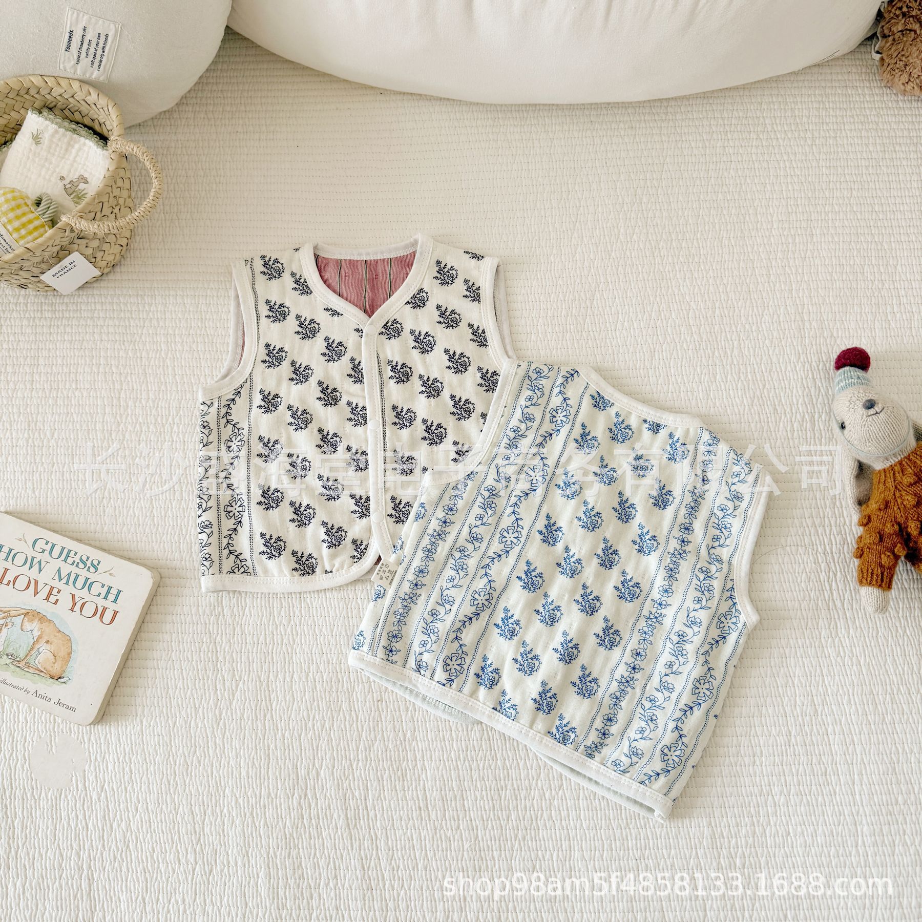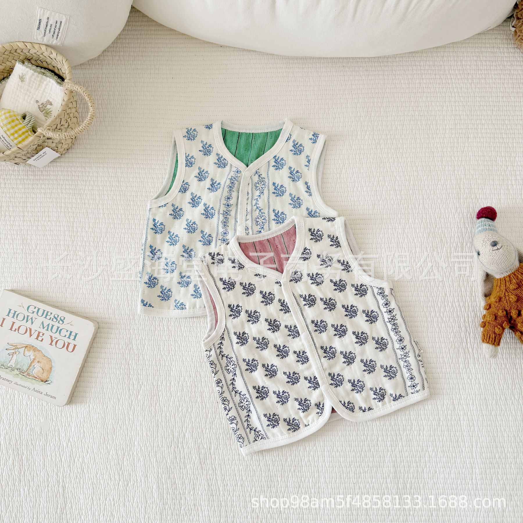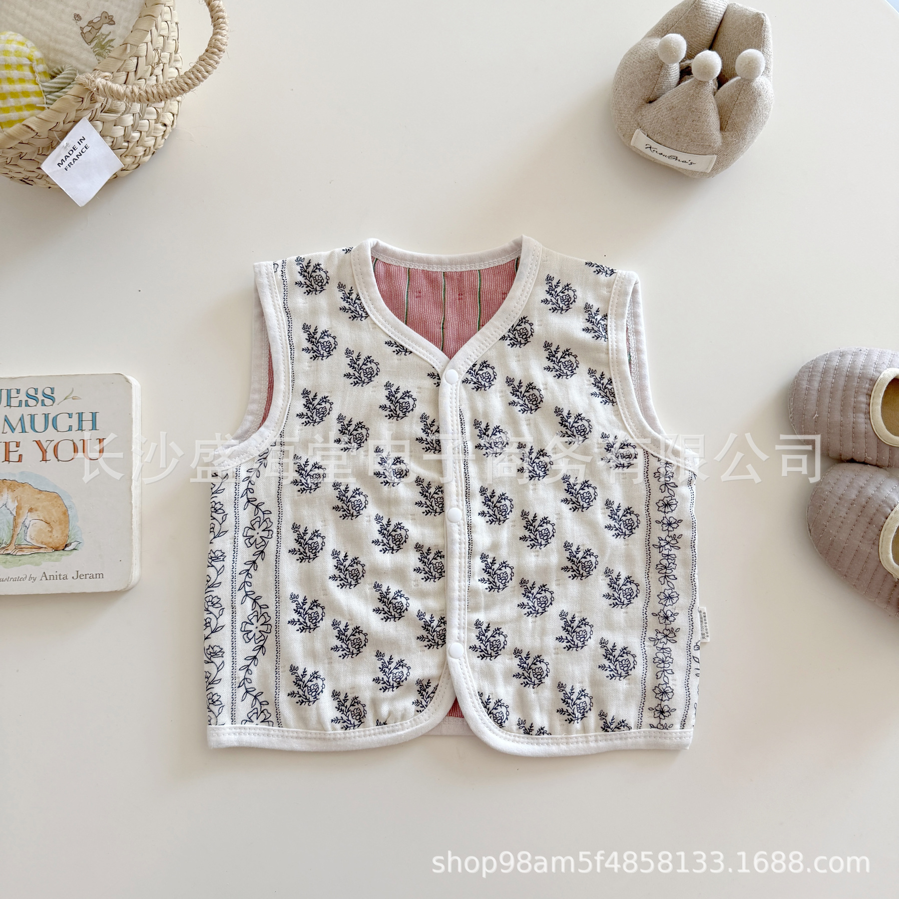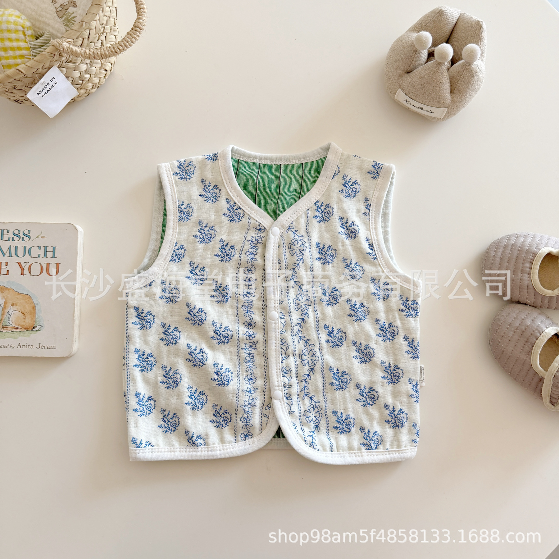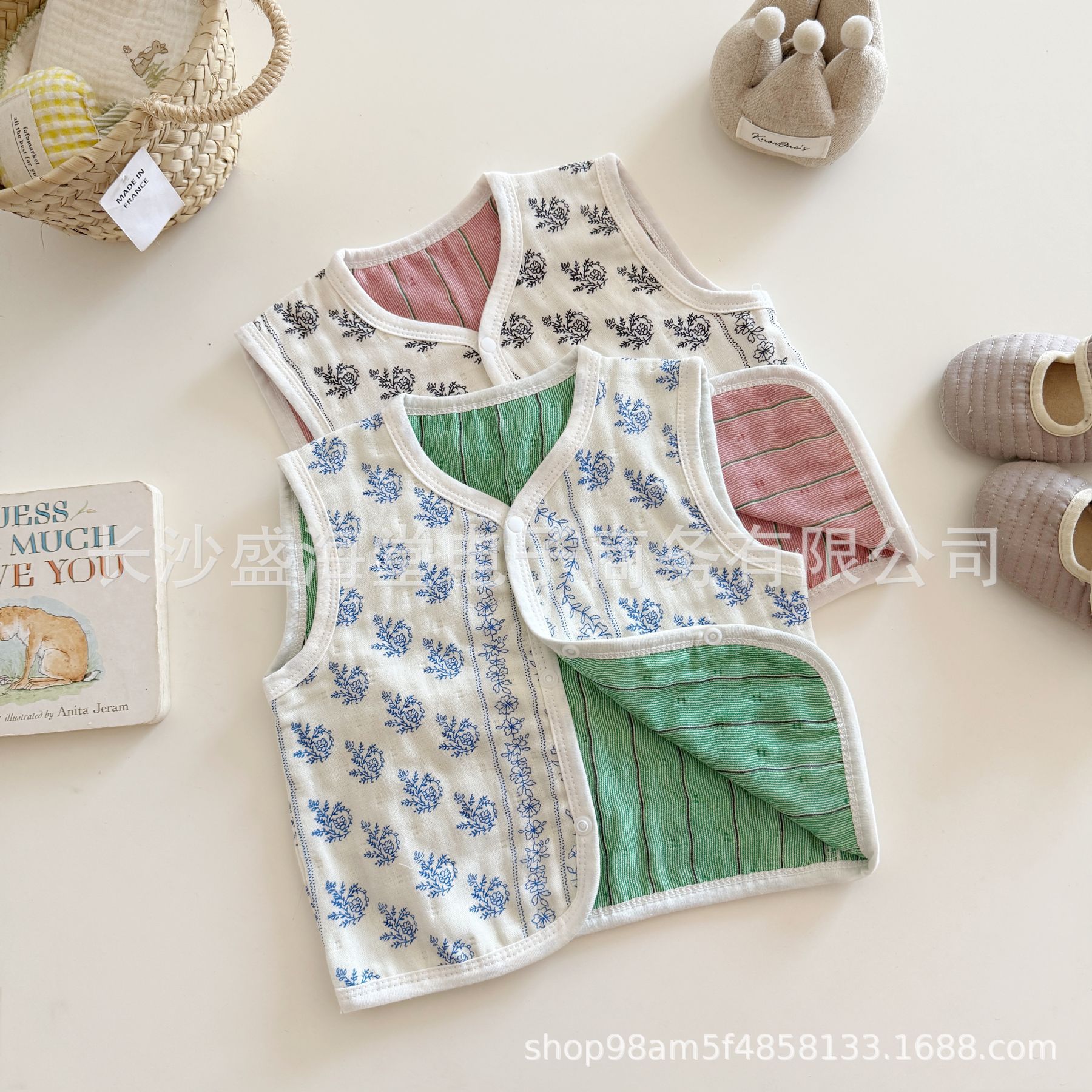 ins 한국식 아기 조끼 봄과 가을 아기 조끼 겉옷 남성과 여성 아기 스타일 조끼 다용도 거즈 조끼스토어 가기