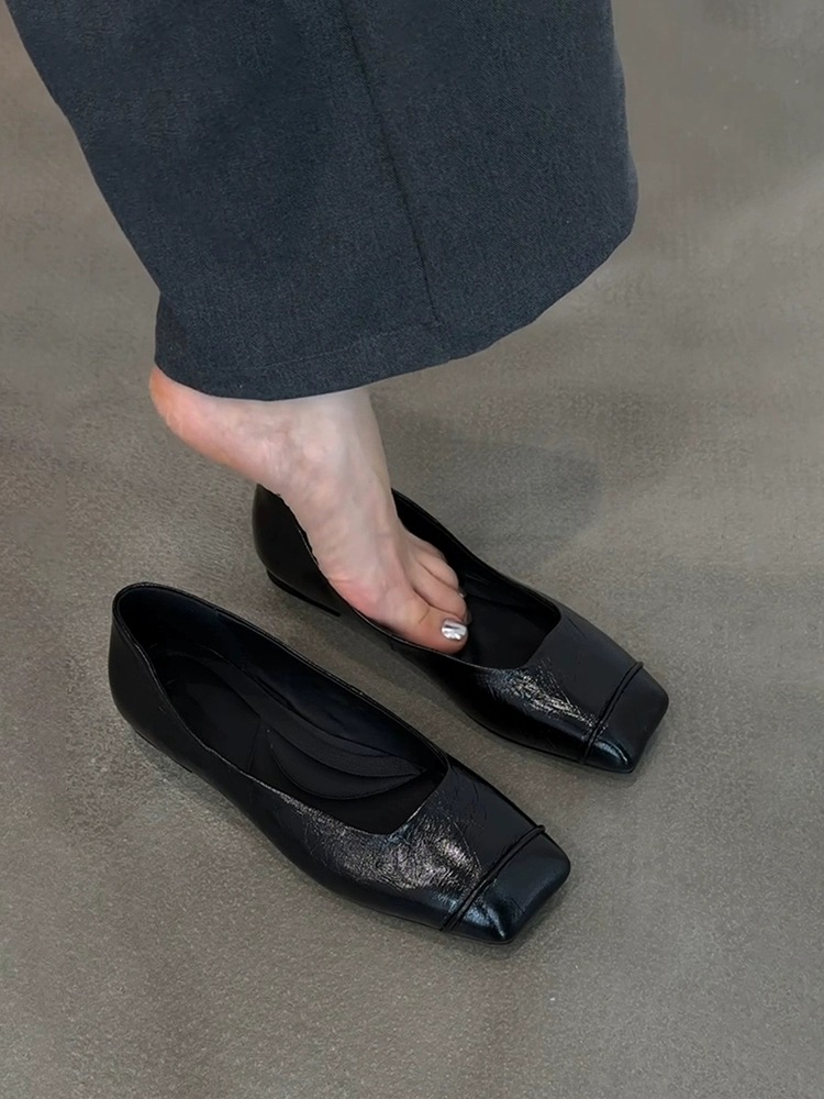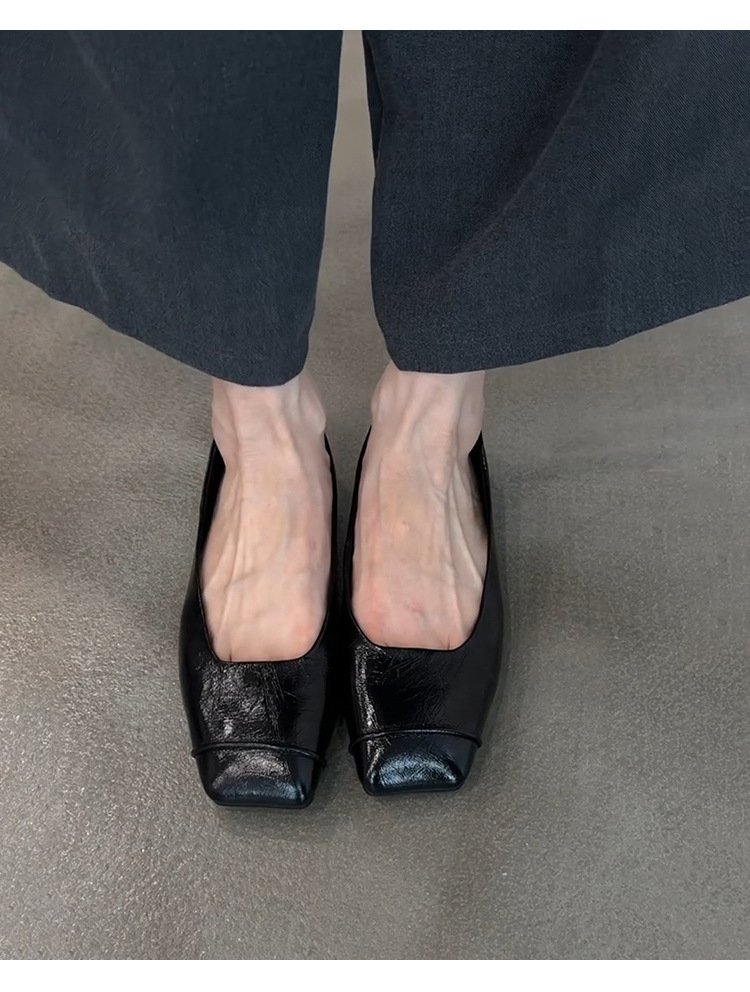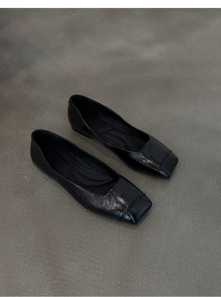 레트로 스타일 ~ 여름 여성을 위한 슬림하고 편안한 통근 플랫 슈즈 새로운 스타일 미니멀리스트 스퀘어 토 원스텝 다용도 작은 신발