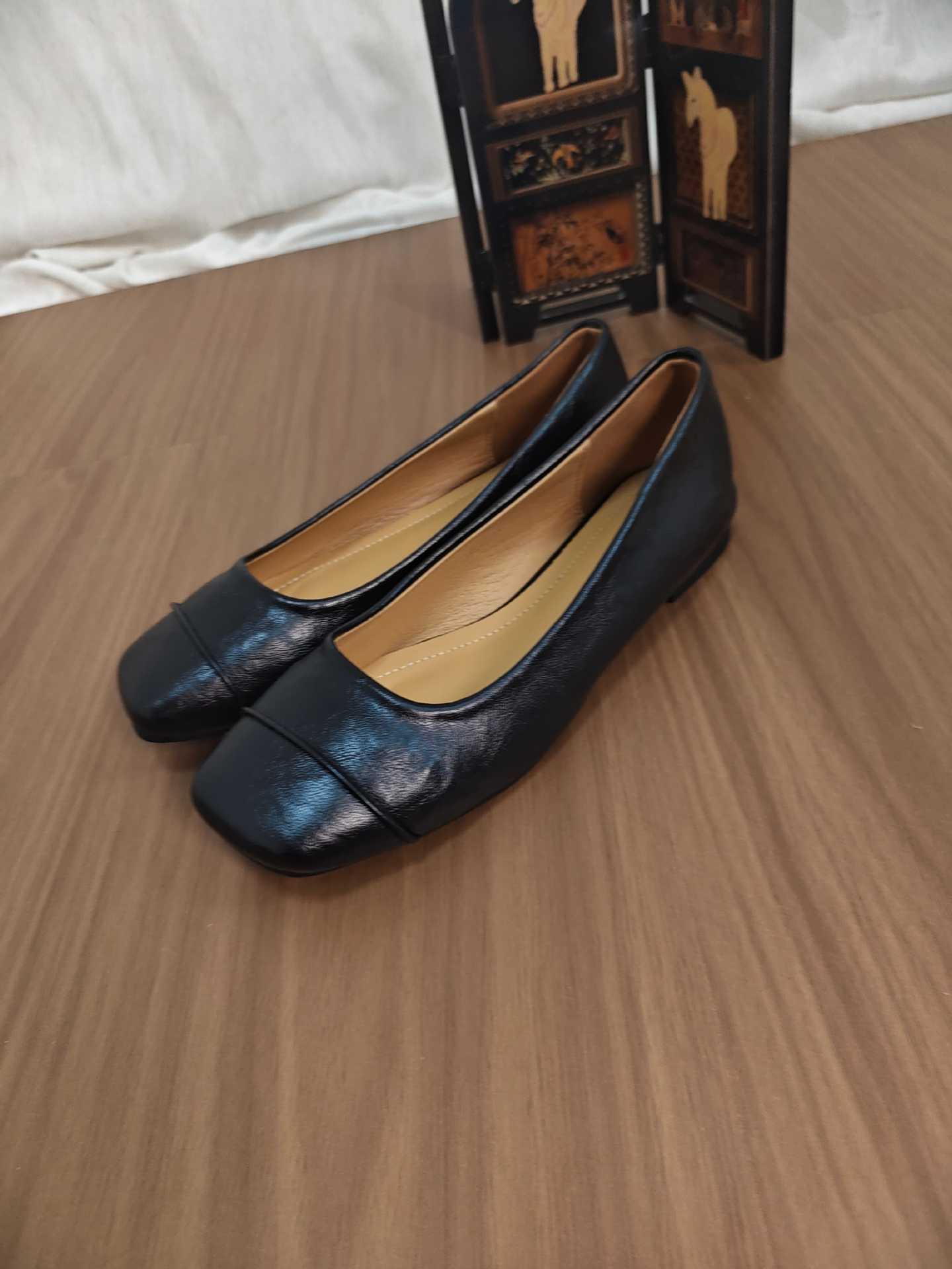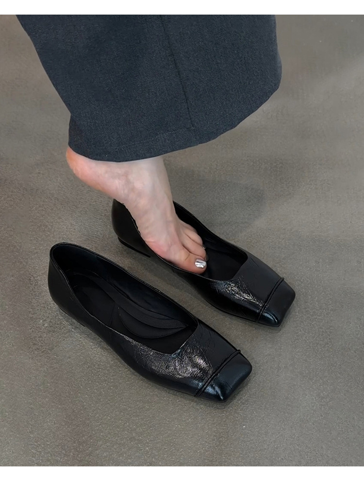 레트로 스타일 ~ 여름 여성을 위한 슬림하고 편안한 통근 플랫 슈즈 새로운 스타일 미니멀리스트 스퀘어 토 원스텝 다용도 작은 신발스토어 가기