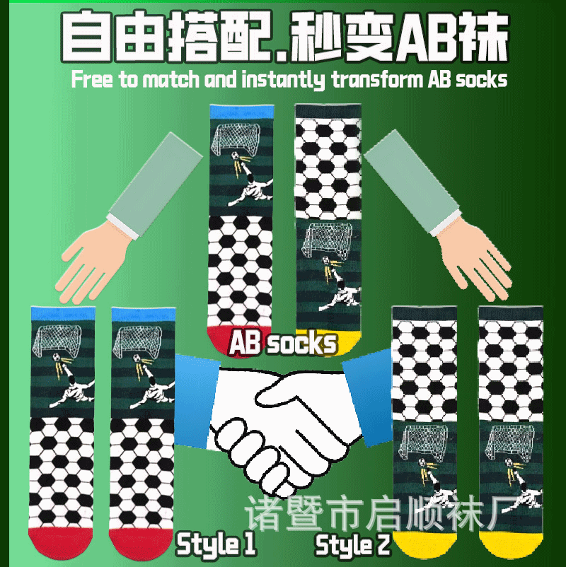 축구 스타일의 면 소재 하이탑 팬 양말, 남녀공용 체크무늬 축구 요소 AB 트렌디 양말, 아마존 베스트셀러 스포츠 양말스토어 가기