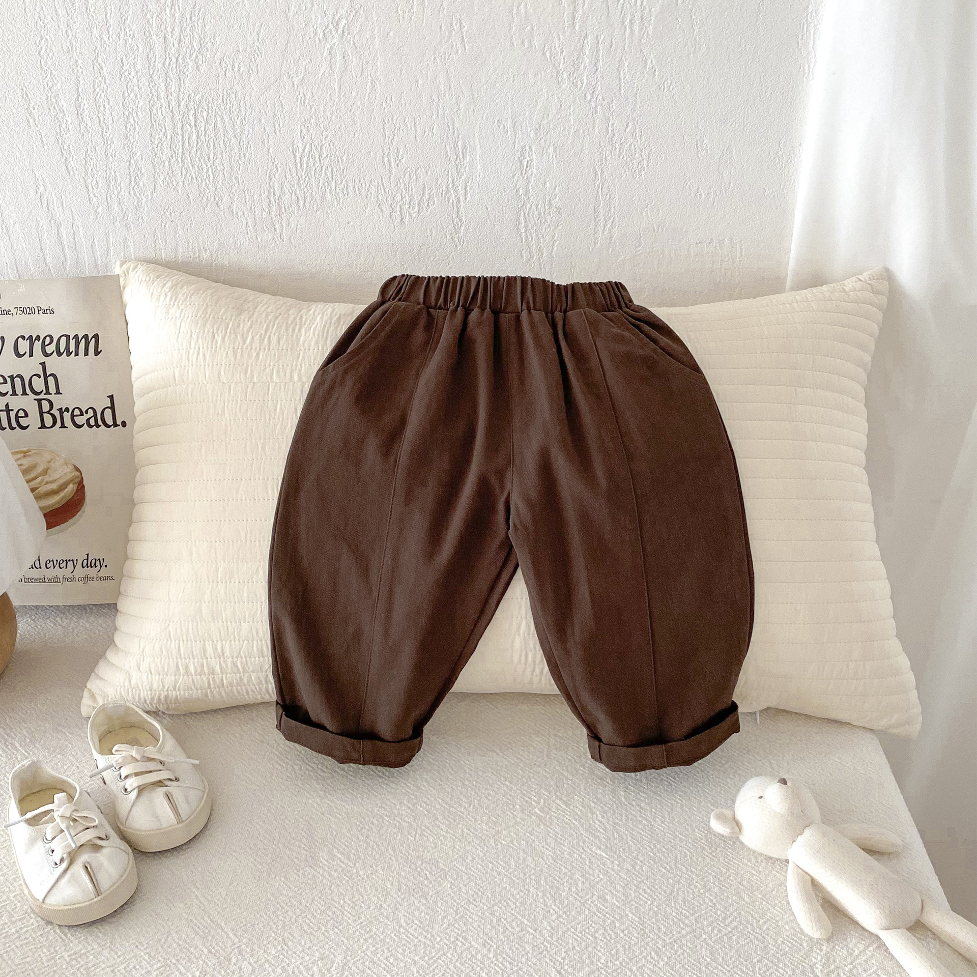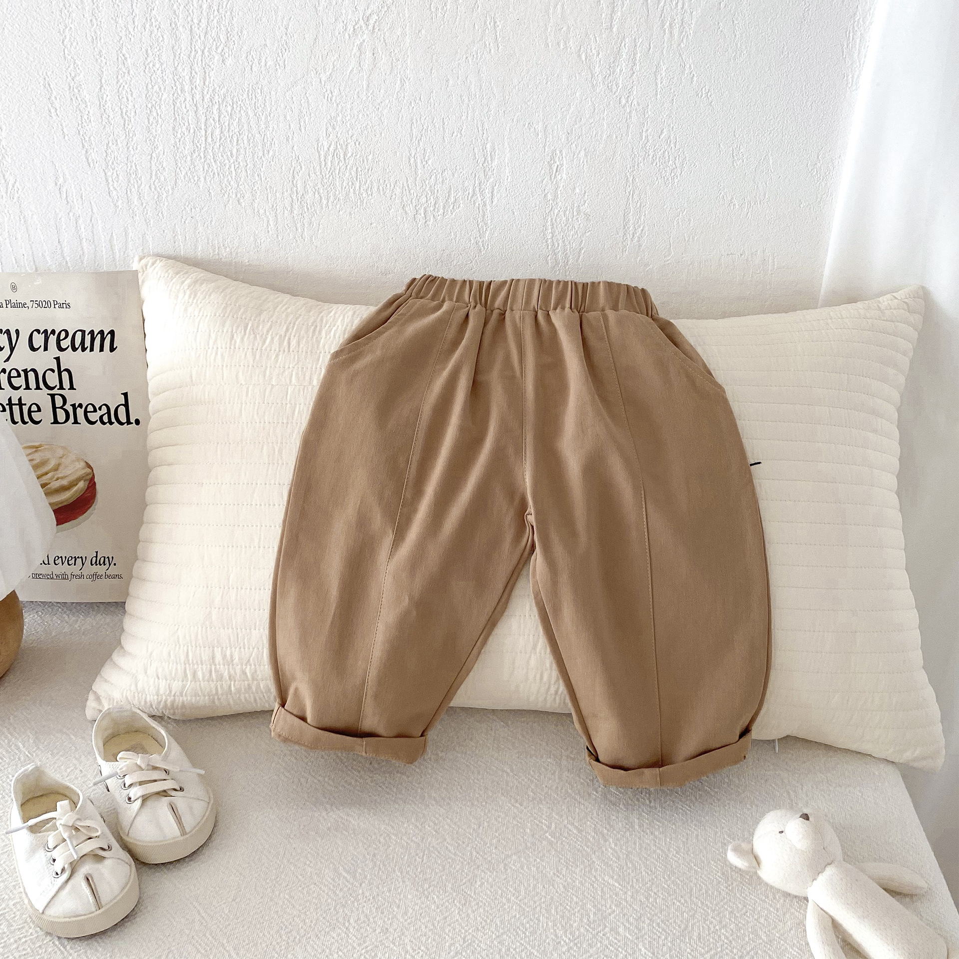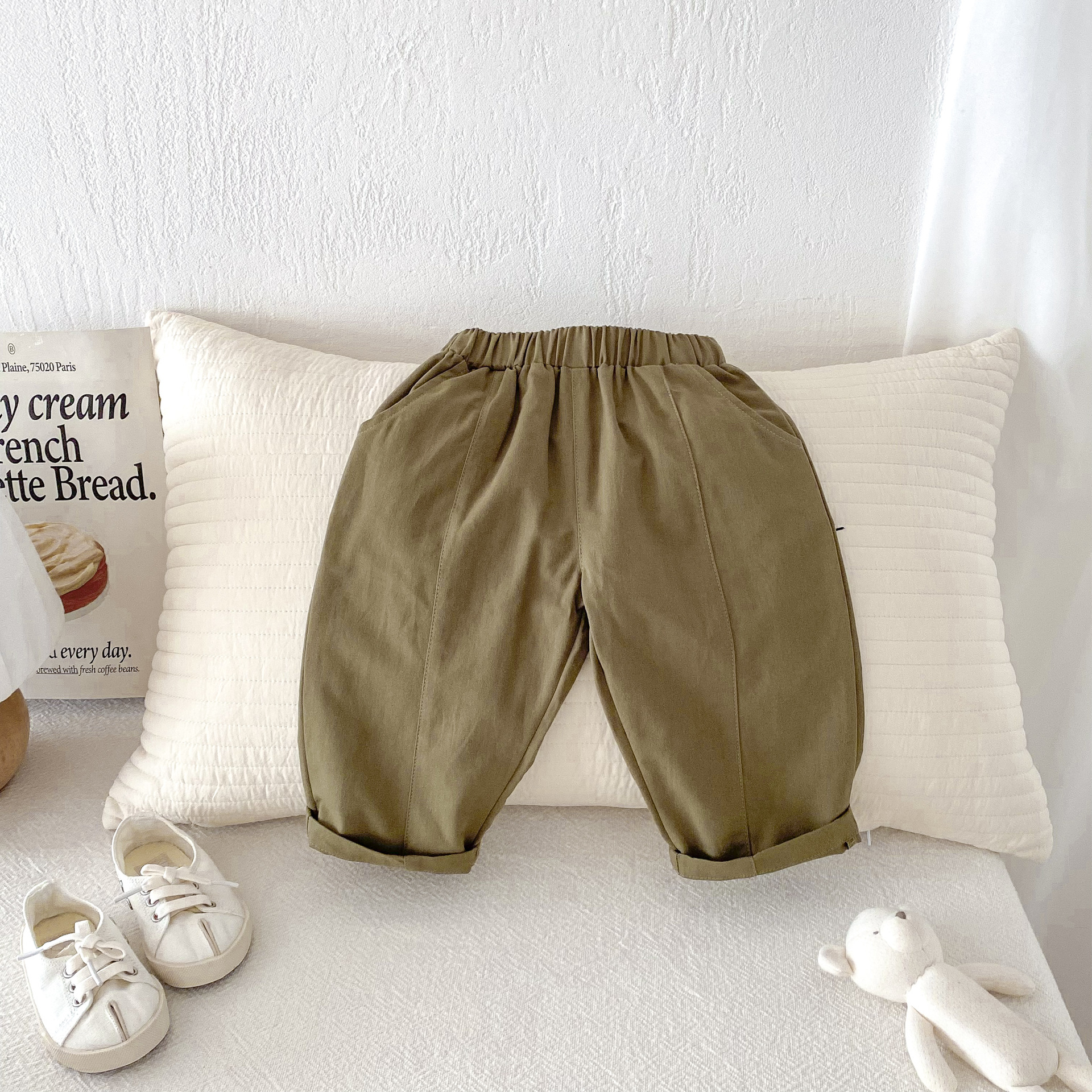 아동복 한국 가을 소년 바지 봄과 가을 새로운 어린이 압착 캐주얼 당근 바지 소녀 짠 바지스토어 가기