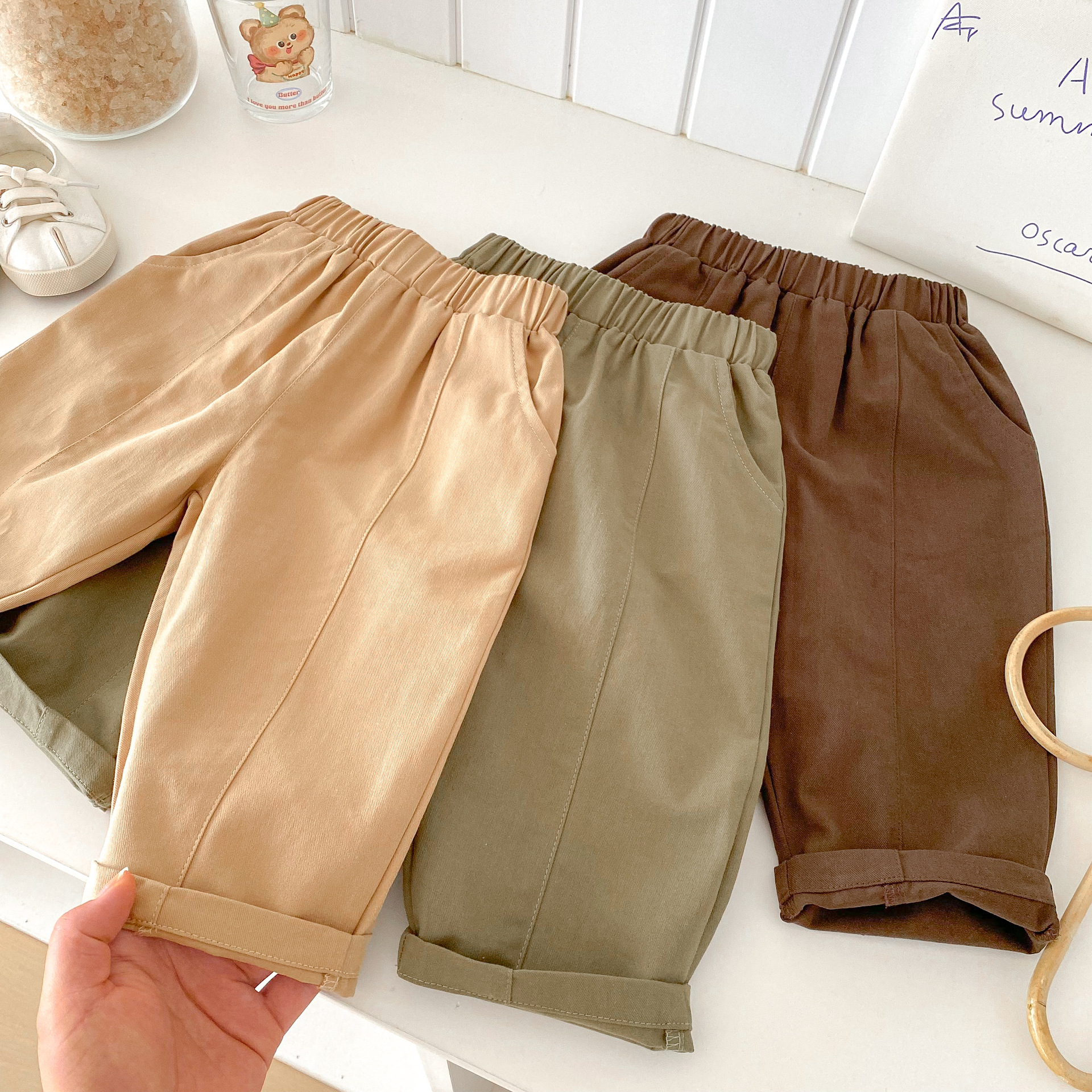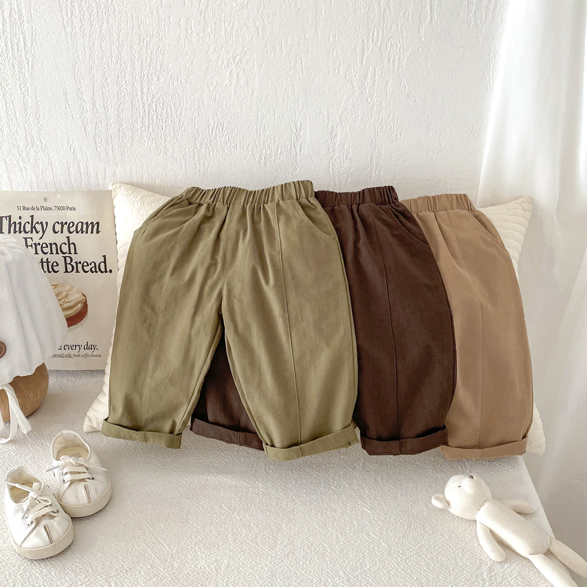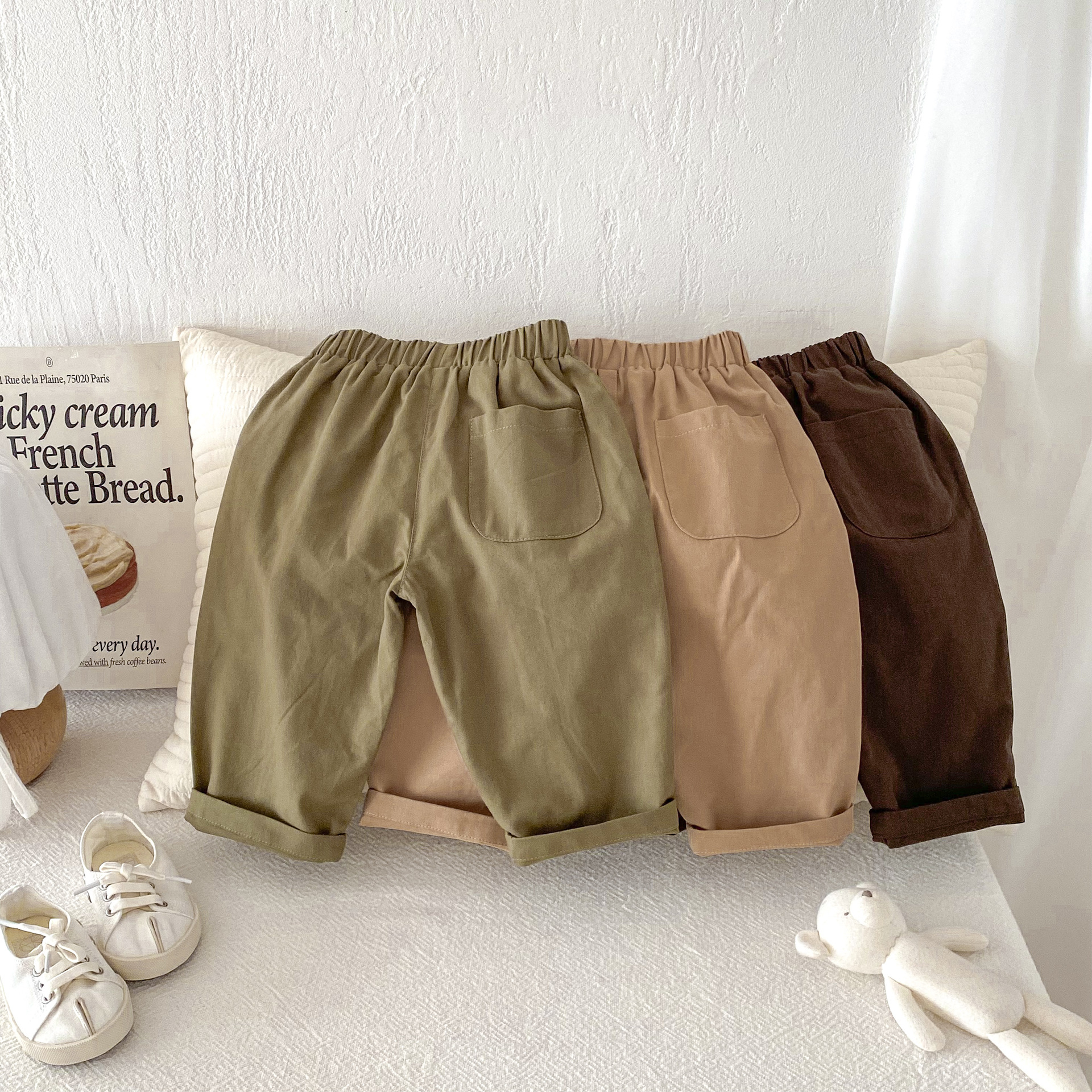 아동복 한국 가을 소년 바지 봄과 가을 새로운 어린이 압착 캐주얼 당근 바지 소녀 짠 바지스토어 가기