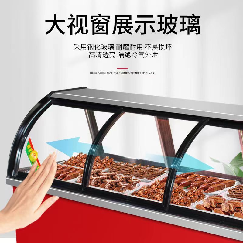 이중 온도 조리 식품 디스플레이 캐비닛, 상업용 슈퍼마켓 오리 목 삶은 고기 보존 캐비닛, 차가운 요리 바베큐 냉장 캐비닛, 유리 냉동고
