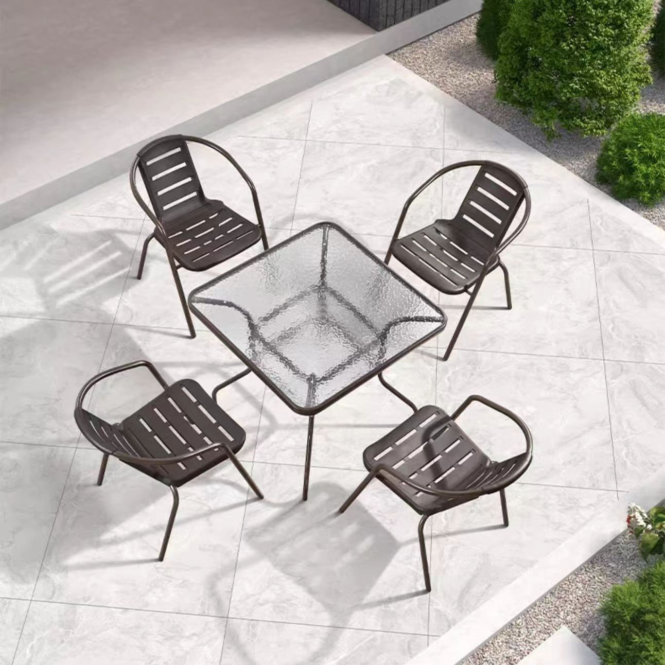야외 테이블과 의자, 발코니 야외 의자, 심플한 거실, 모던한 밀크티 가게, 철제 야외 안뜰 조합, 홈 레저