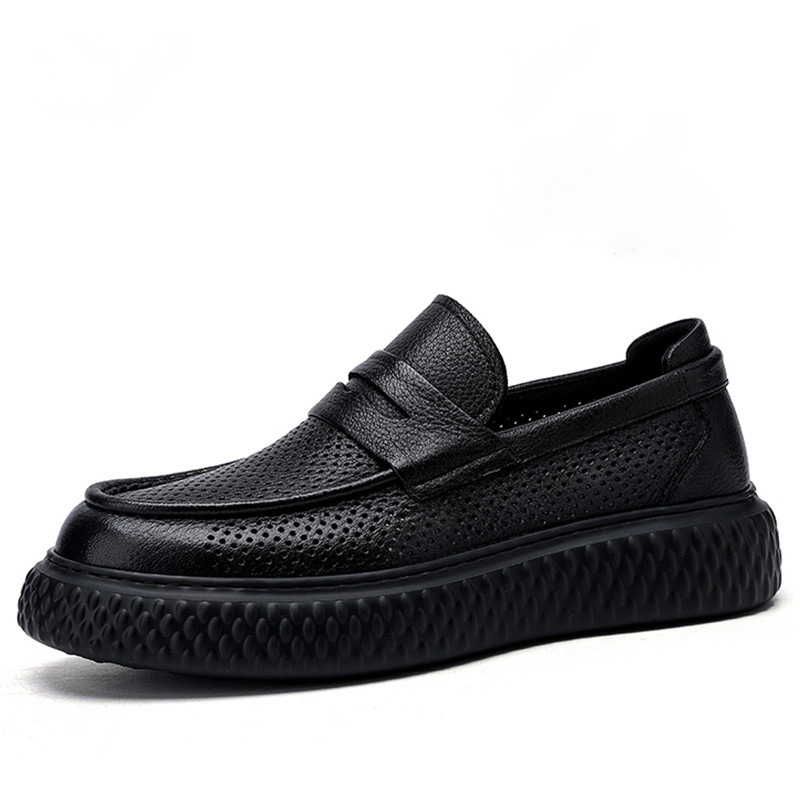 남성 신발 여름 통기성 2025 새로운 스타일 넓은 발과 높이를 증가시키는 영국 비즈니스 정장 남성 캐주얼 대형 가죽 신발 결혼식스토어 가기