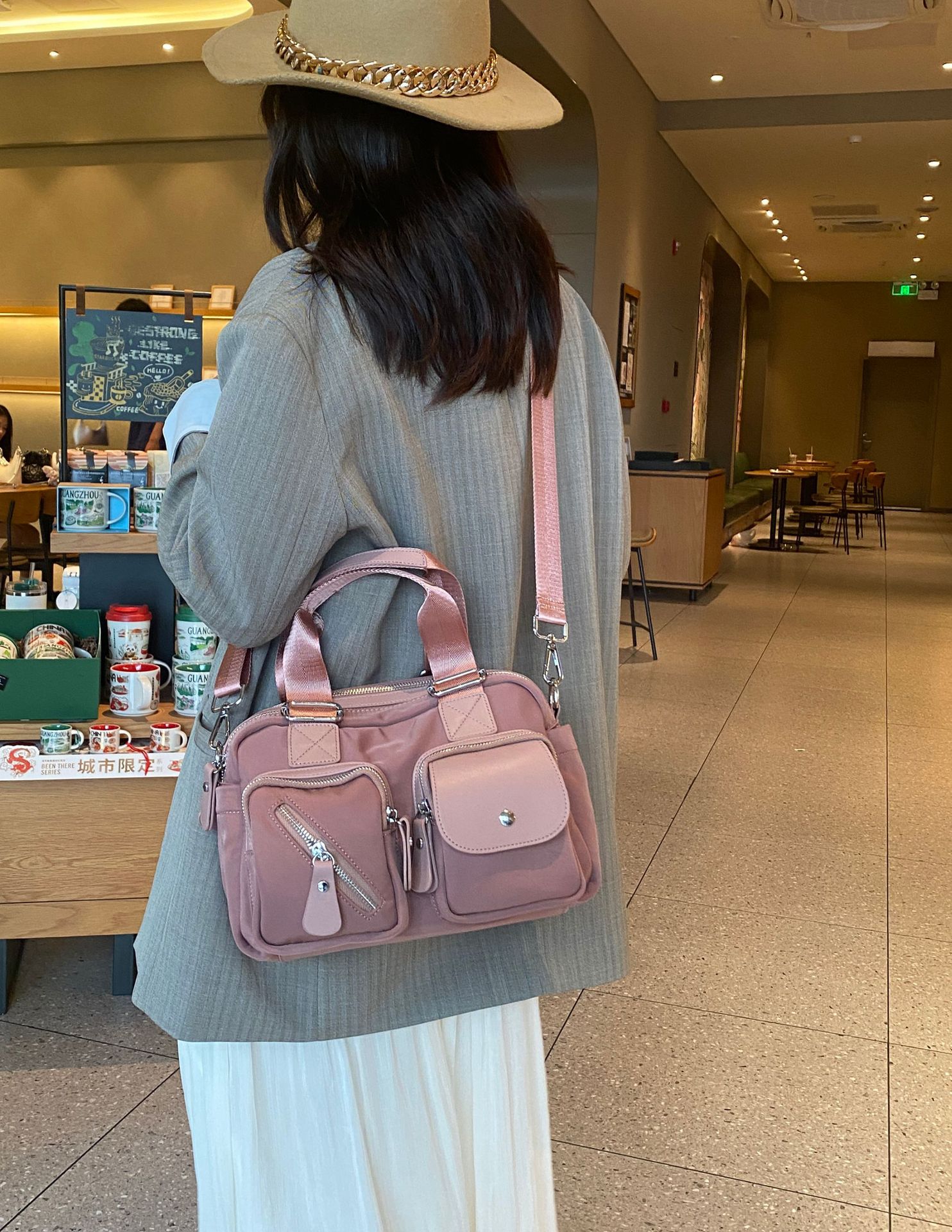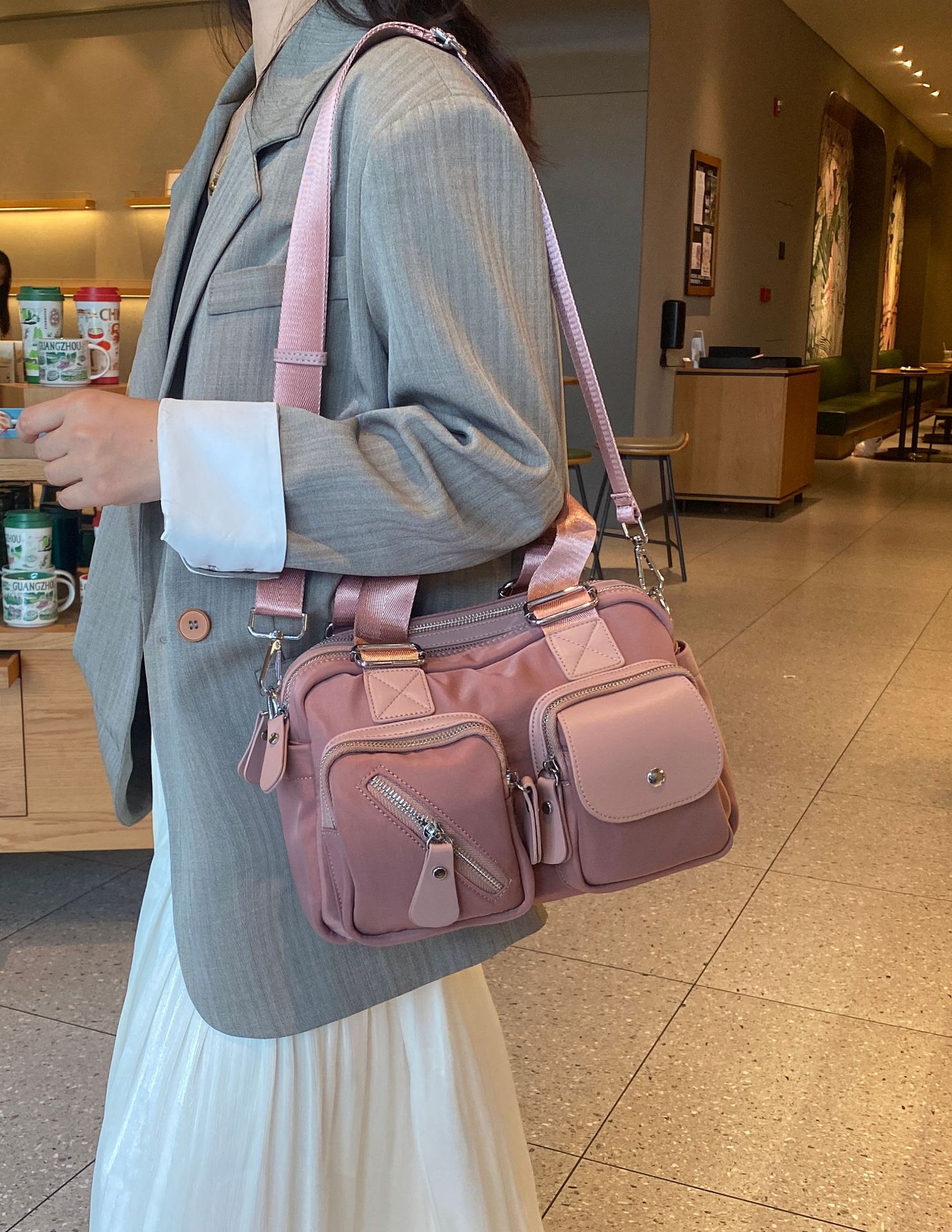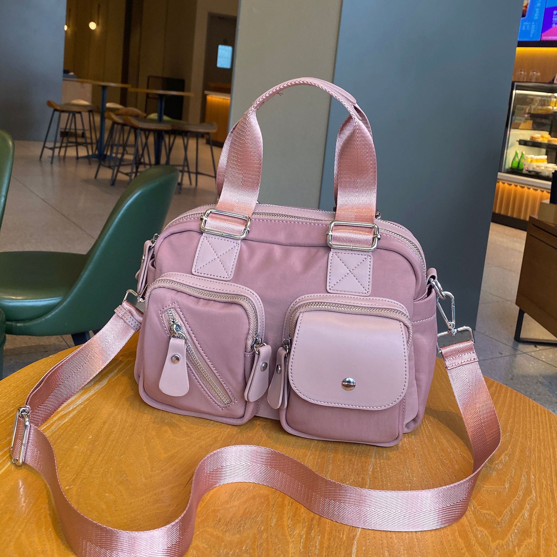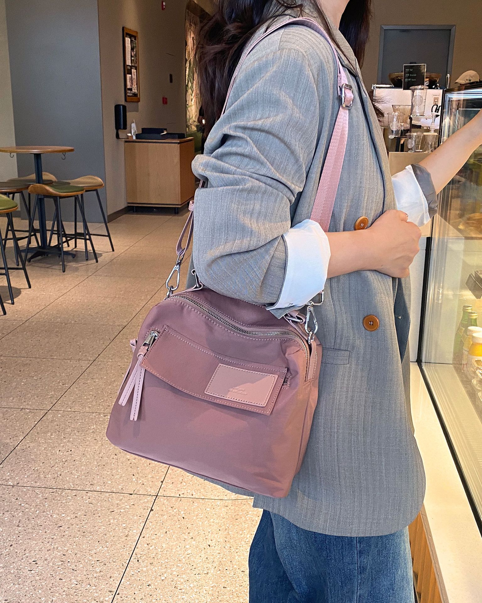 여성을위한 국경 간 다크 핑크 옥스포드 천 가방 2025 새로운 멀티 칸 대용량 숄더 백 캐주얼 통근 크로스 바디 백스토어 가기