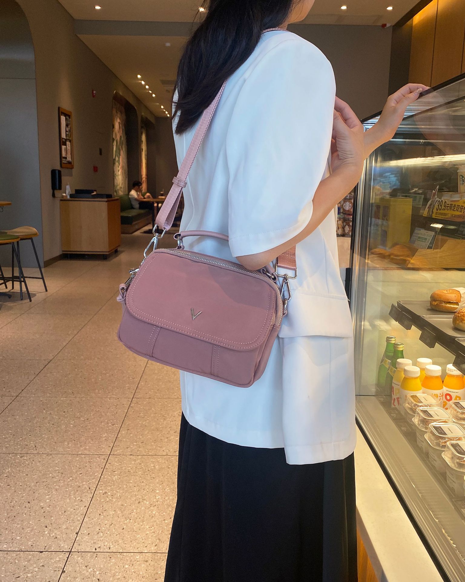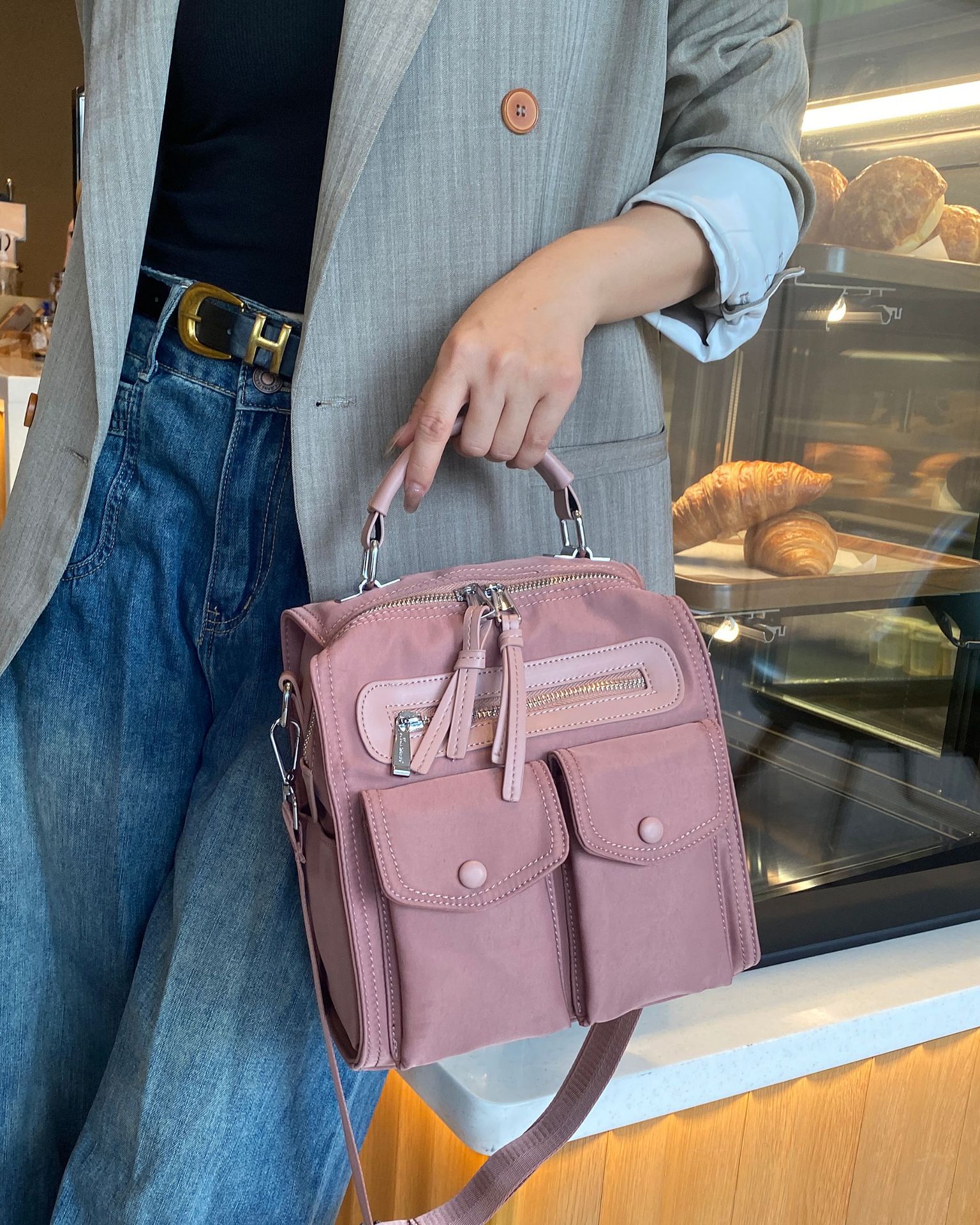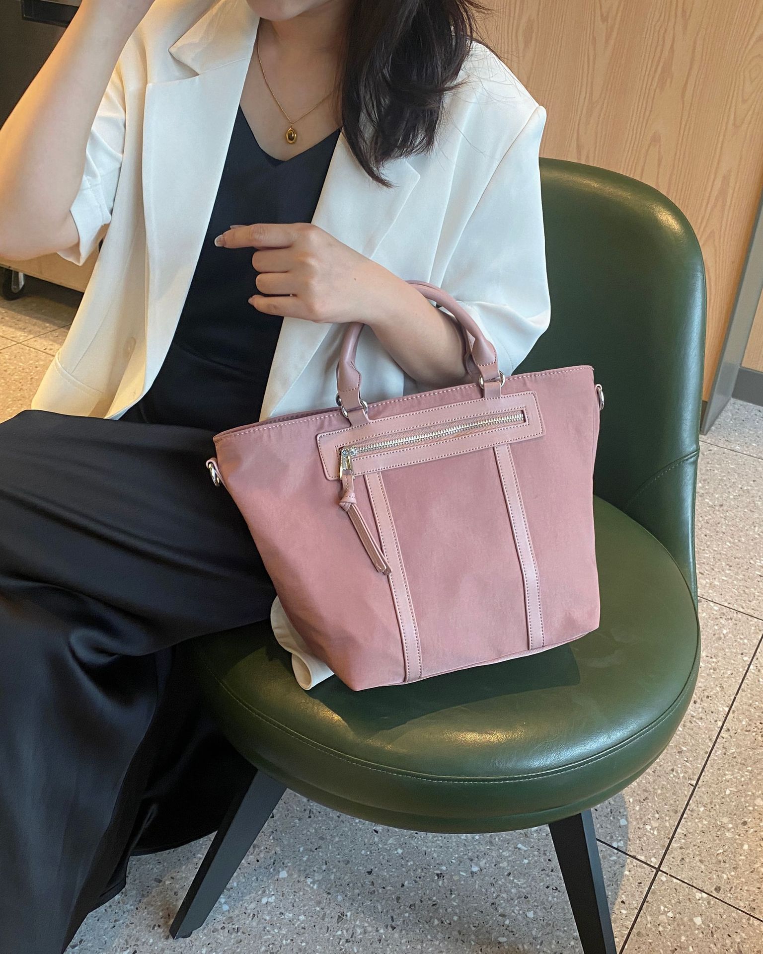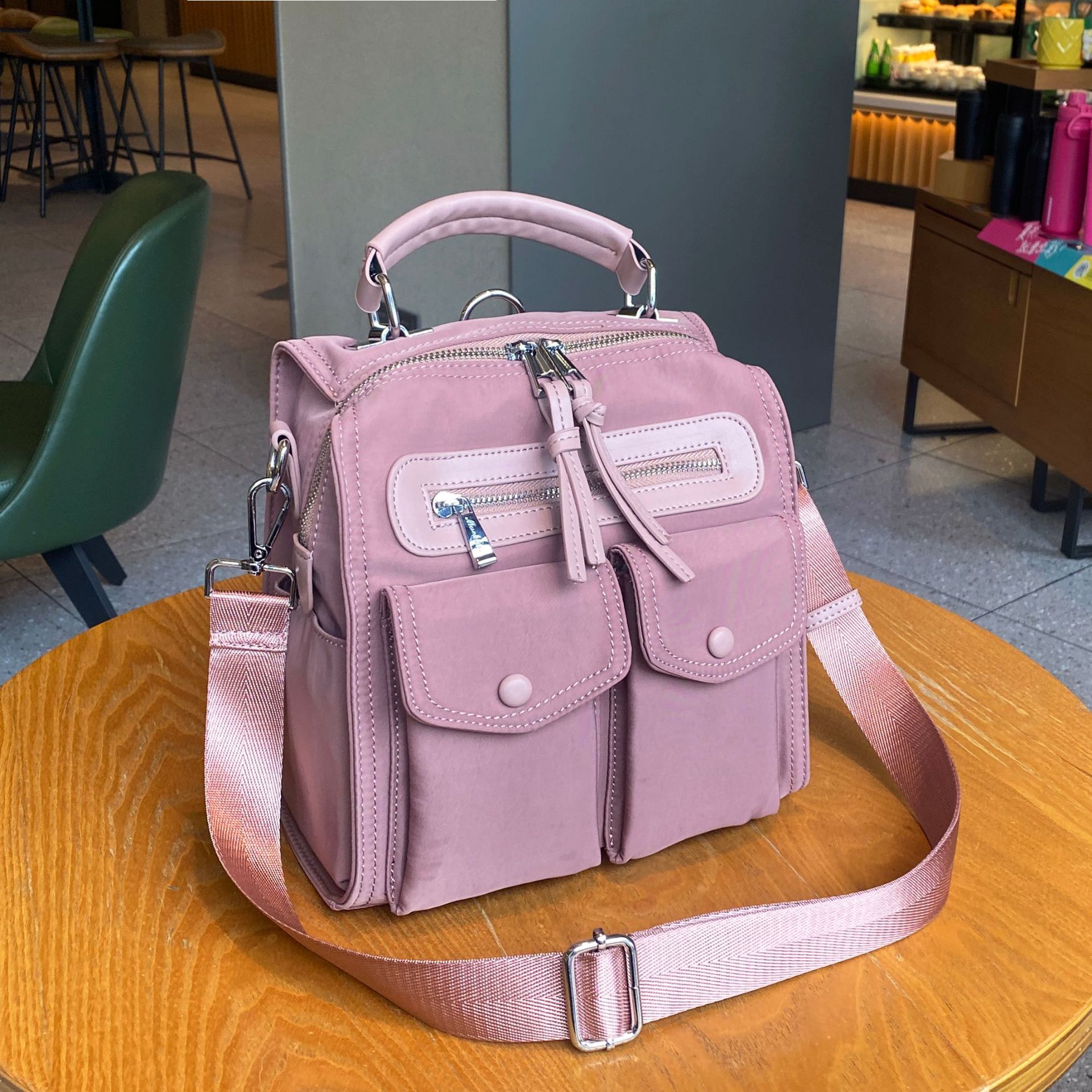 여성을위한 국경 간 다크 핑크 옥스포드 천 가방 2025 새로운 멀티 칸 대용량 숄더 백 캐주얼 통근 크로스 바디 백스토어 가기