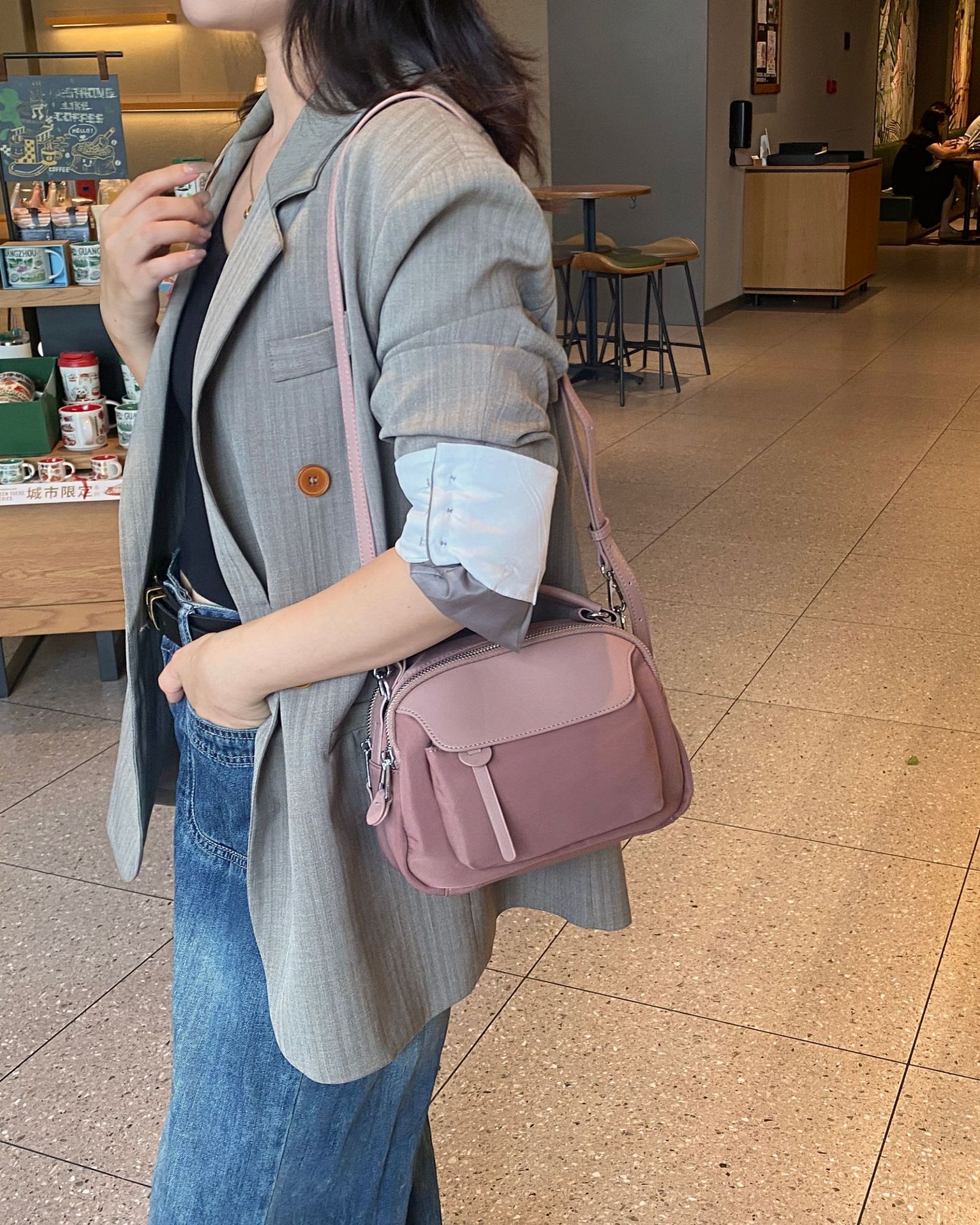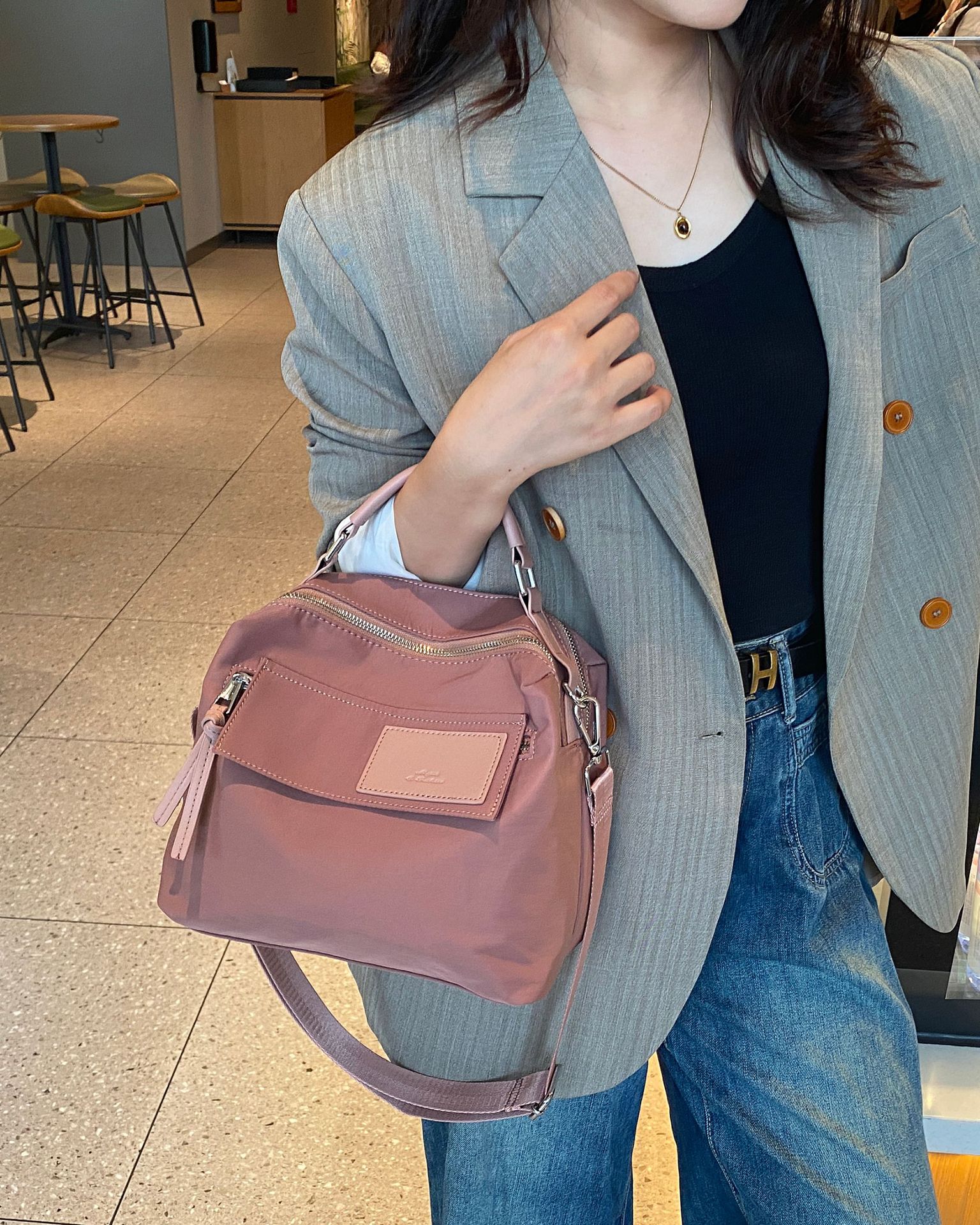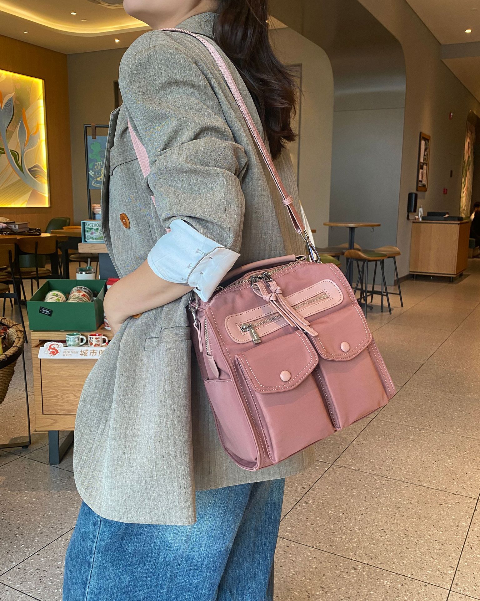 여성을위한 국경 간 다크 핑크 옥스포드 천 가방 2025 새로운 멀티 칸 대용량 숄더 백 캐주얼 통근 크로스 바디 백