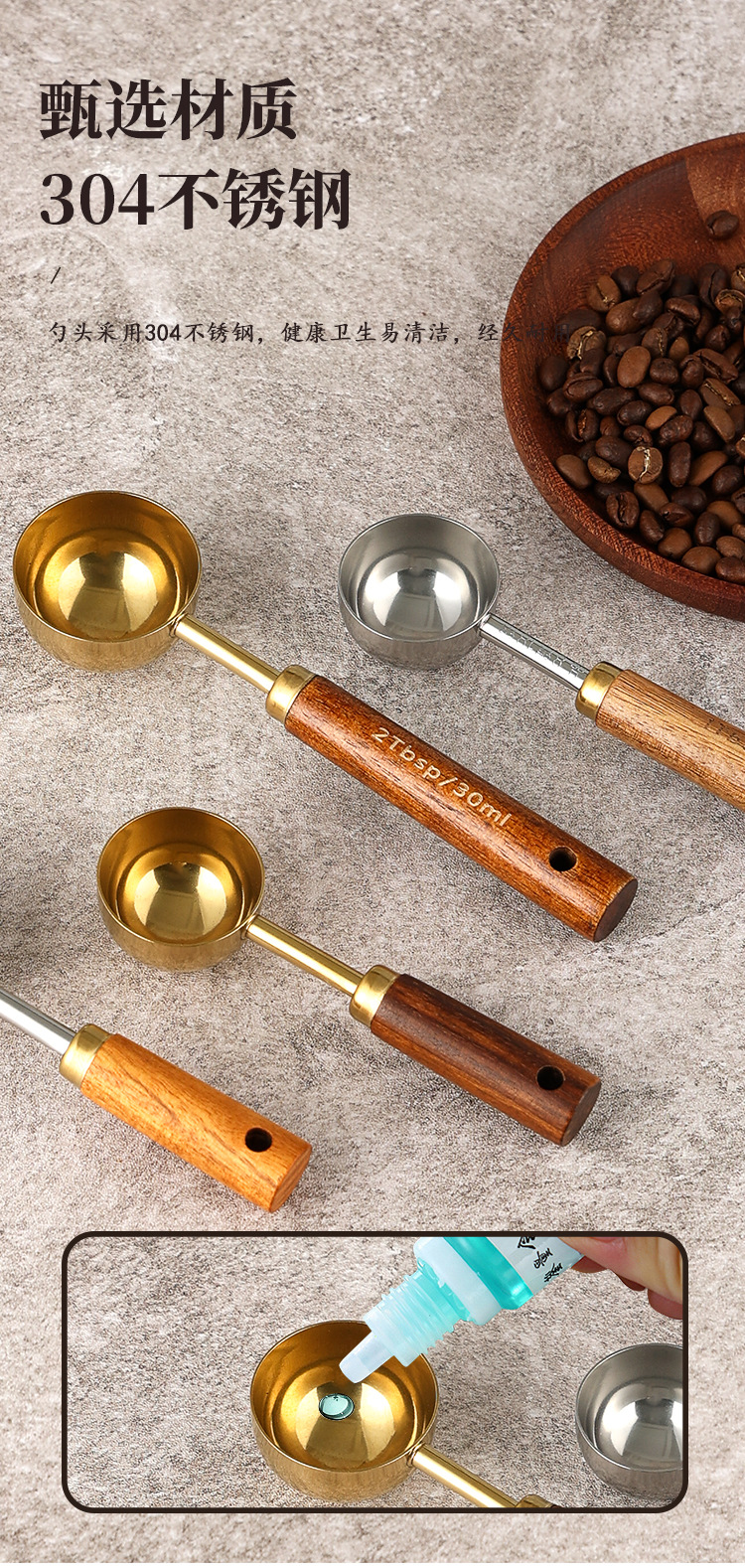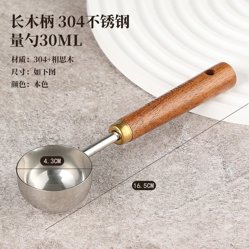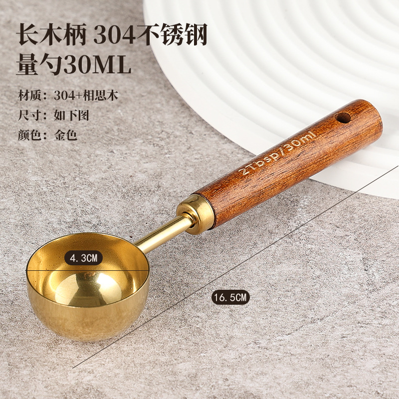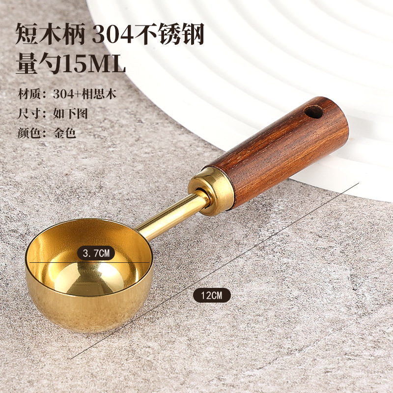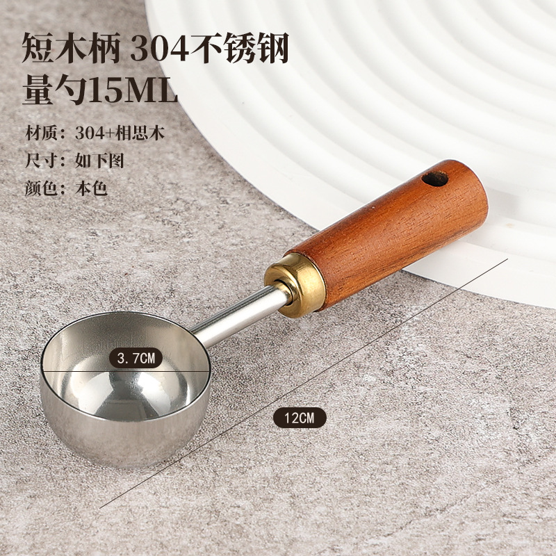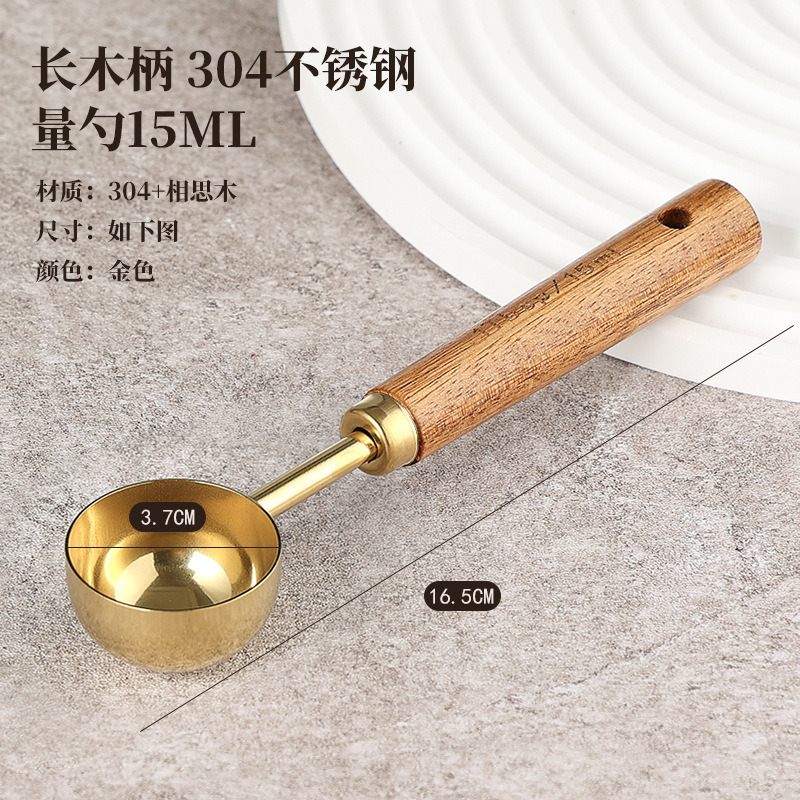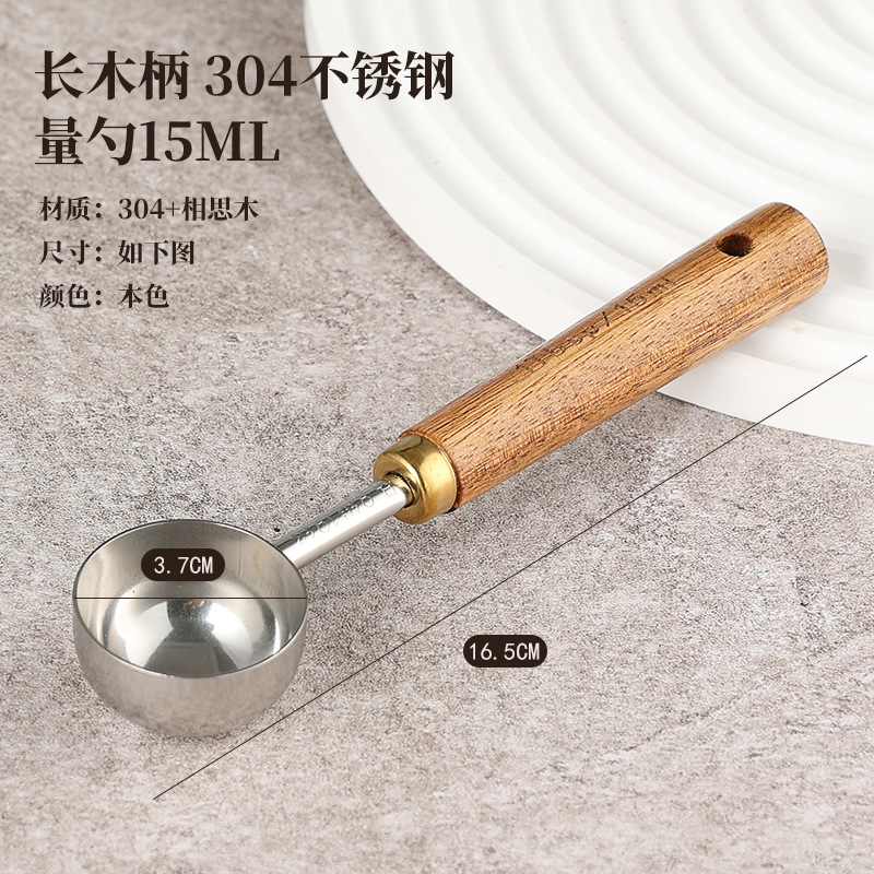 영국산 커피 원두 계량스푼, 긴 나무 손잡이 계량스푼, 304 스테인리스 스틸 스푼, 15g 계량스푼, 베이킹용 고급스러운 스푼
