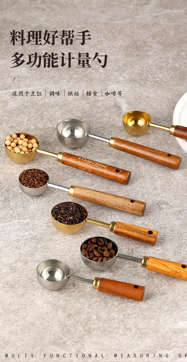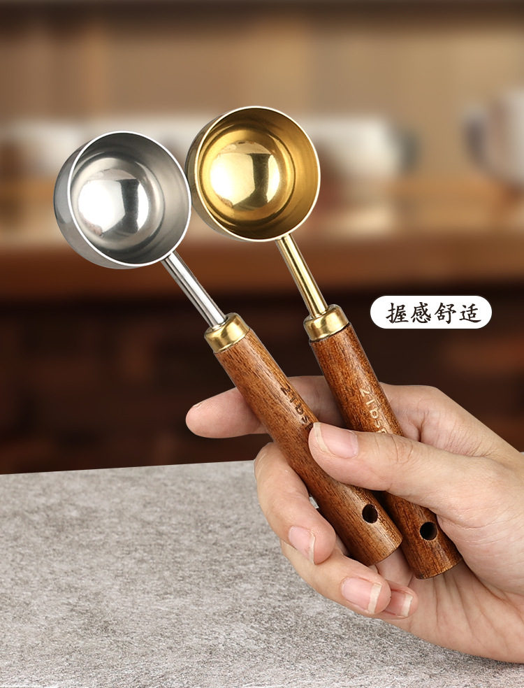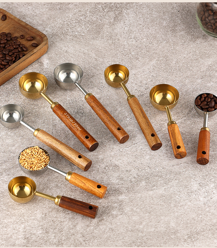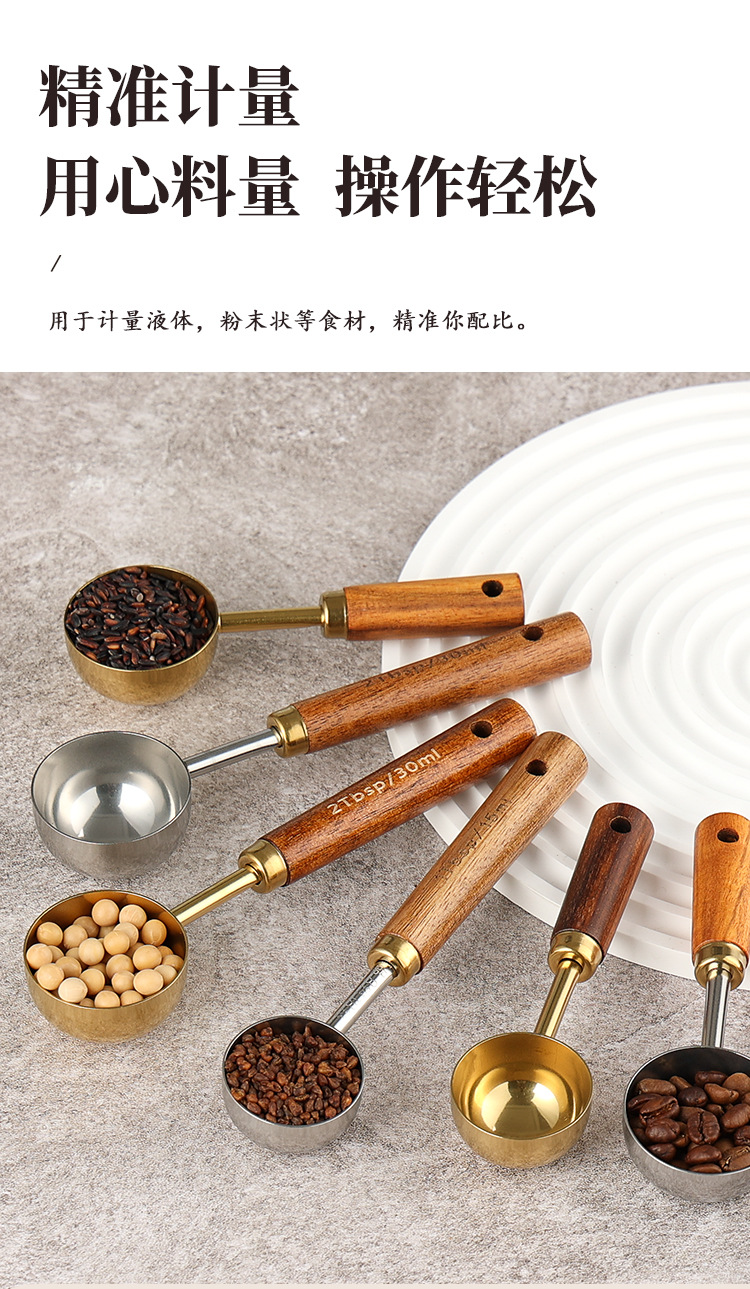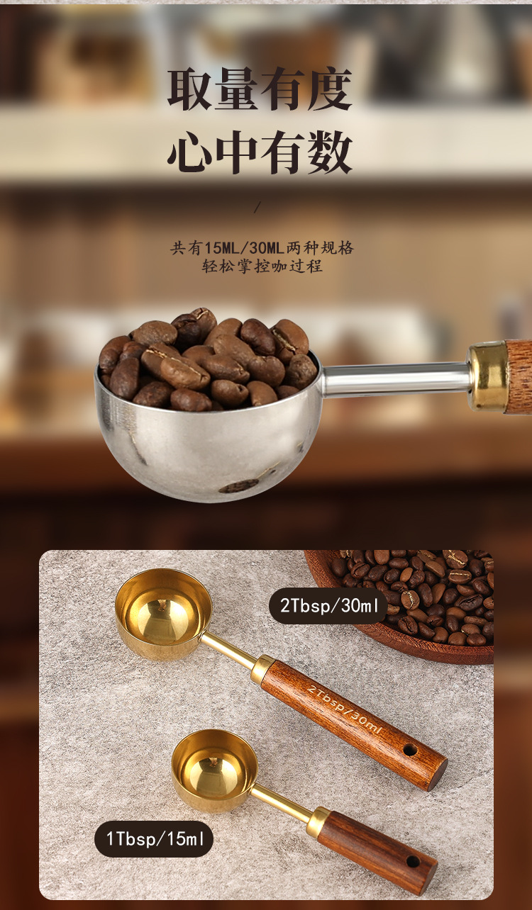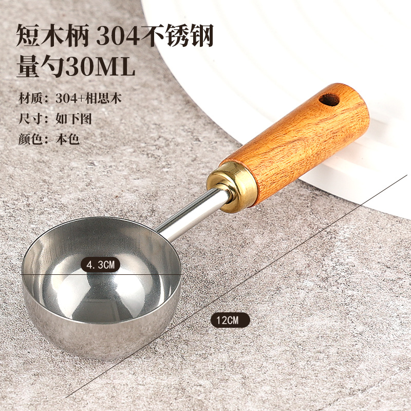 영국산 커피 원두 계량스푼, 긴 나무 손잡이 계량스푼, 304 스테인리스 스틸 스푼, 15g 계량스푼, 베이킹용 고급스러운 스푼