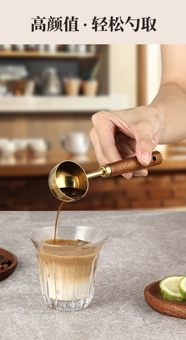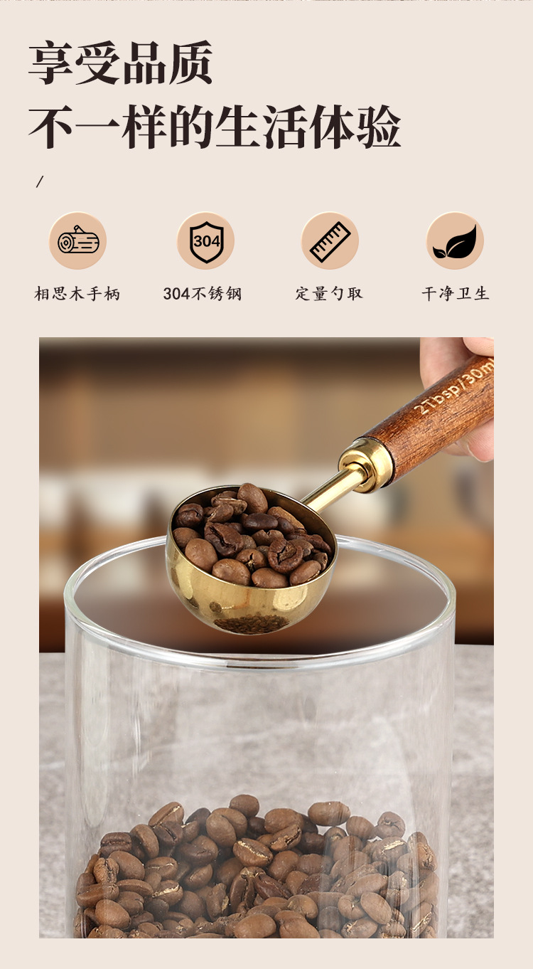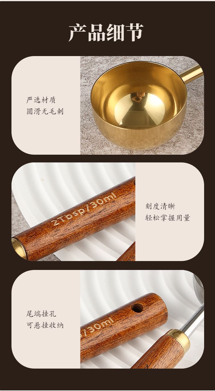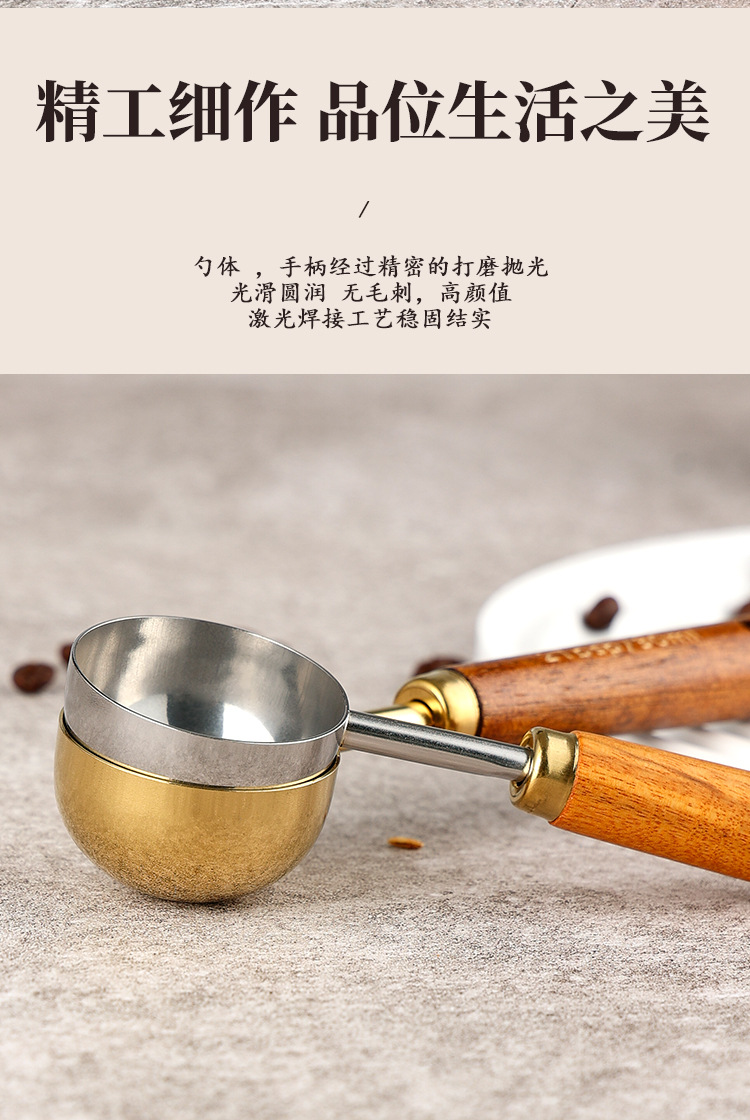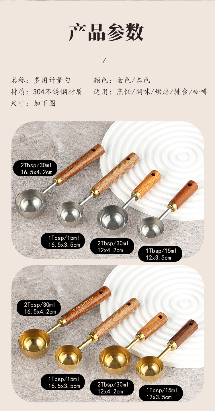 영국산 커피 원두 계량스푼, 긴 나무 손잡이 계량스푼, 304 스테인리스 스틸 스푼, 15g 계량스푼, 베이킹용 고급스러운 스푼