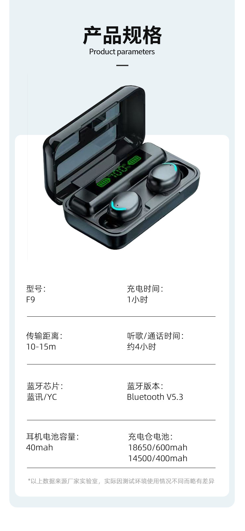 공장 도매 F9 긴 내구성 블루투스 헤드셋 이어폰 형 투명 소음 감소 진정한 무선 미니 스포츠 무선 헤드셋스토어 가기