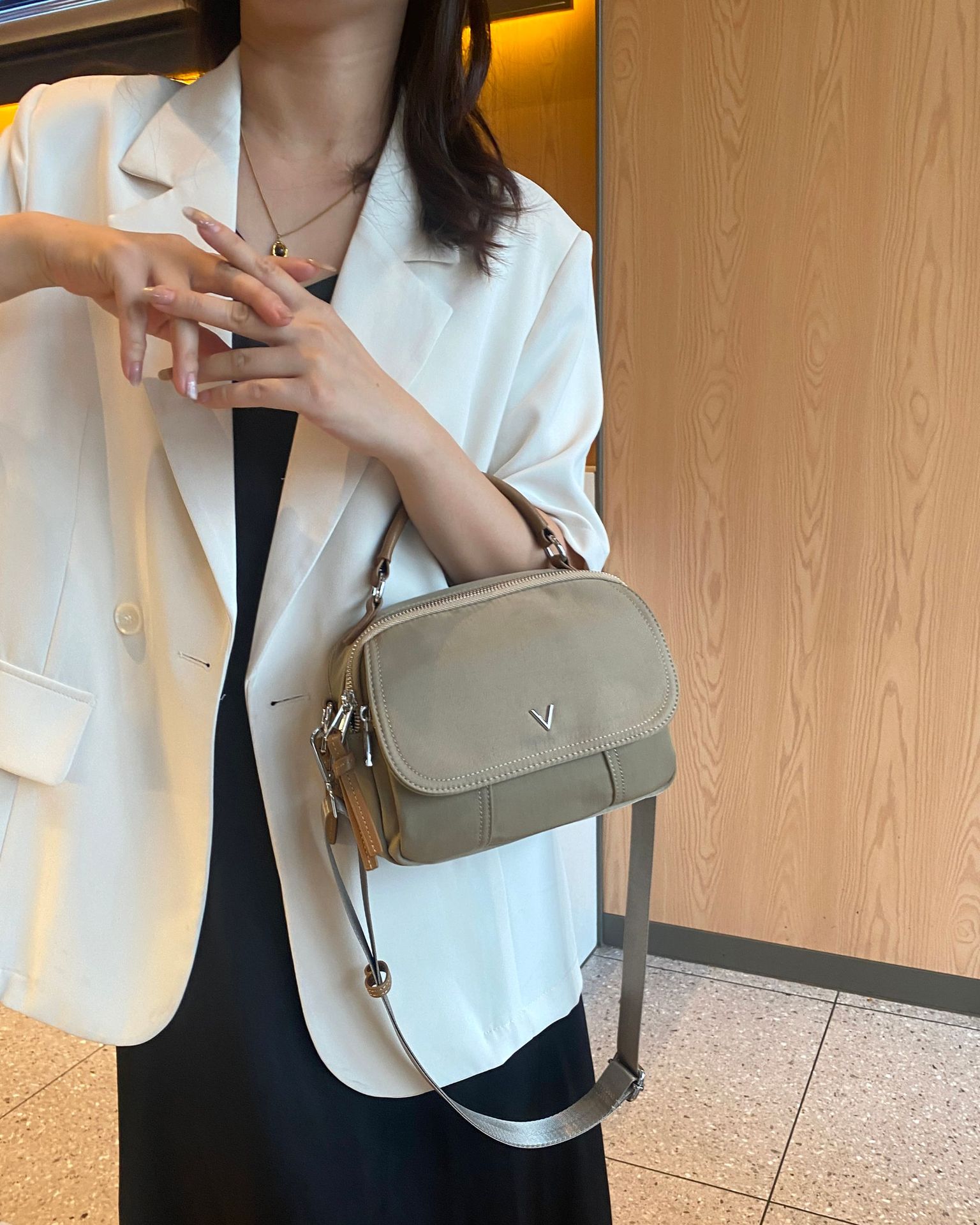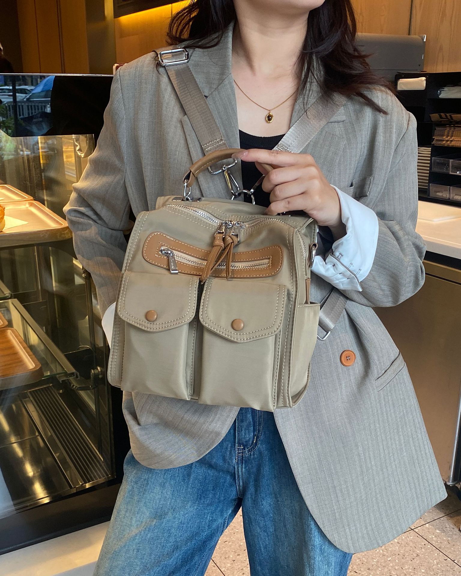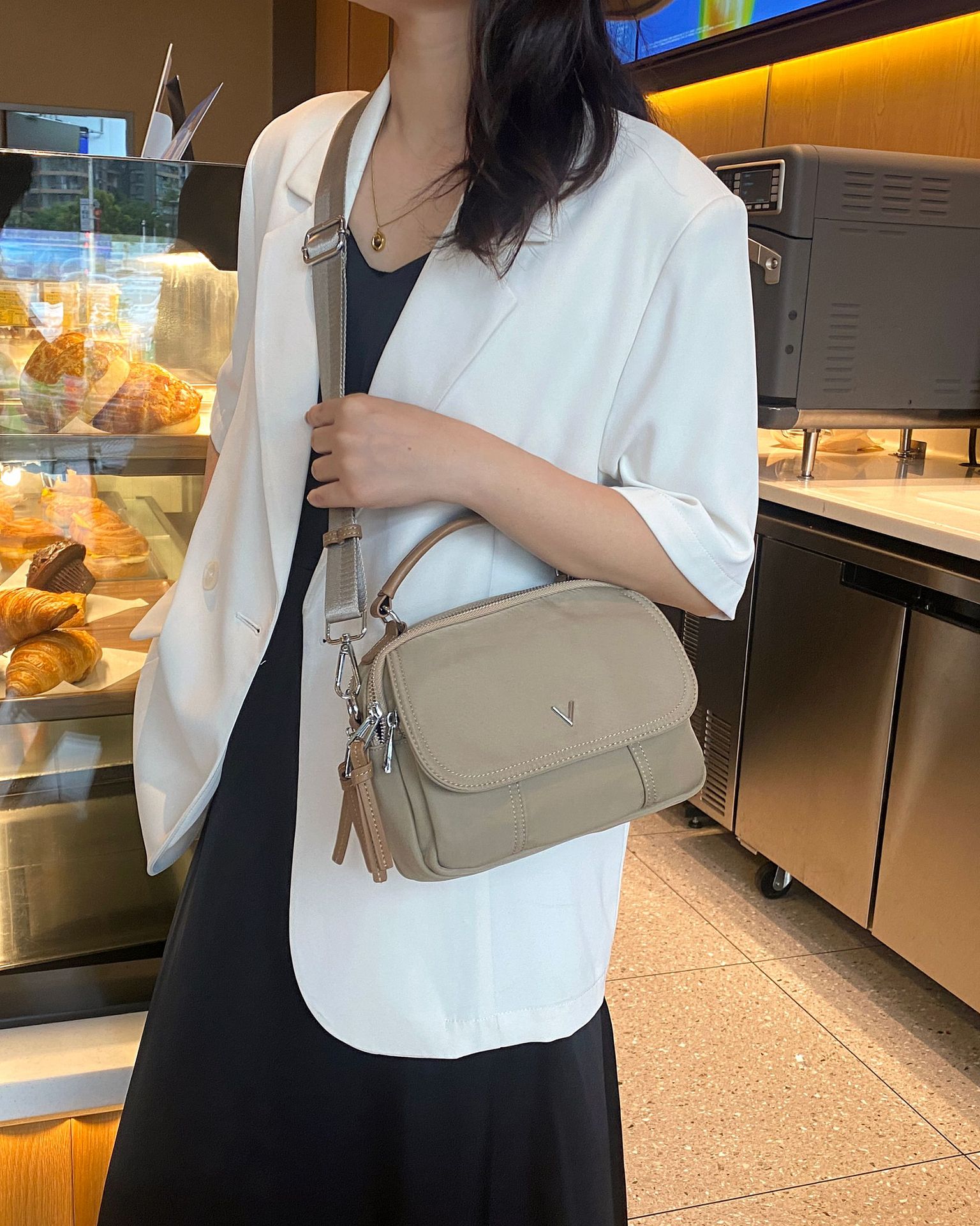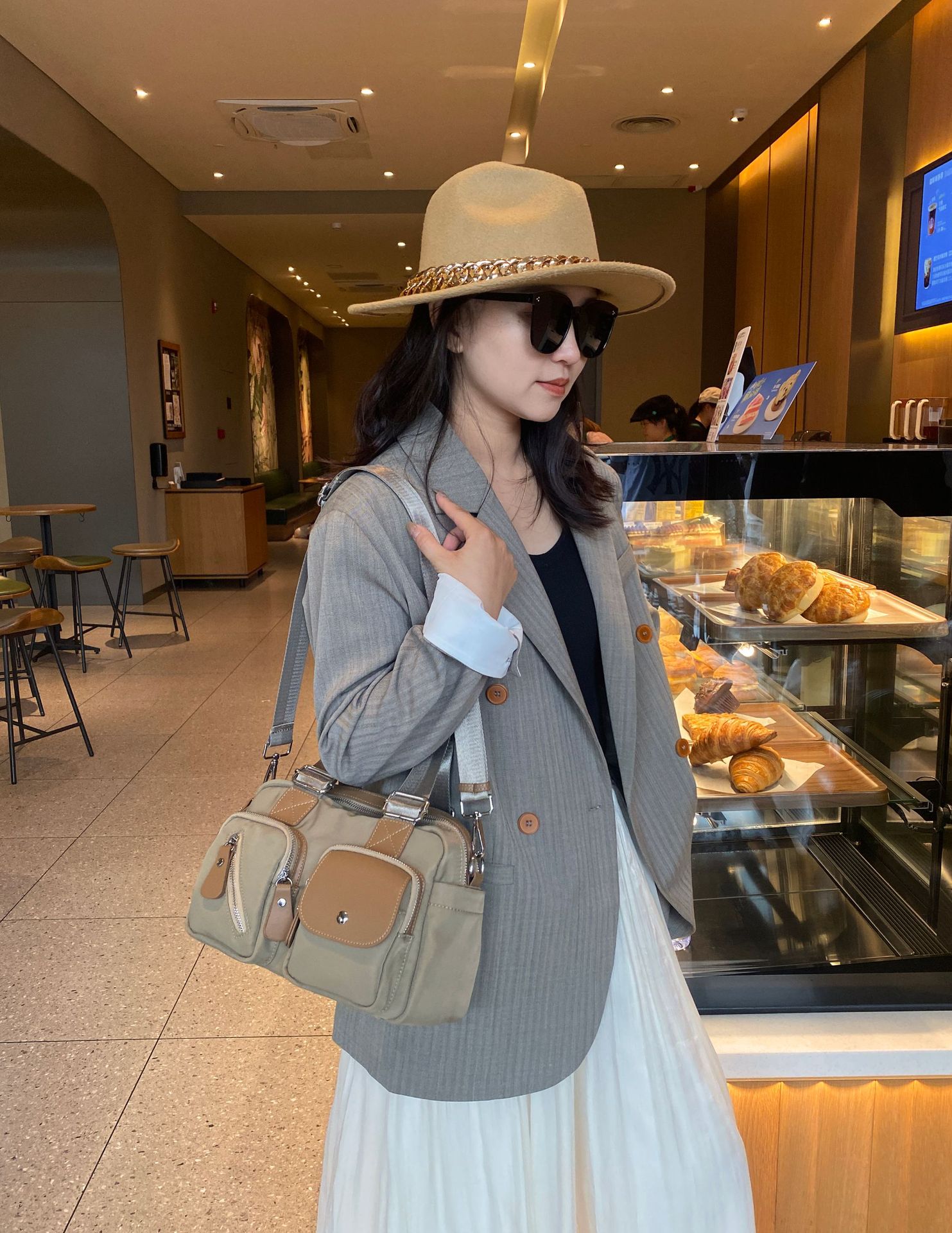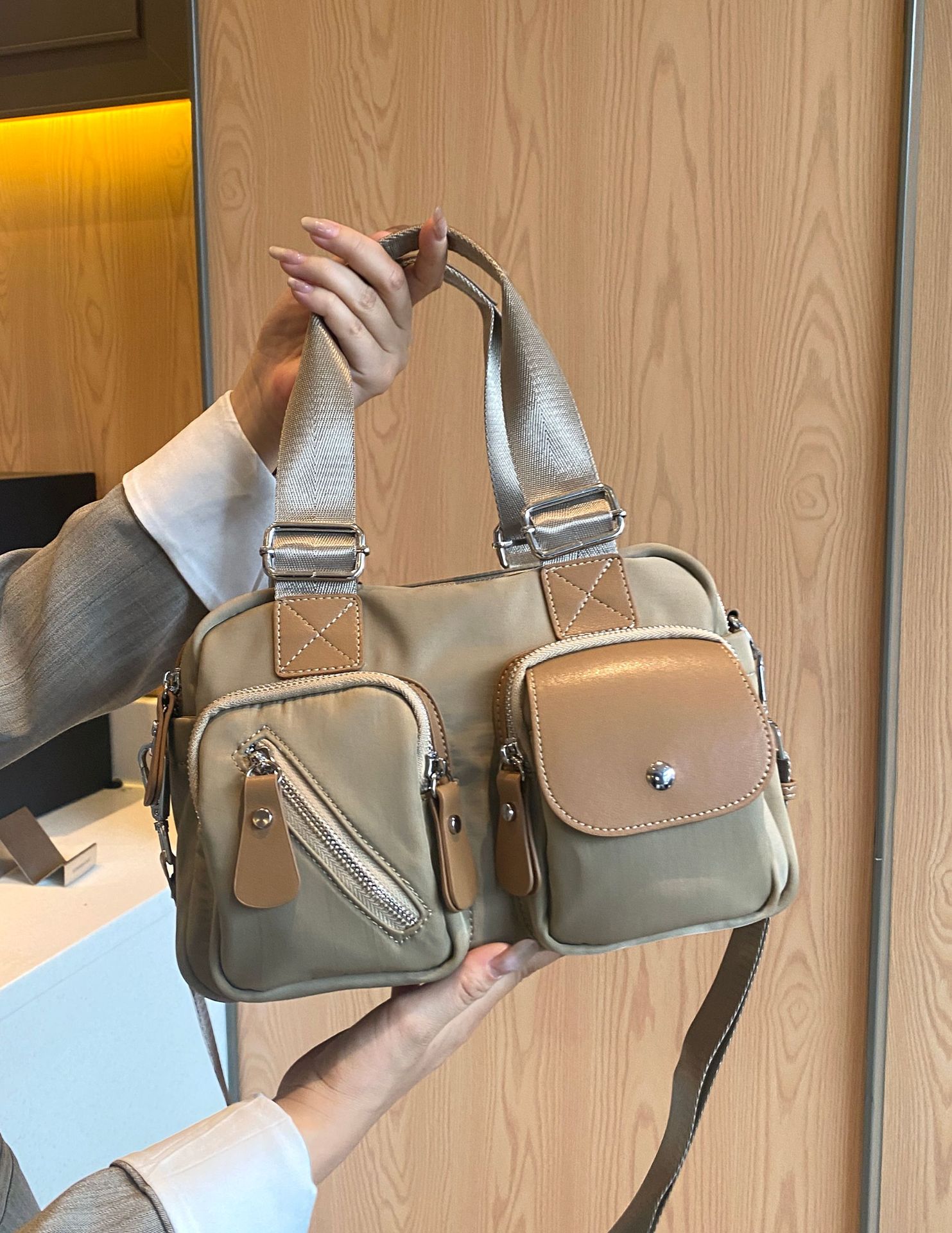 여성을위한 크로스 보더 카키 옥스포드 천 가방 2025 새로운 멀티 칸 대용량 숄더 백 캐주얼 통근 크로스 바디 백