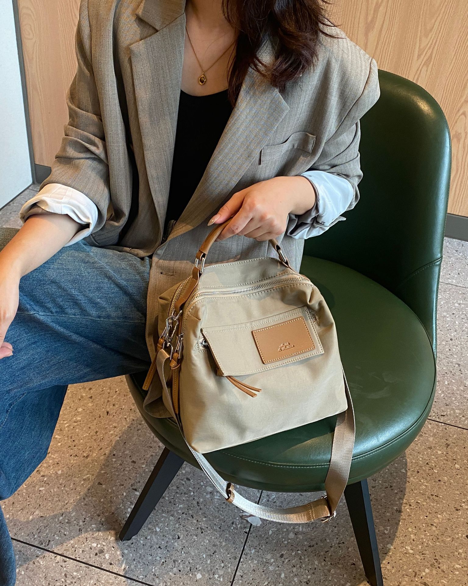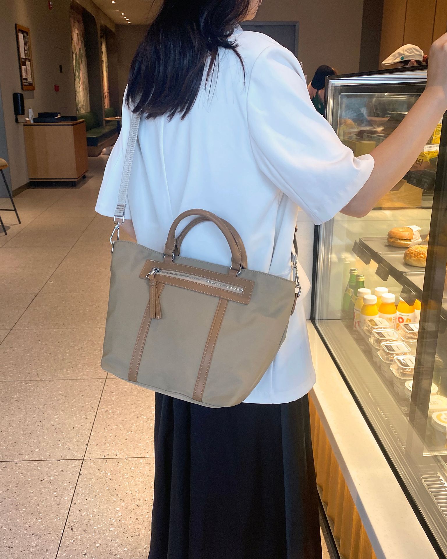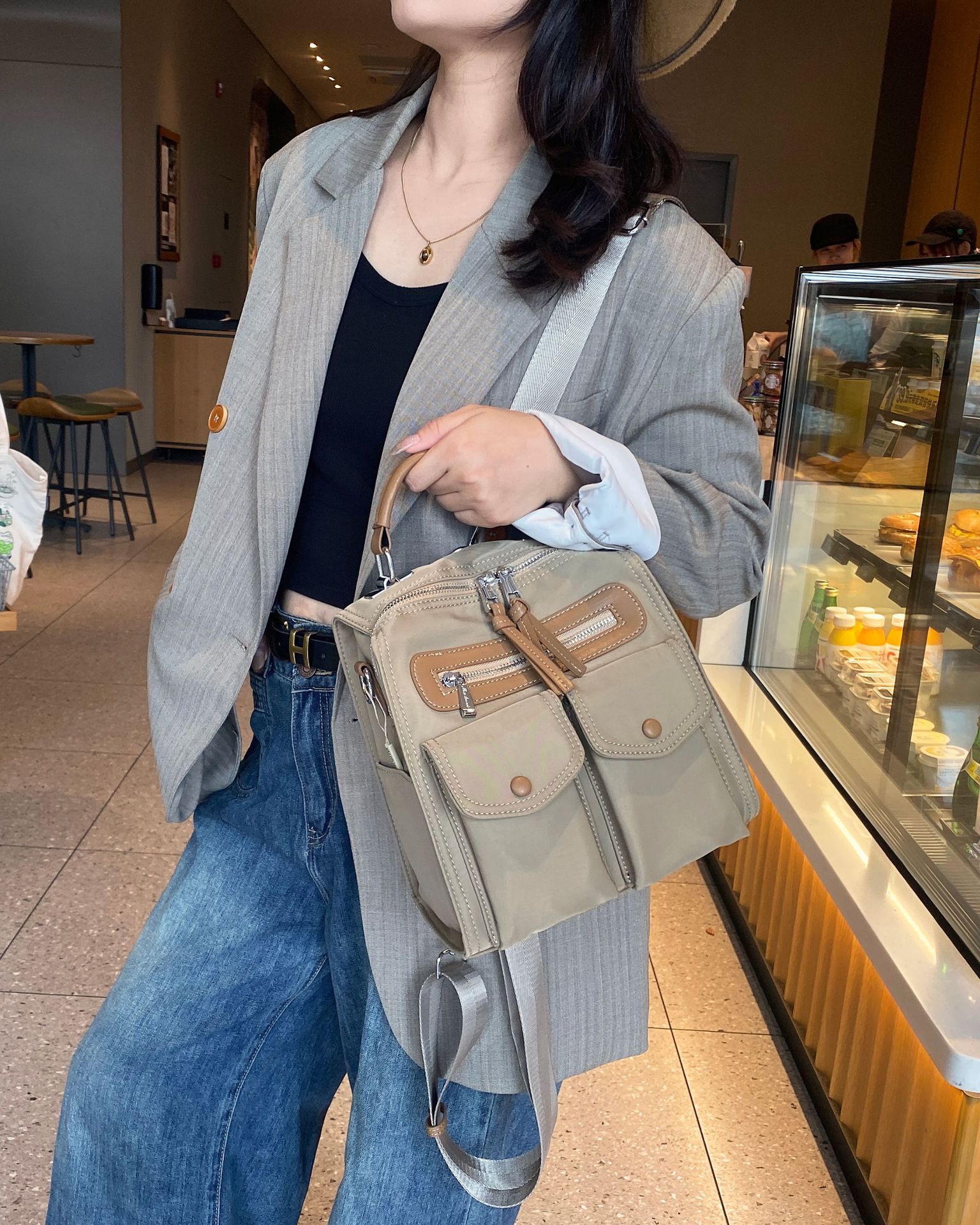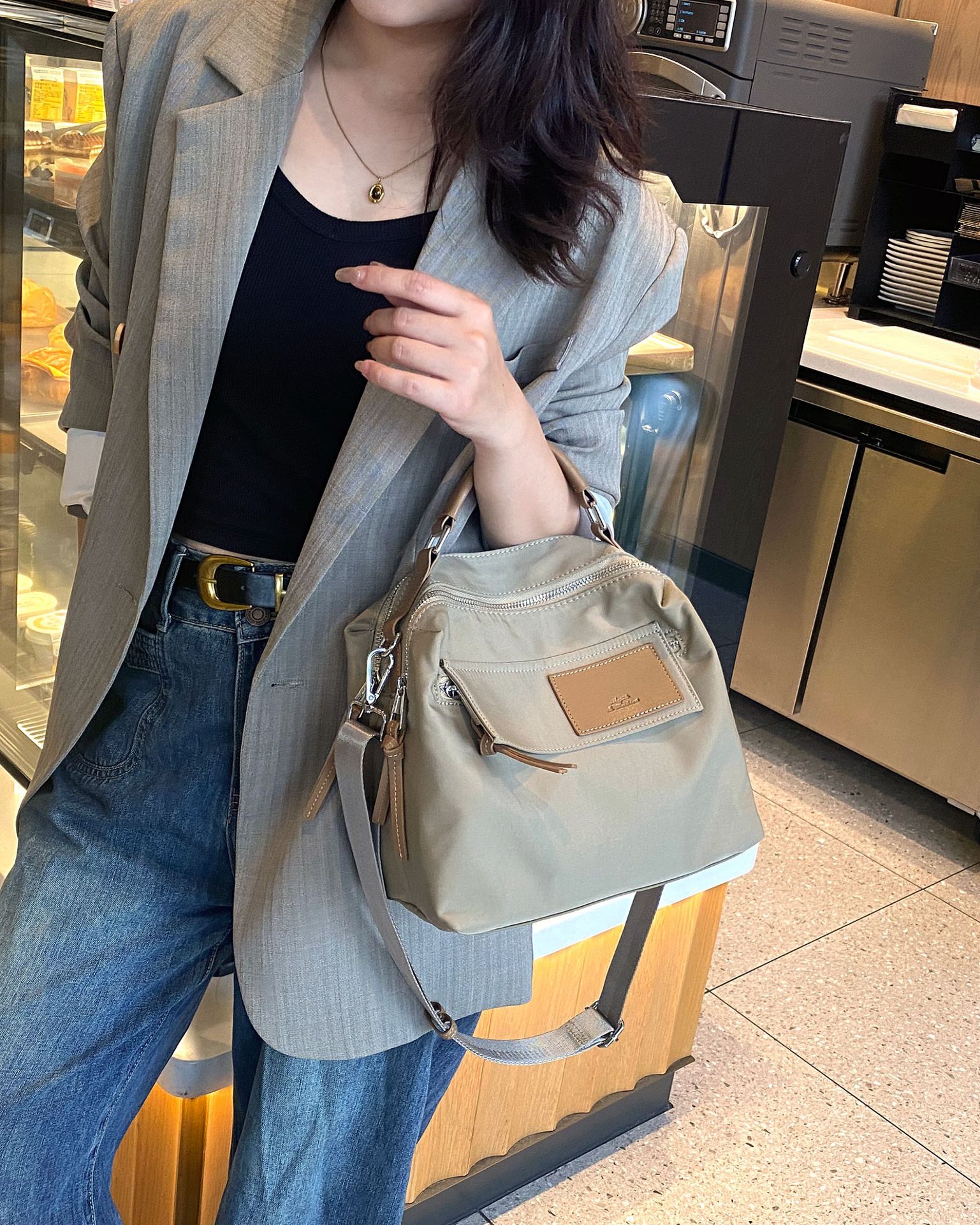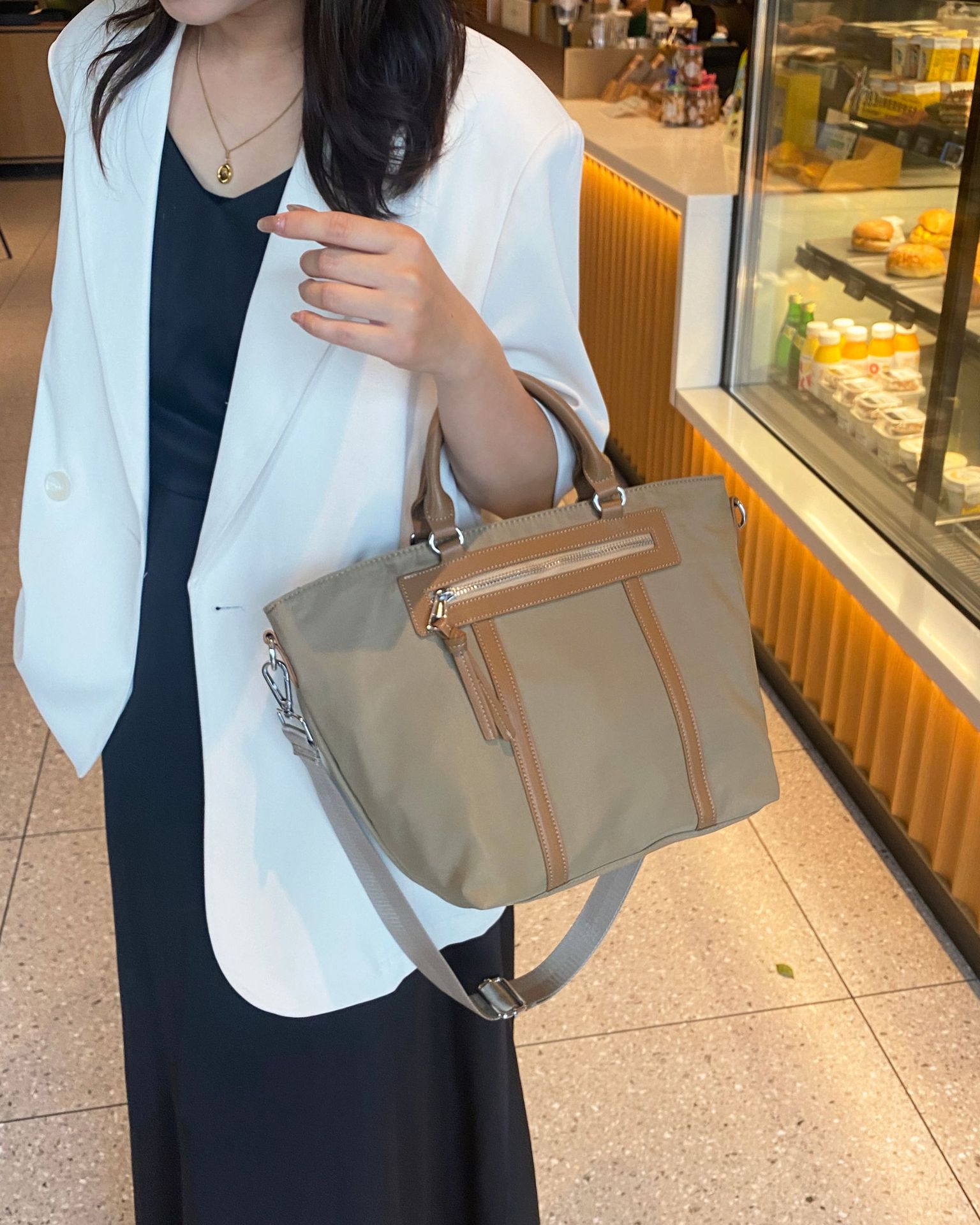 여성을위한 크로스 보더 카키 옥스포드 천 가방 2025 새로운 멀티 칸 대용량 숄더 백 캐주얼 통근 크로스 바디 백스토어 가기