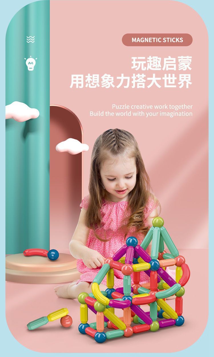 남성과 여성을 위한 대형 다양한 자석 막대, 지능형 장난감, 어린이 빌딩 블록 조립, 교육 조기 교육스토어 가기