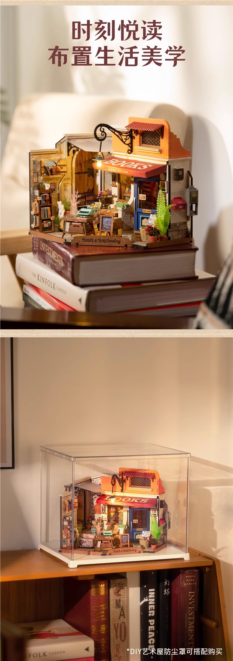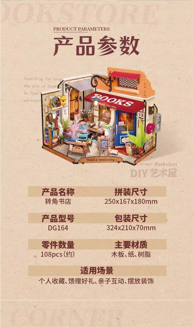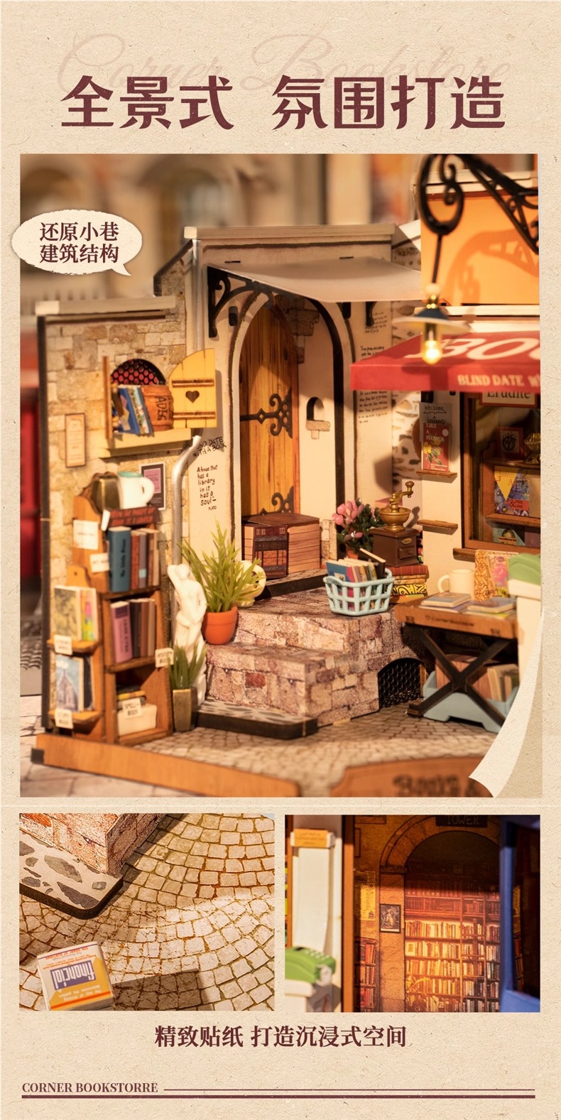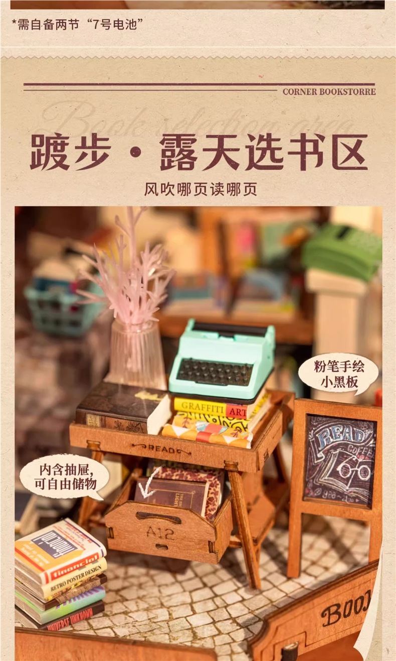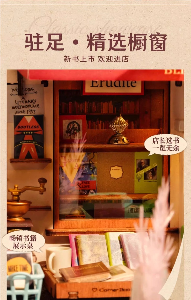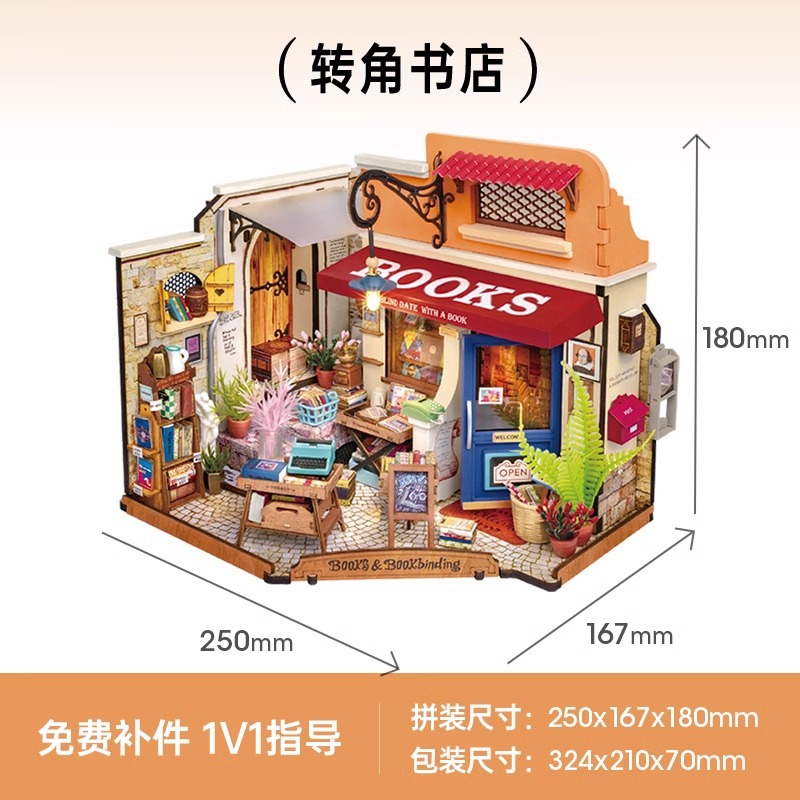Diy 수제 오두막 코너 서점 조립 빌딩 블록 장난감 소형 장면 작은 집 모델 여성을위한 선물