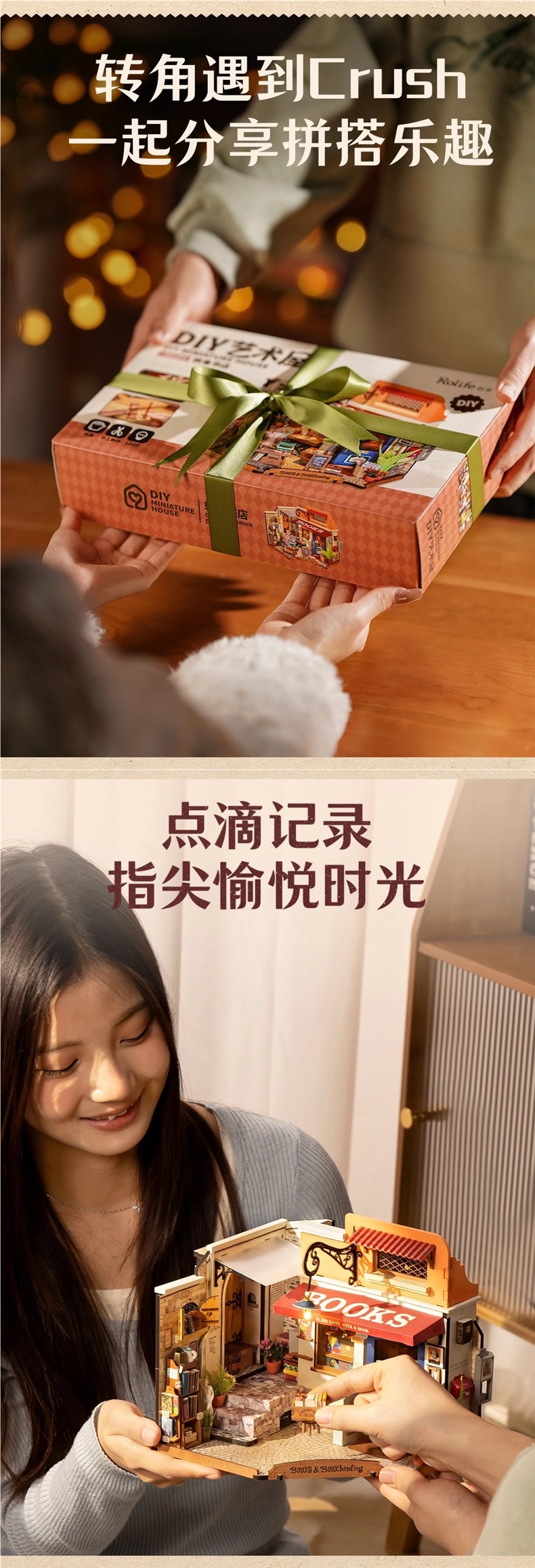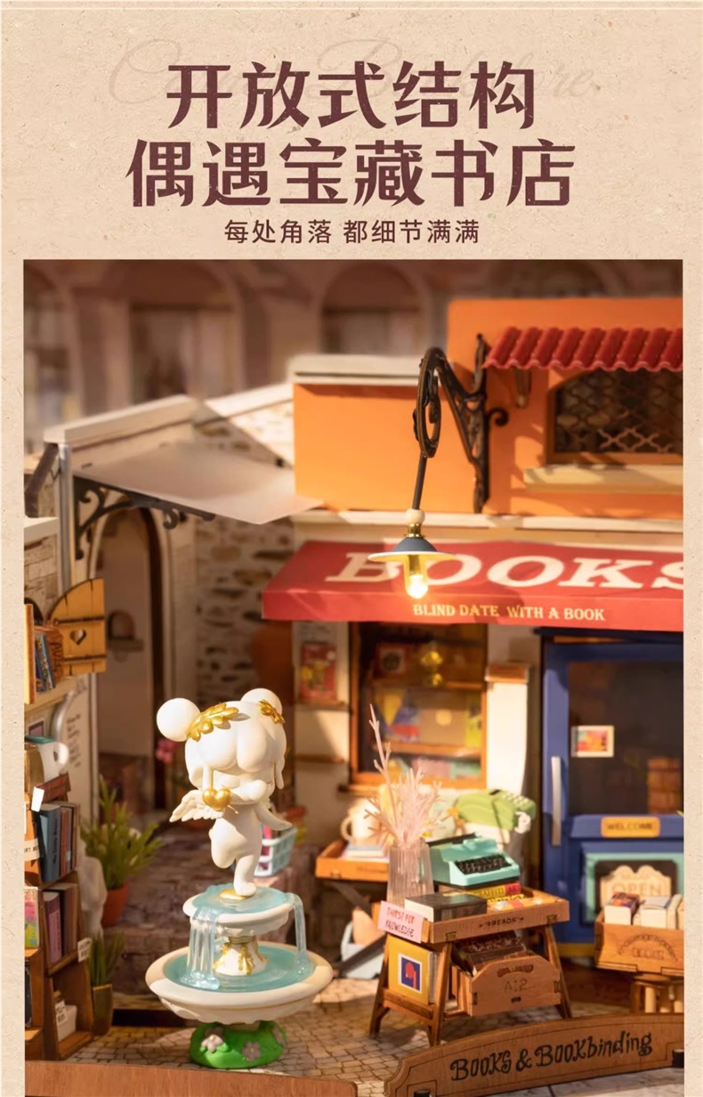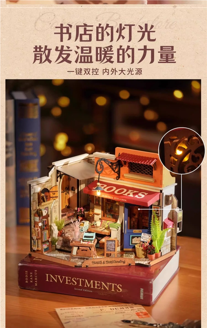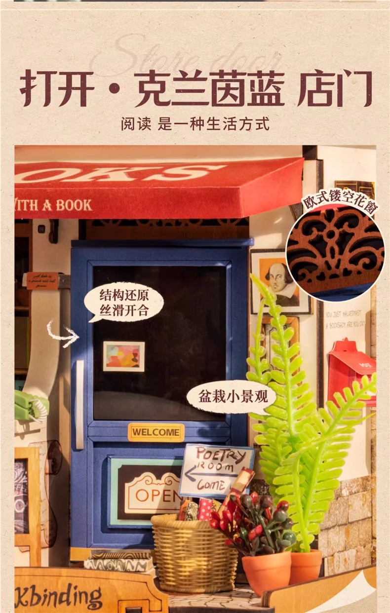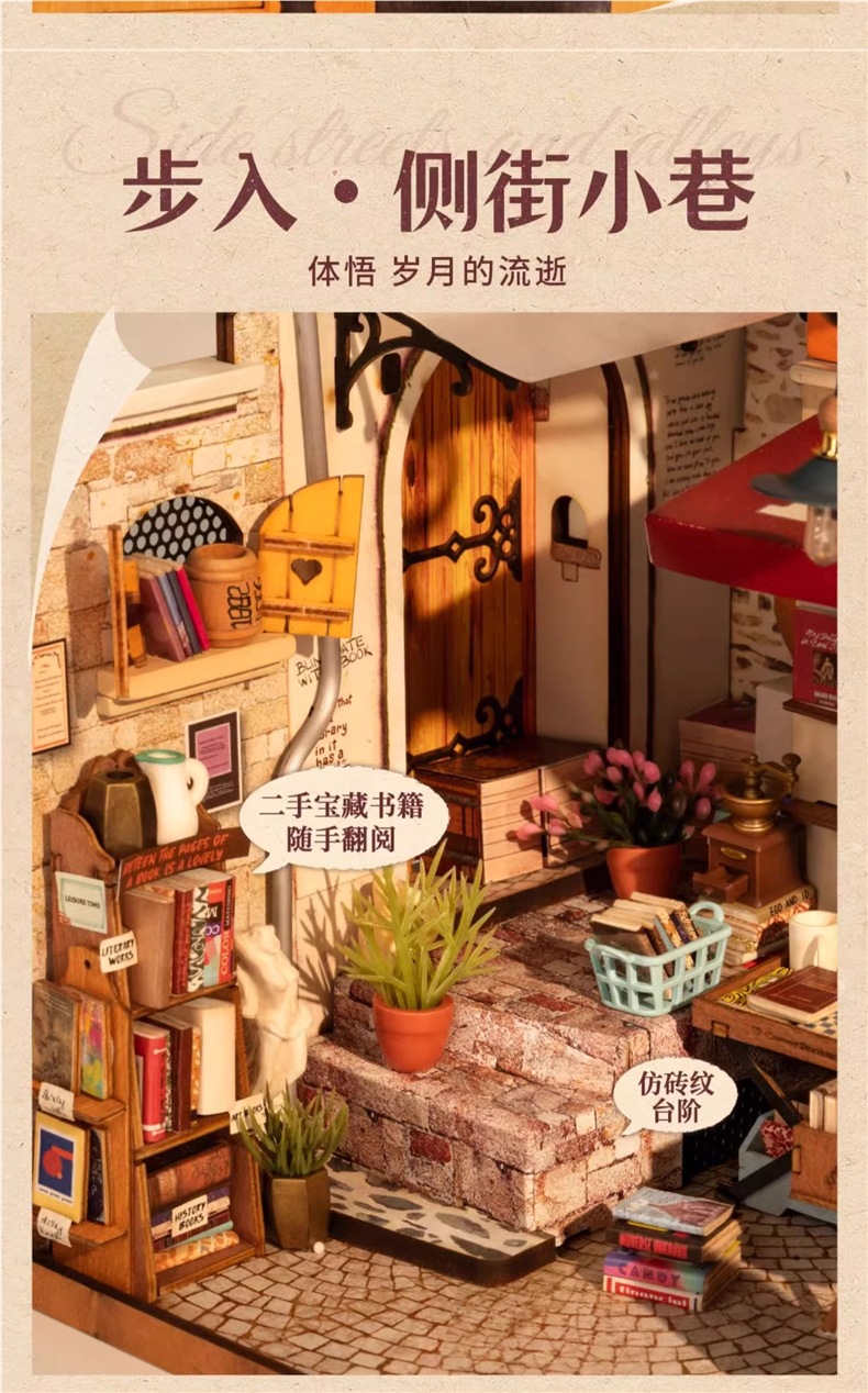 Diy 수제 오두막 코너 서점 조립 빌딩 블록 장난감 소형 장면 작은 집 모델 여성을위한 선물