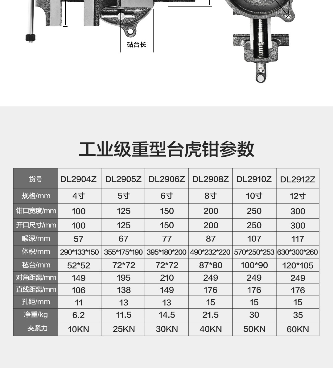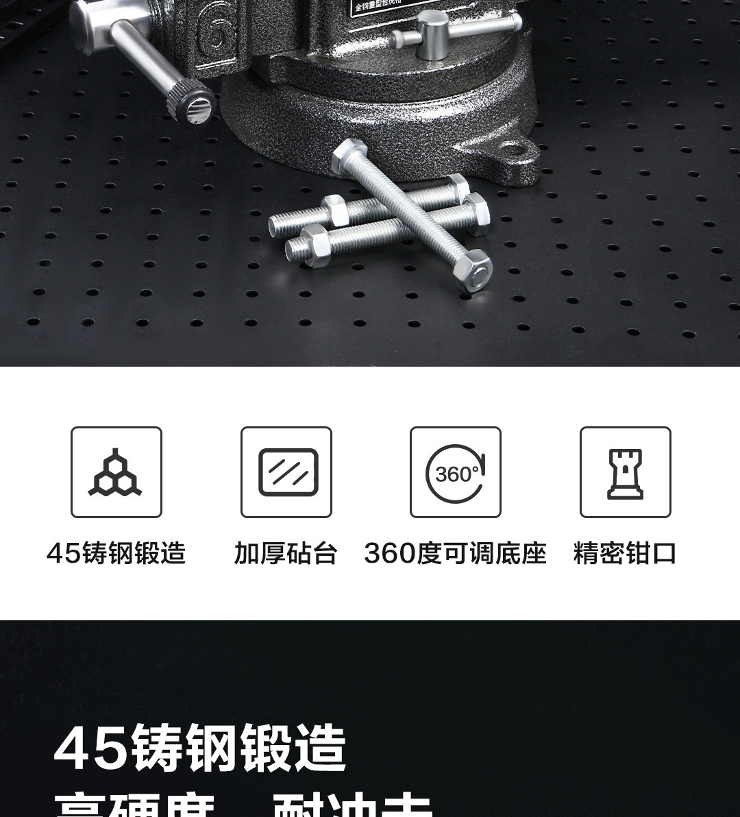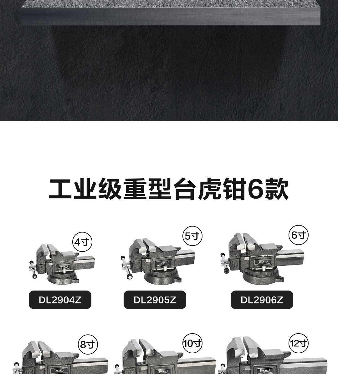 델리 산업용 등급 헤비듀티 테이블 바이스 45 주조 강철 단조 고경도 충격 저항 360 ° 회전식 DL2908Z