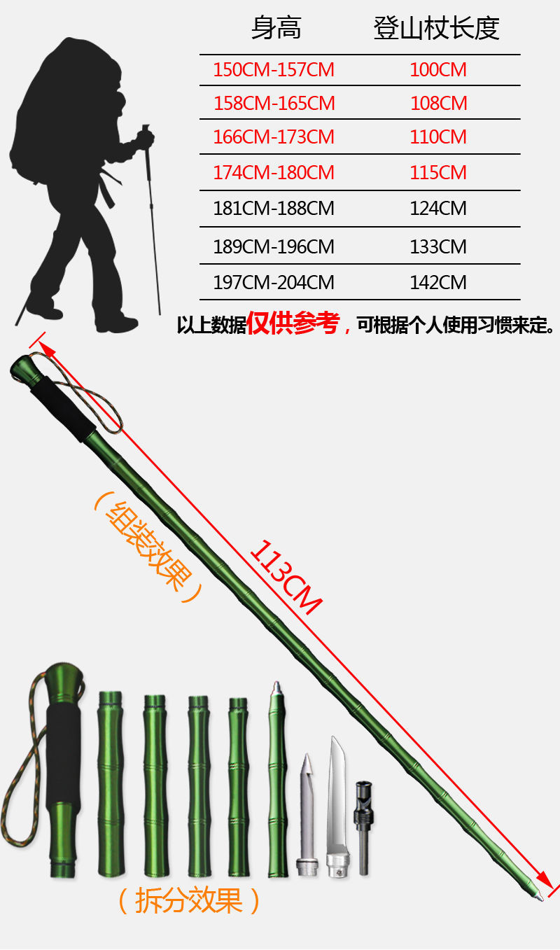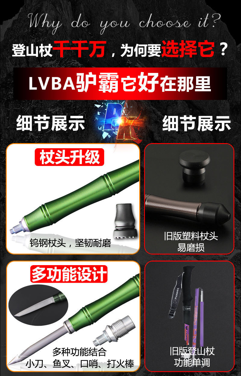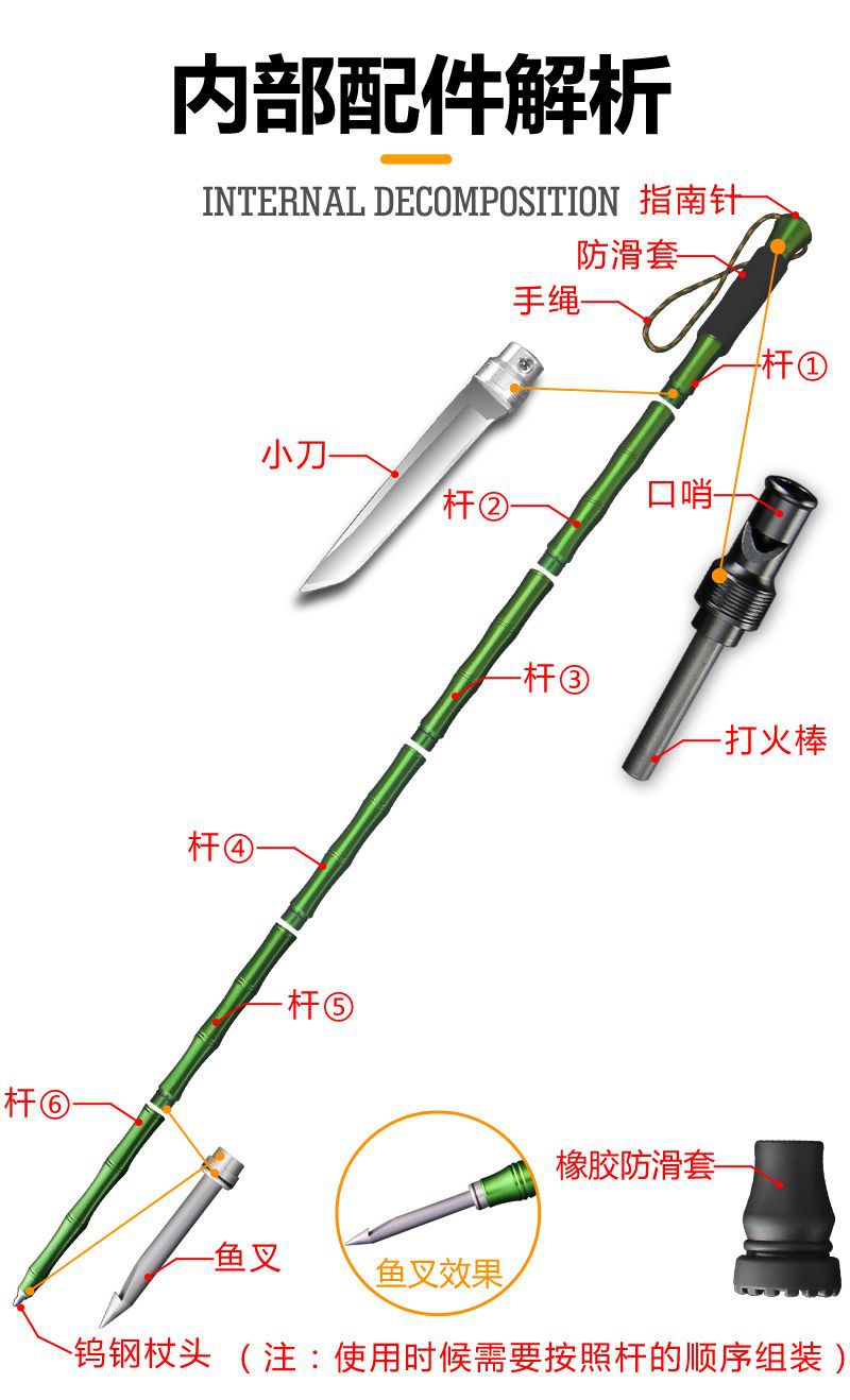 하이킹 스틱, 알루미늄 합금 호신 막대, 미끄럼 방지 등산 야외 다기능 접이식 스틱, 경량 등산 칼 스트랩스토어 가기
